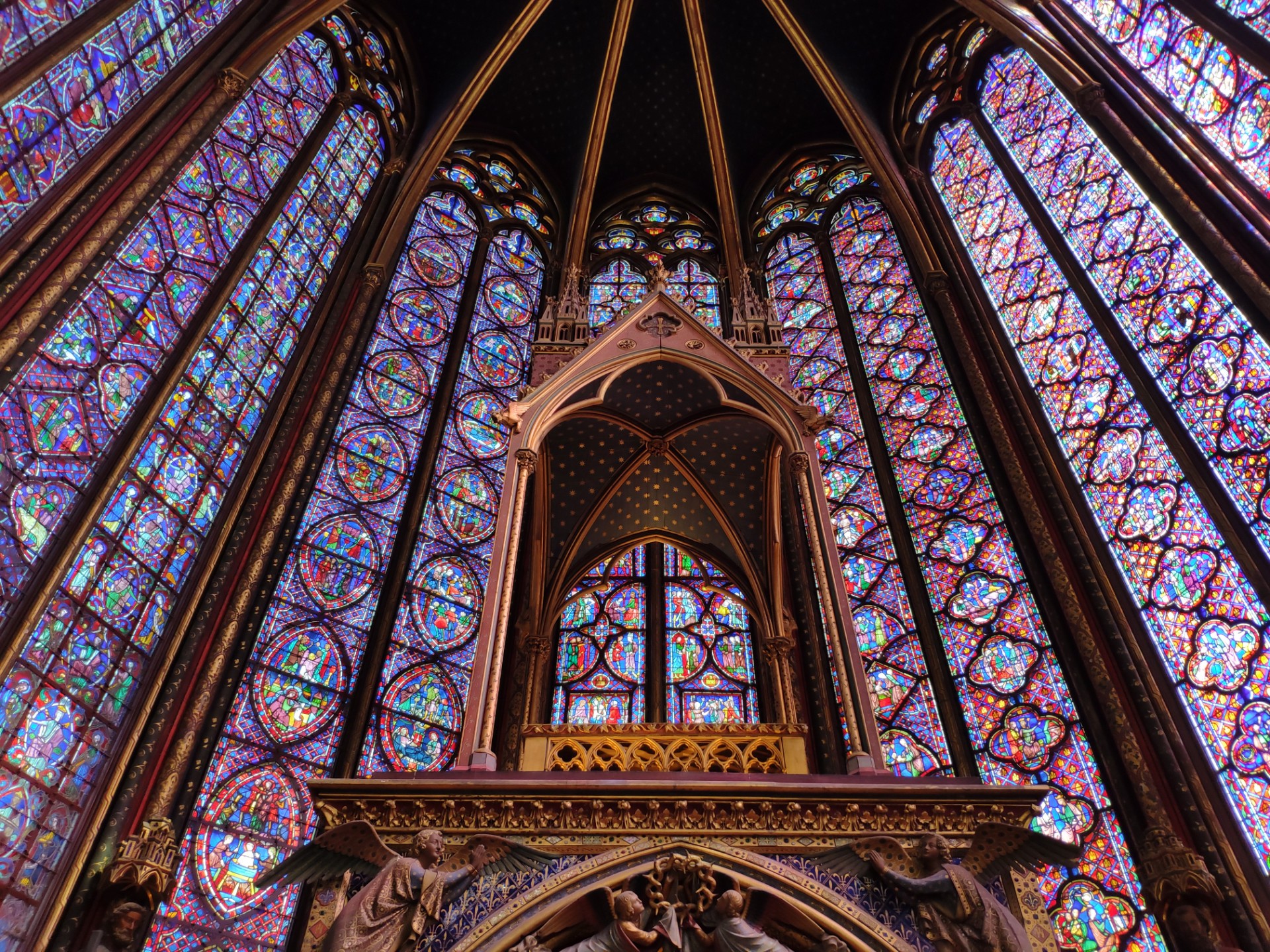 Un des monuments que j’apprécie beaucoup dans le centre de Paris c’est la sainte chapelle avec son architecture grandiose. Construite par Saint Louis comme un sanctuaire pour accueillir la couronne d’épines de Jésus vendue chèrement par Byzance. Les vitraux de la chapelle sont magnifiques, avec tellement de détails et de couleurs, c’est un spectacle visuel.