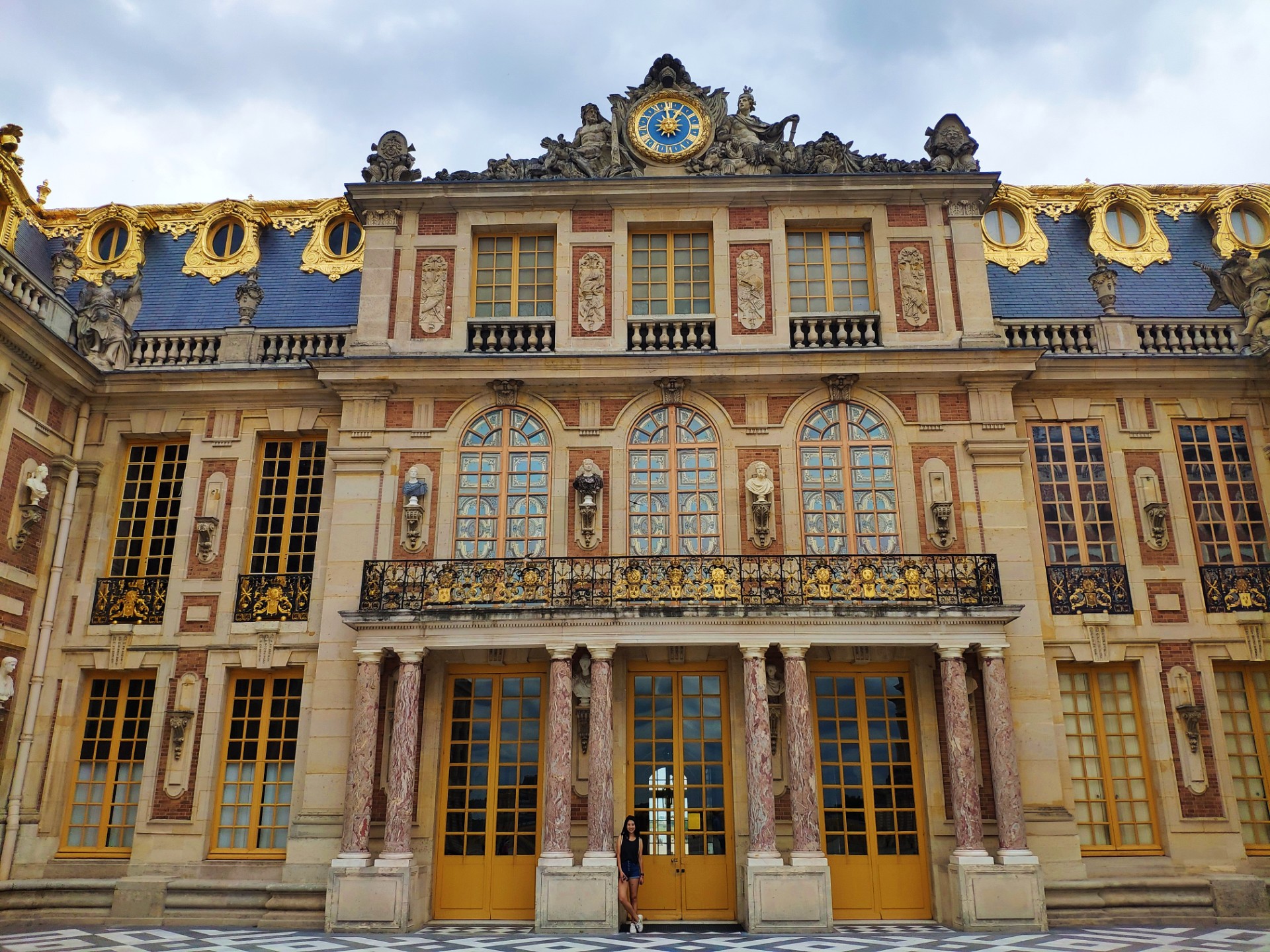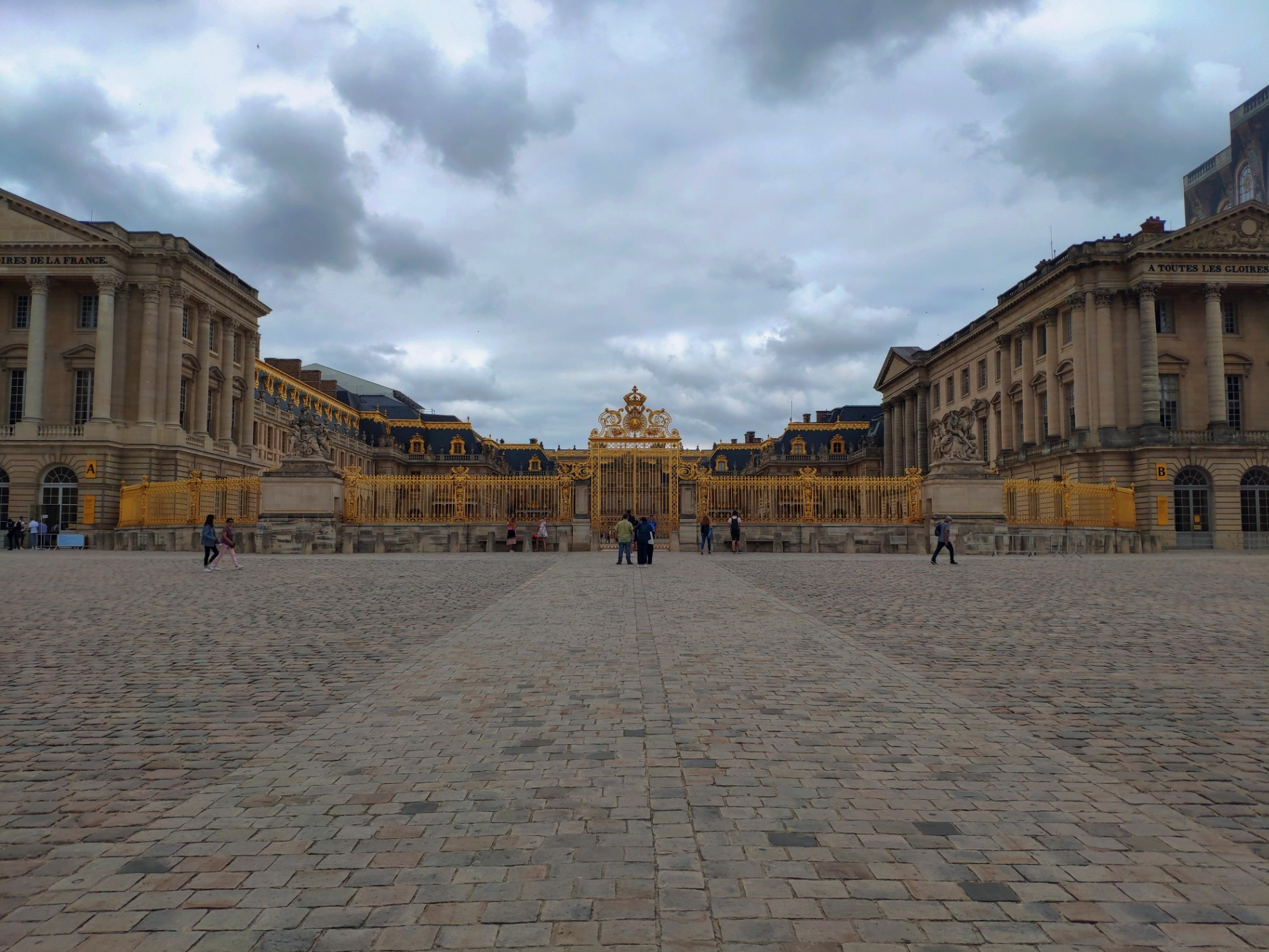 On arrive devant les portes dorées du château avec son portail majestueux.