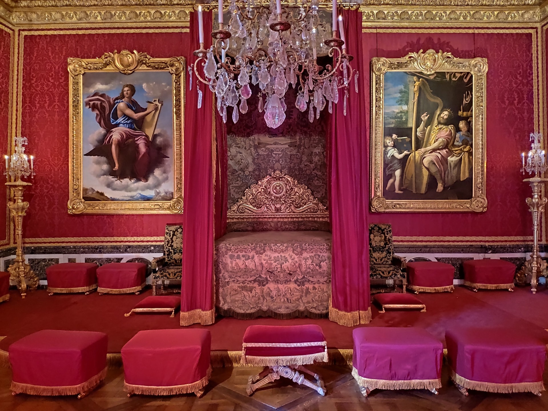 On arrive vers les appartements royaux, notamment la chambre à coucher qui était au temps de Louis XIV accessible aux courtisans les plus serviables.