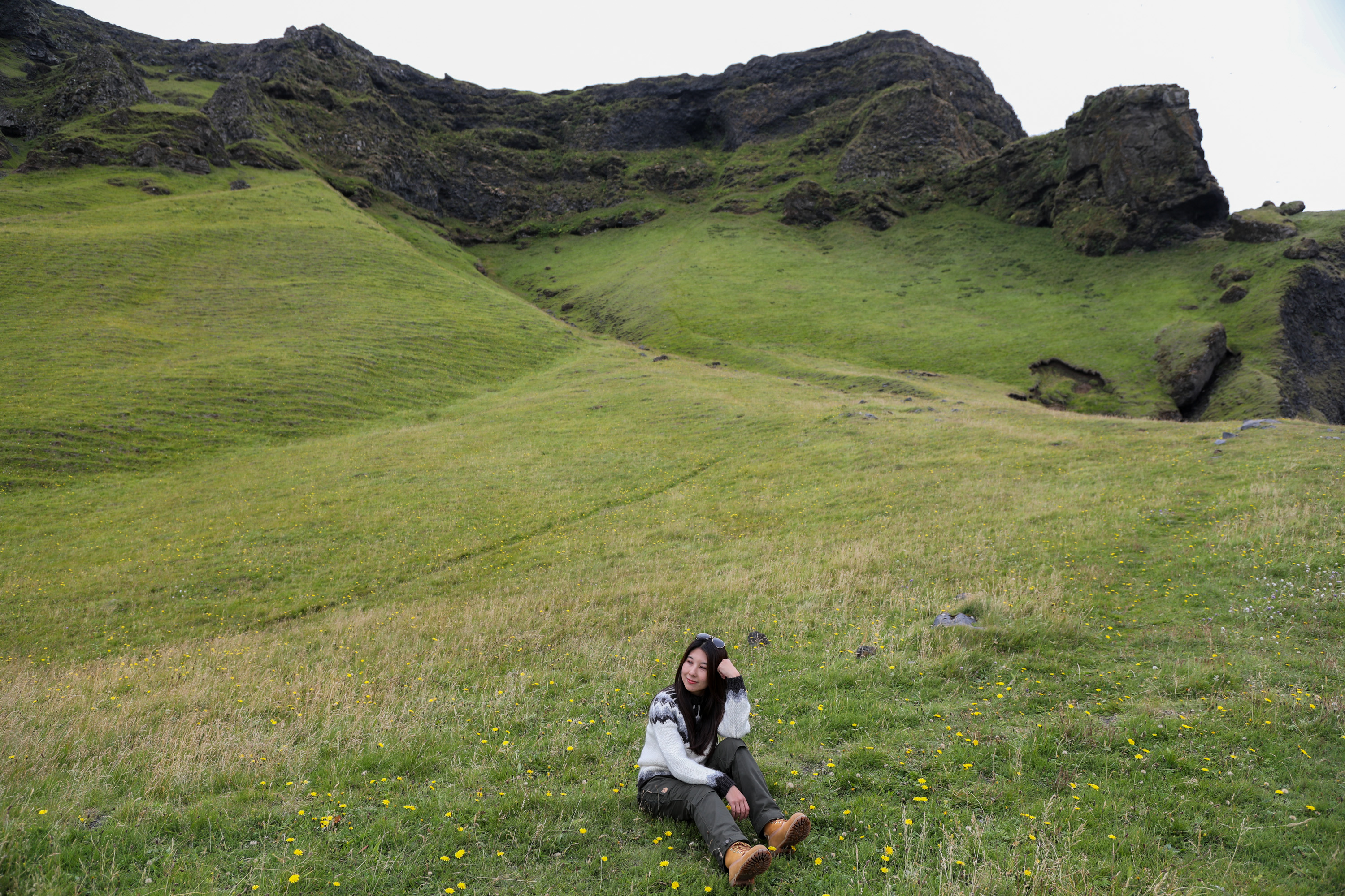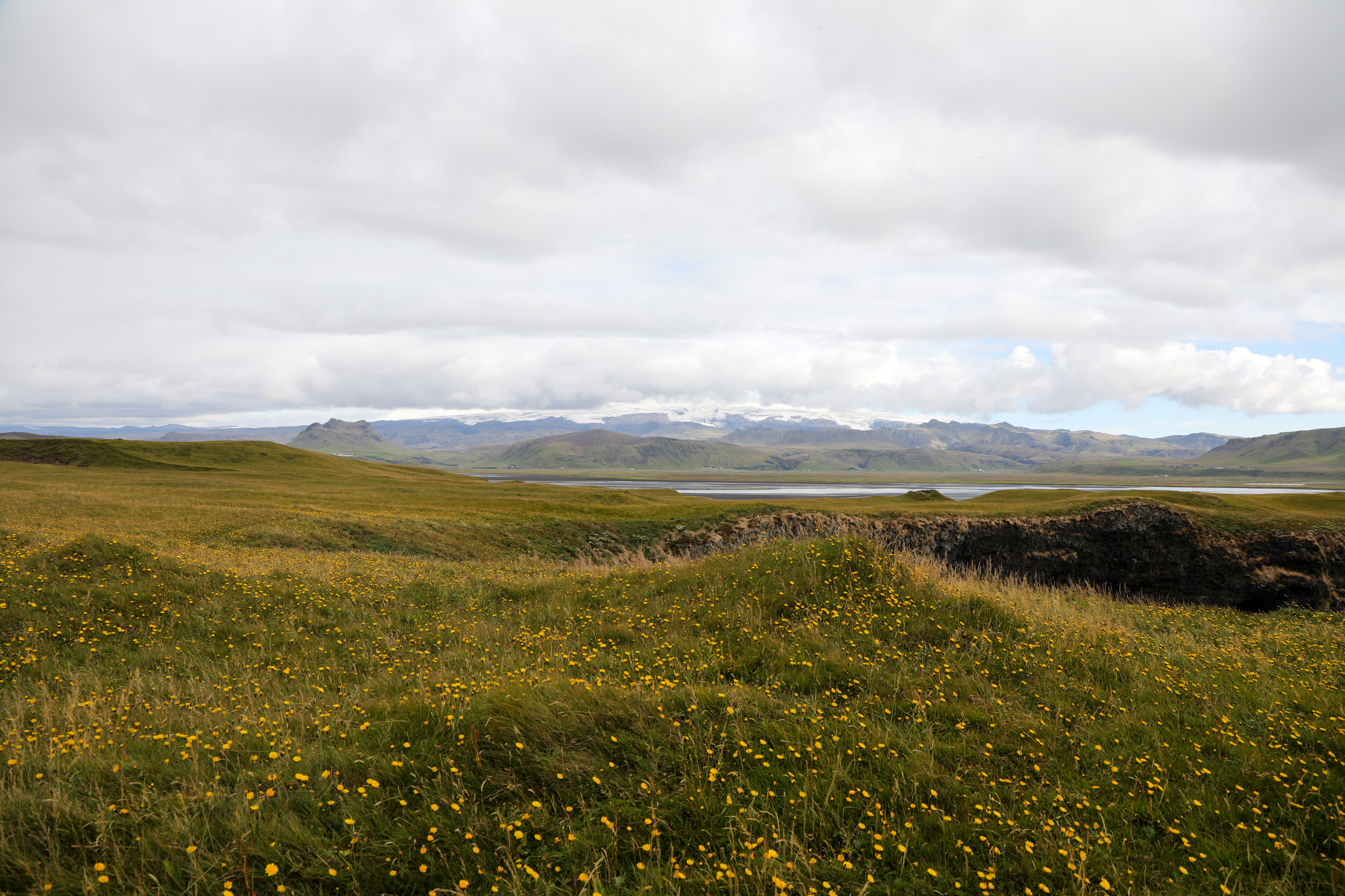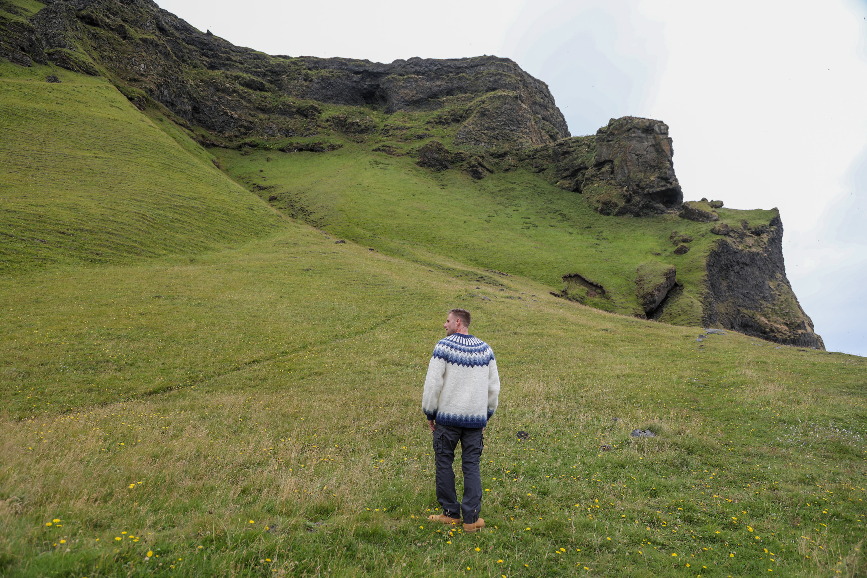 On roule depuis Hella sur la fameuse route N1 qui fait le tour de l’île et qui sera le fil rouge de notre voyage, la route traverse des paysages incroyables, on serpente au milieu des volcans éteints recouverts de végétation. Il faut environ une heure pour rejoindre notre destination, on a dépasse pleins de magnifiques cascades que l’on ira visiter cet après midi. On arrive au parking de Dyrhólaey et on marche jusqu’aux falaises.
