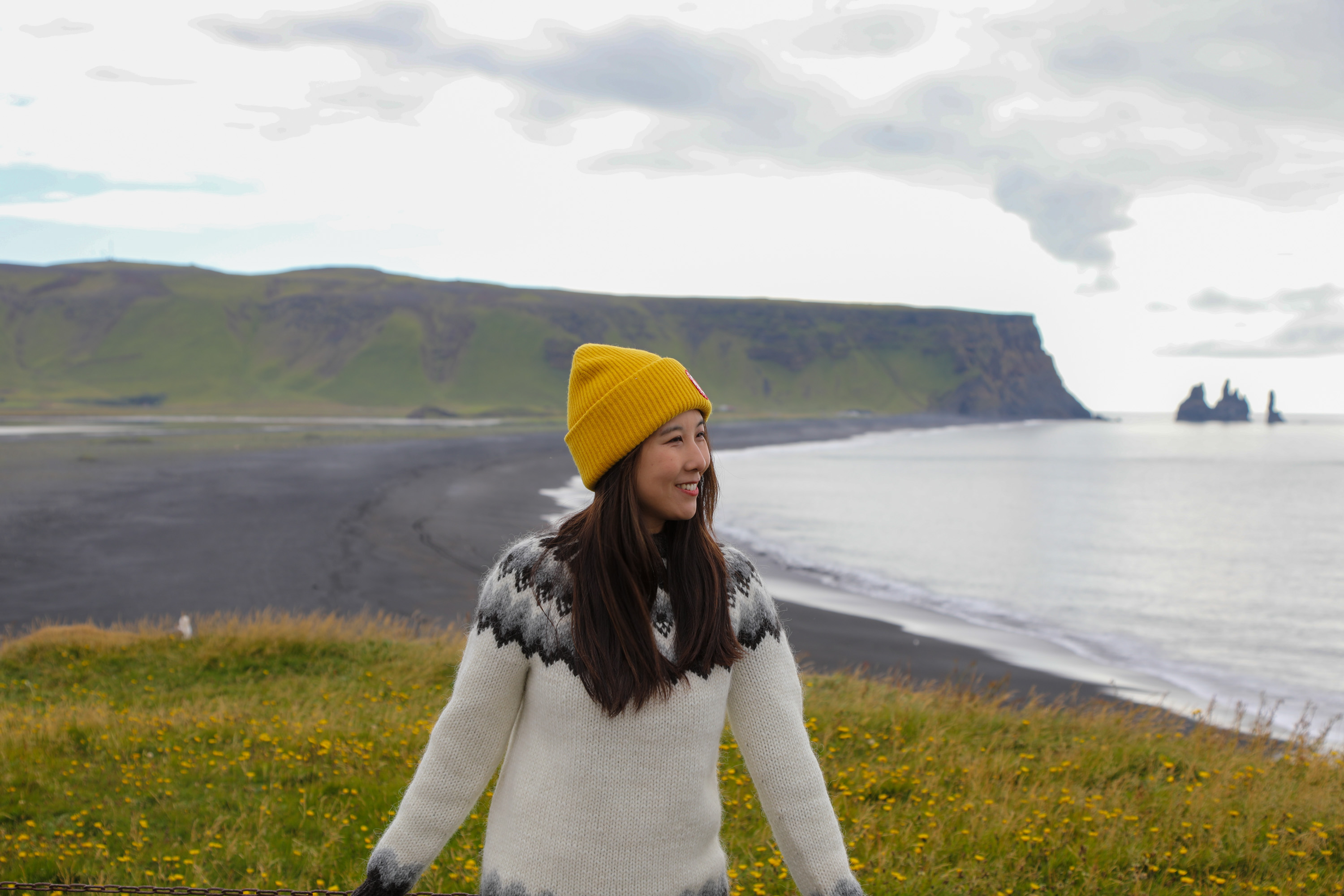 Depuis le chemin, on a un point de vue sur la célèbre plage de sable noir de Reynisfjara.