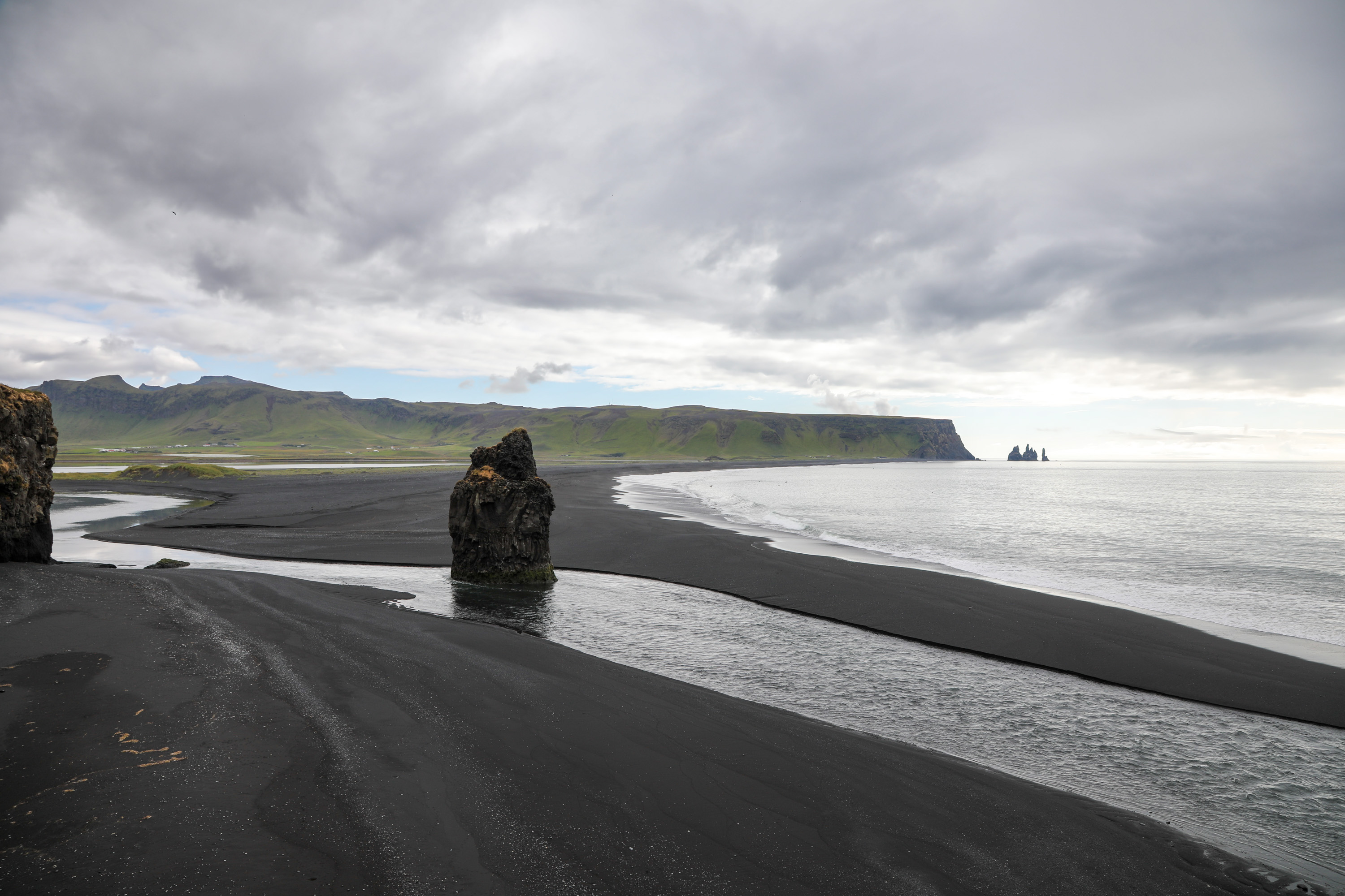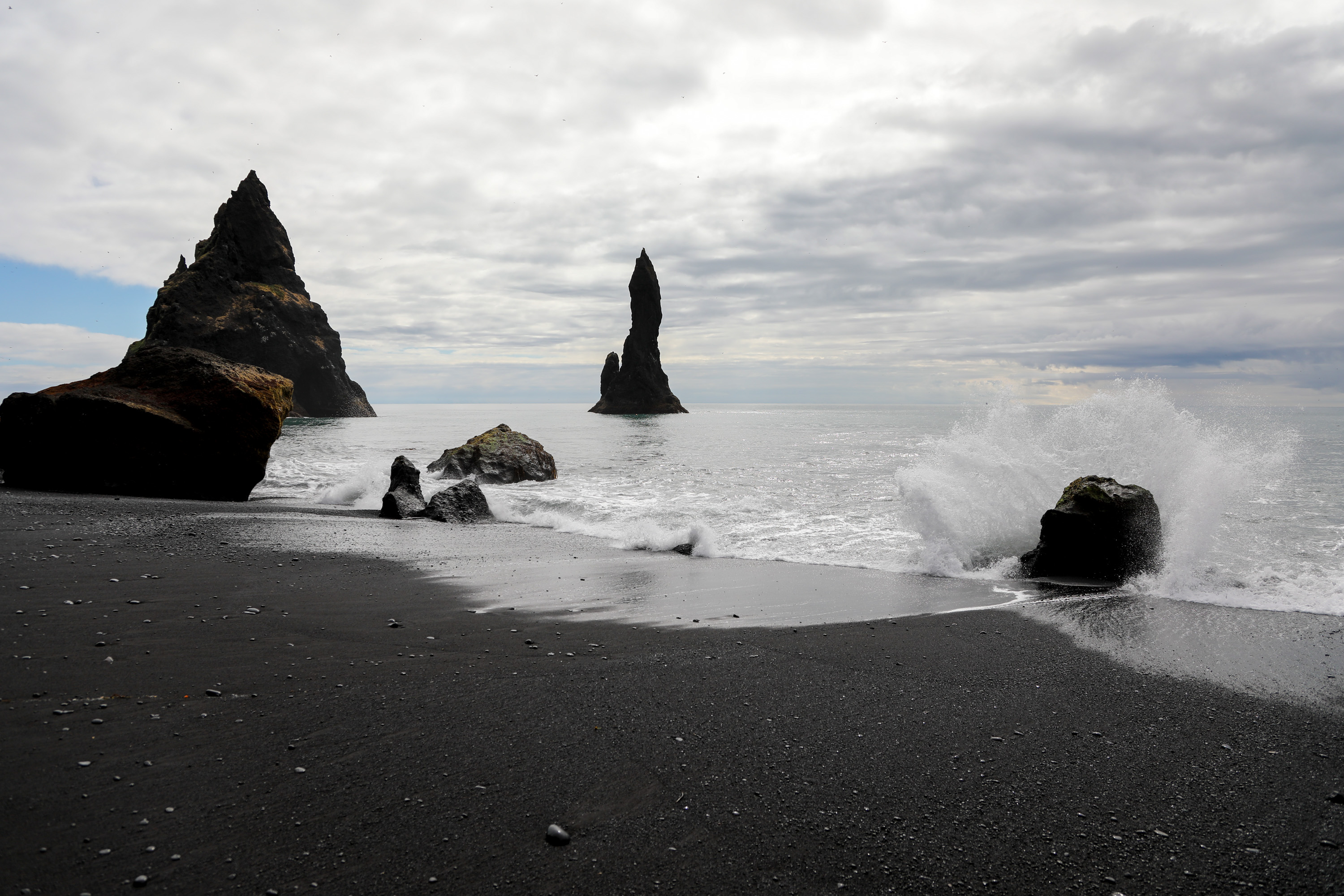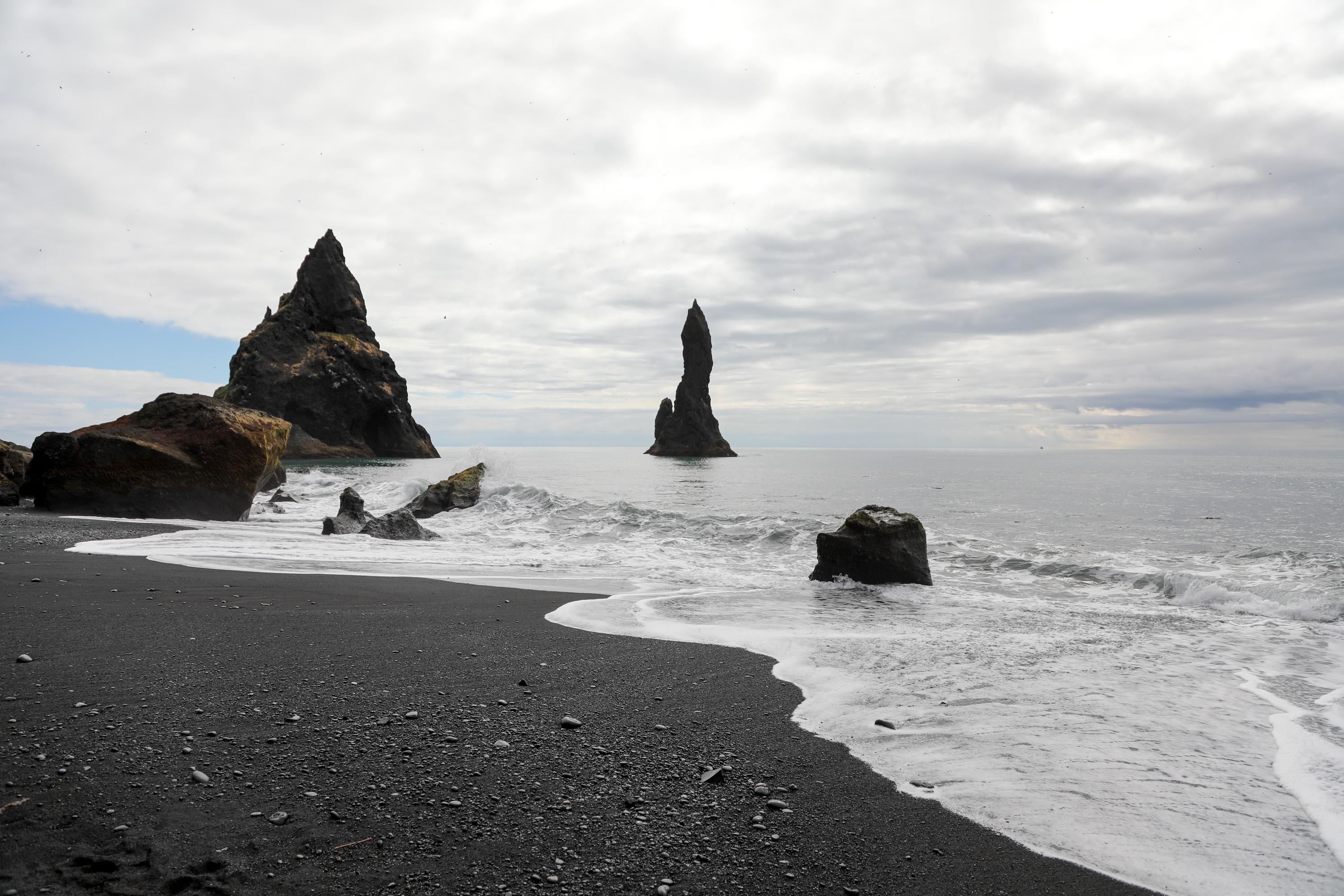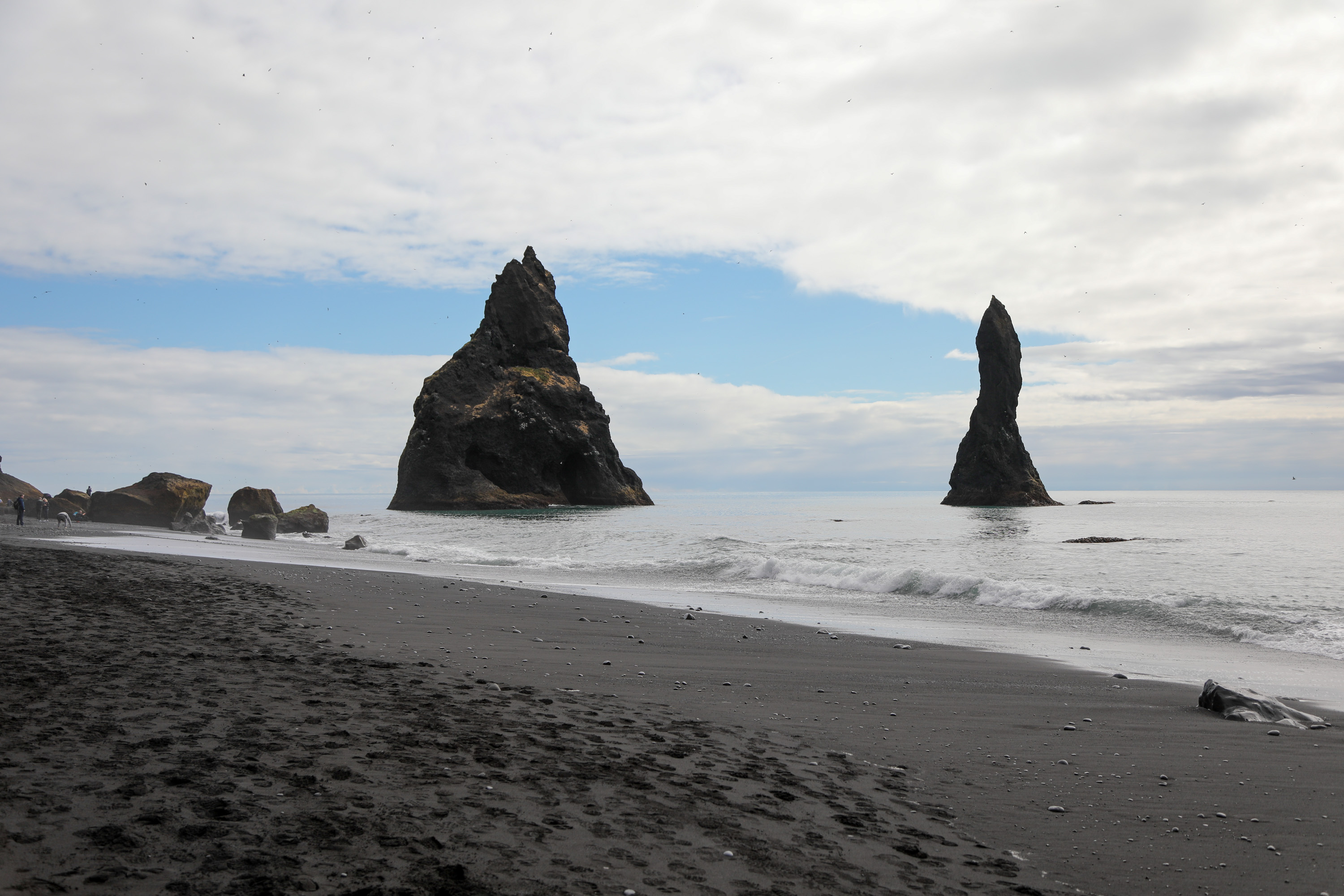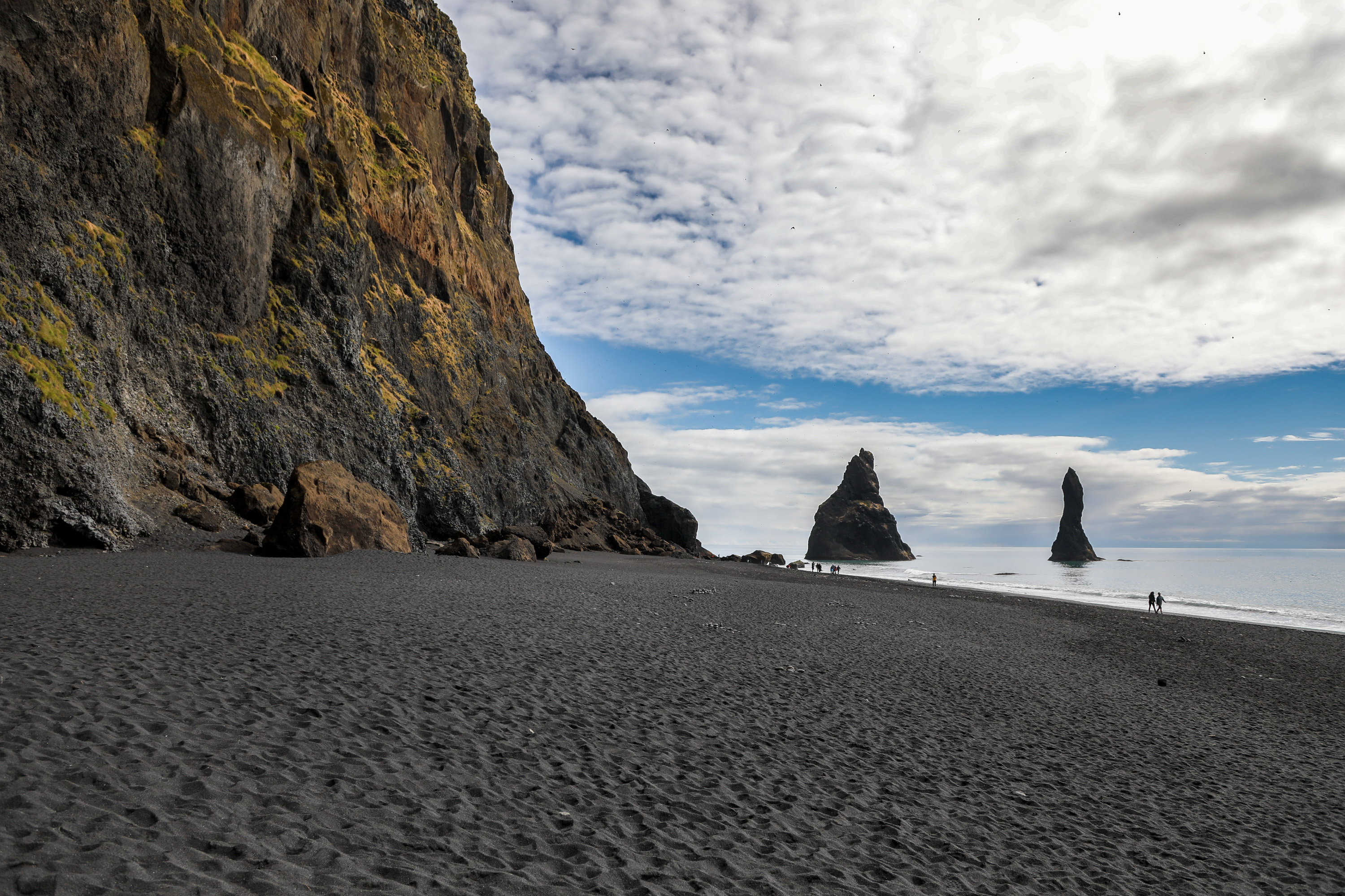Après ce superbe pique nique, on reprend la voiture pour revenir à la grande plage de sable noir de Reynisfjara juste de l’autre côté de Vik. Cette plage est très connue, et c’est pour cela que l’on y trouvera beaucoup, beaucoup, beaucoup de monde. Heureusement, la plupart des touristes se concentre juste à l’entrée de la plage vers le parking.