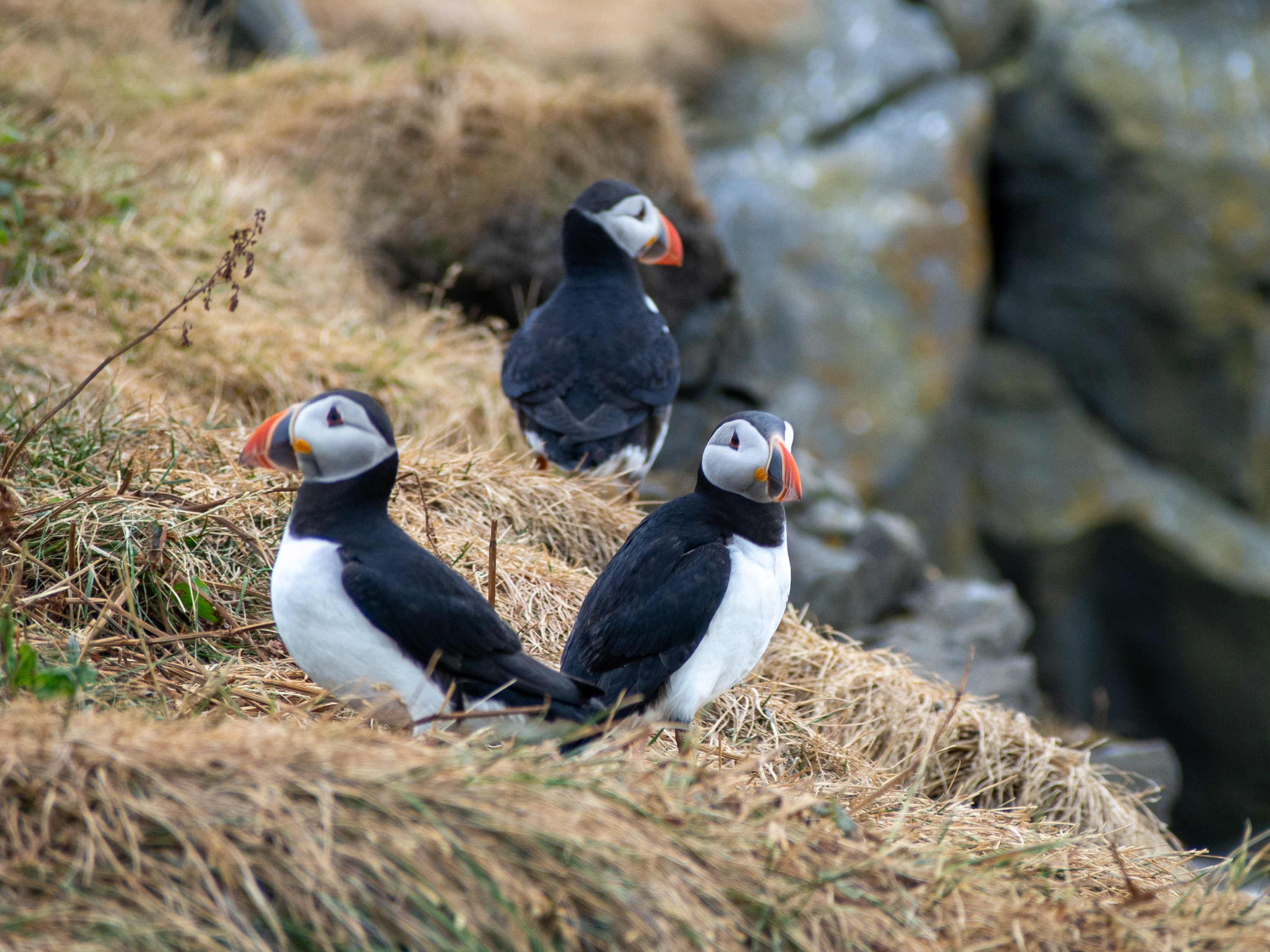 En fait il y a toute une colonie ici. Nous voyons plusieurs macareux à quelques mètres de nous.