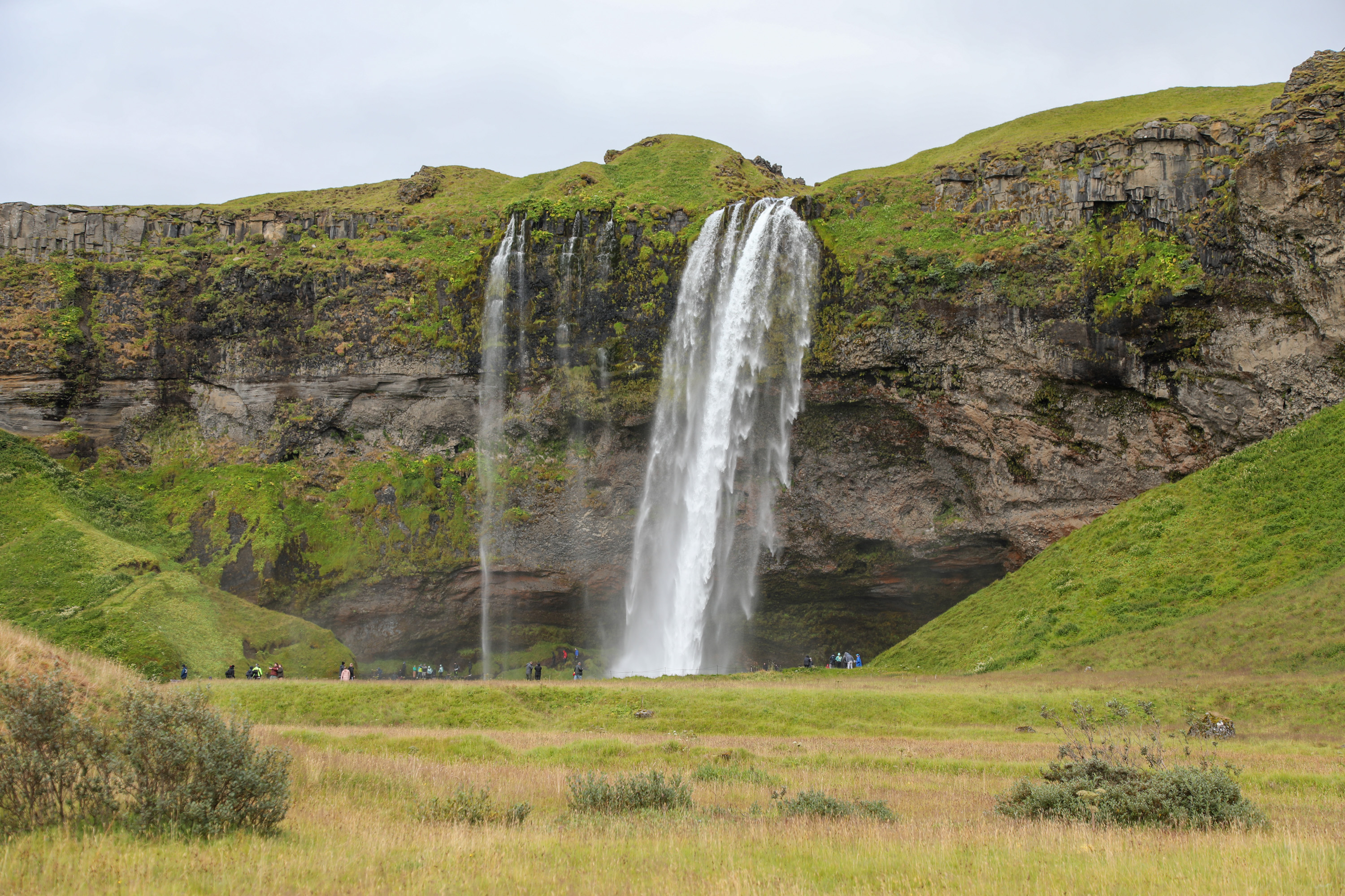 La chute d’eau tombe de 60 mètres et 25 mètres de large. Facilement accessible car elle est directement à côté de la route N1, il y a beaucoup de monde sur le parking. Le débit de la cascade est vraiment impressionnant, mais ce qui la rend encore plus belle, c’est ce contraste de couleurs entre le vert de l’herbe qui recouvre la montagne, le noir du lit de la rivière et le blanc de la cascade.