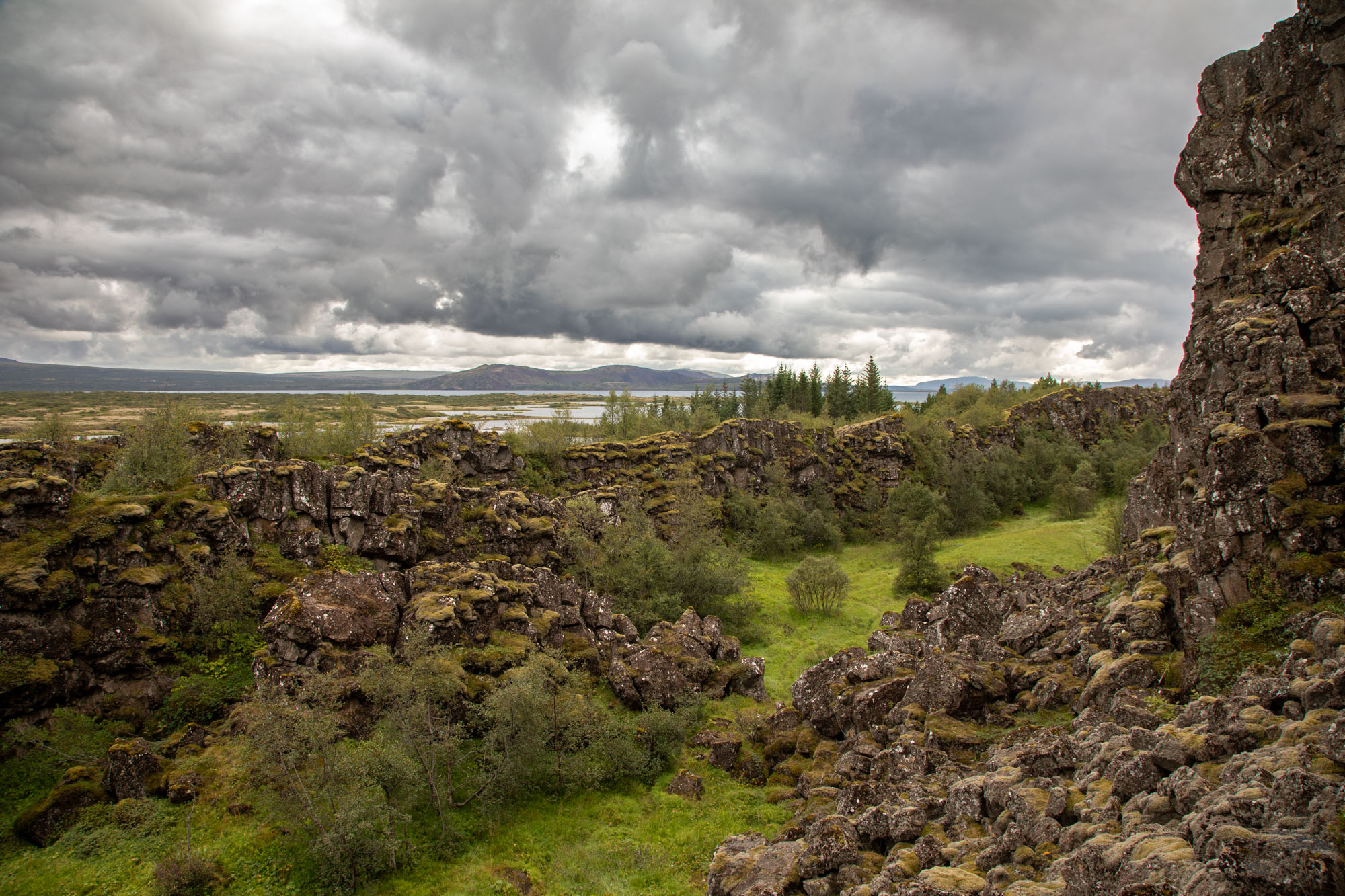 On reprend la route alors que le ciel se dégage, le paysage est magnifique dans la région, on est si proche de la capitale mais on a déjà l’impression d’être perdu au milieu de nulle part. On arrive au Thingvellir National Park où se trouve un grand lac.