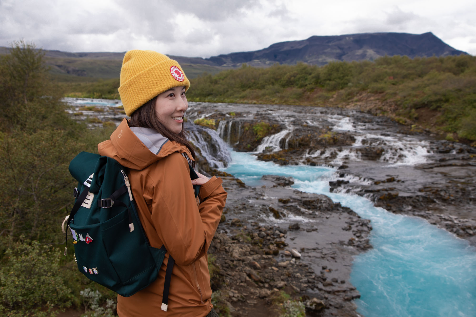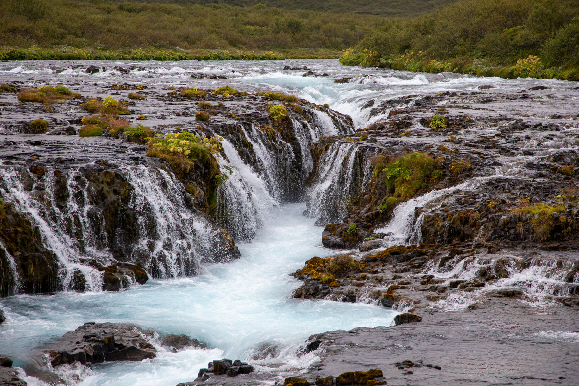 Pour rejoindre la deuxième étape sur le cercle d’or, nous faisons d’abord un petit détour par la cascade de Brúarfoss qui n’est pas un endroit encore très connu. Il faut faire attention car le point gps de google maps n’est pas correct, on rebrousse un peu chemin, il faut prendre un chemin de terre sur quelques kilomètres pour rejoindre un parking payant. On marche un peu et on arrive face à une chute d’eau vraiment improbable. On a du mal à comprendre comment se fait il que l’eau est cette couleur si bleutée.