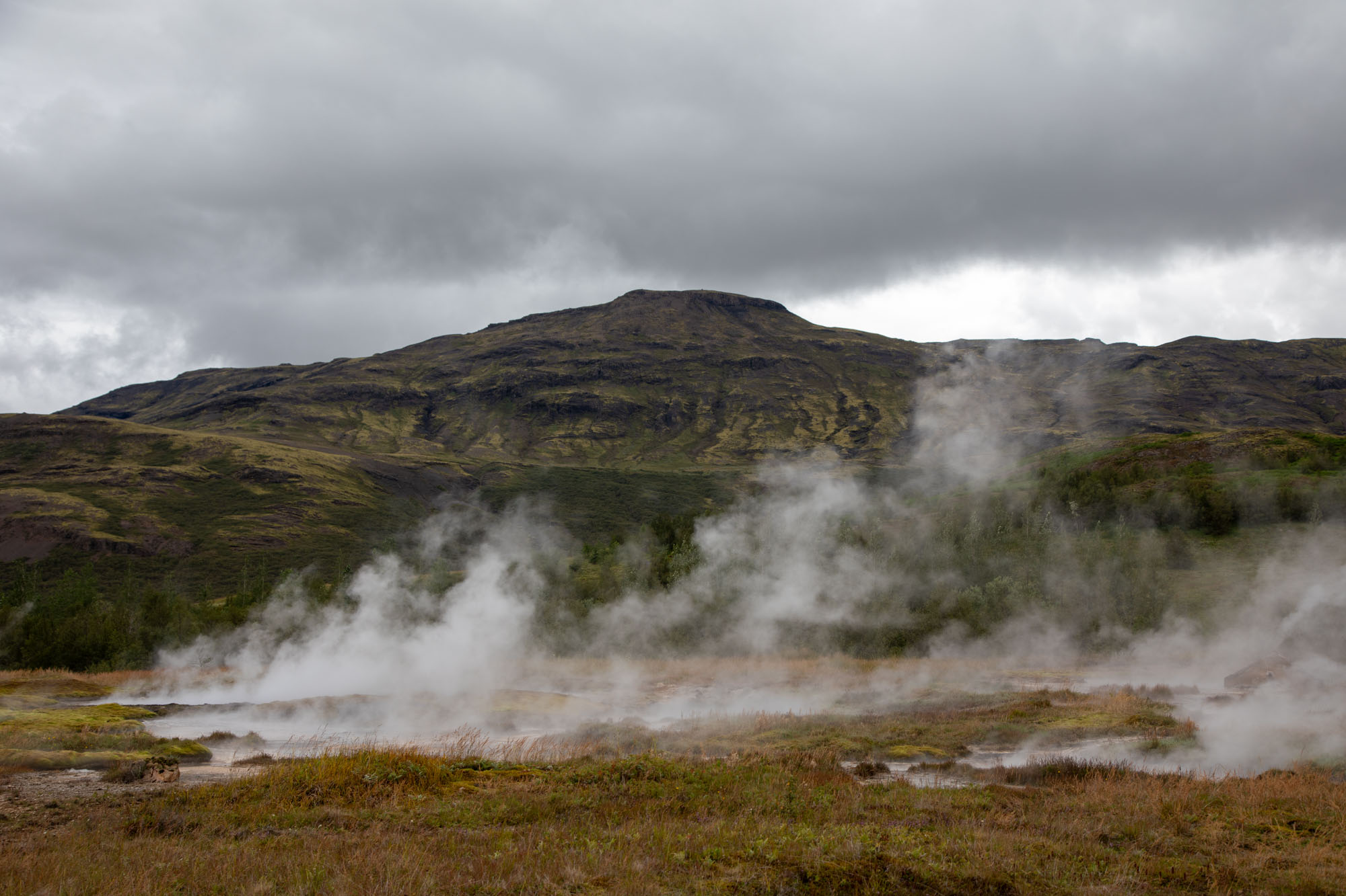 On roule maintenant quelques minutes jusqu’à la zone géothermique de Geysir. Il y a beaucoup d’activité dans cette zone, la terre fume depuis des trous dans ce paysage de début du monde fascinant, tellement hors du commun.