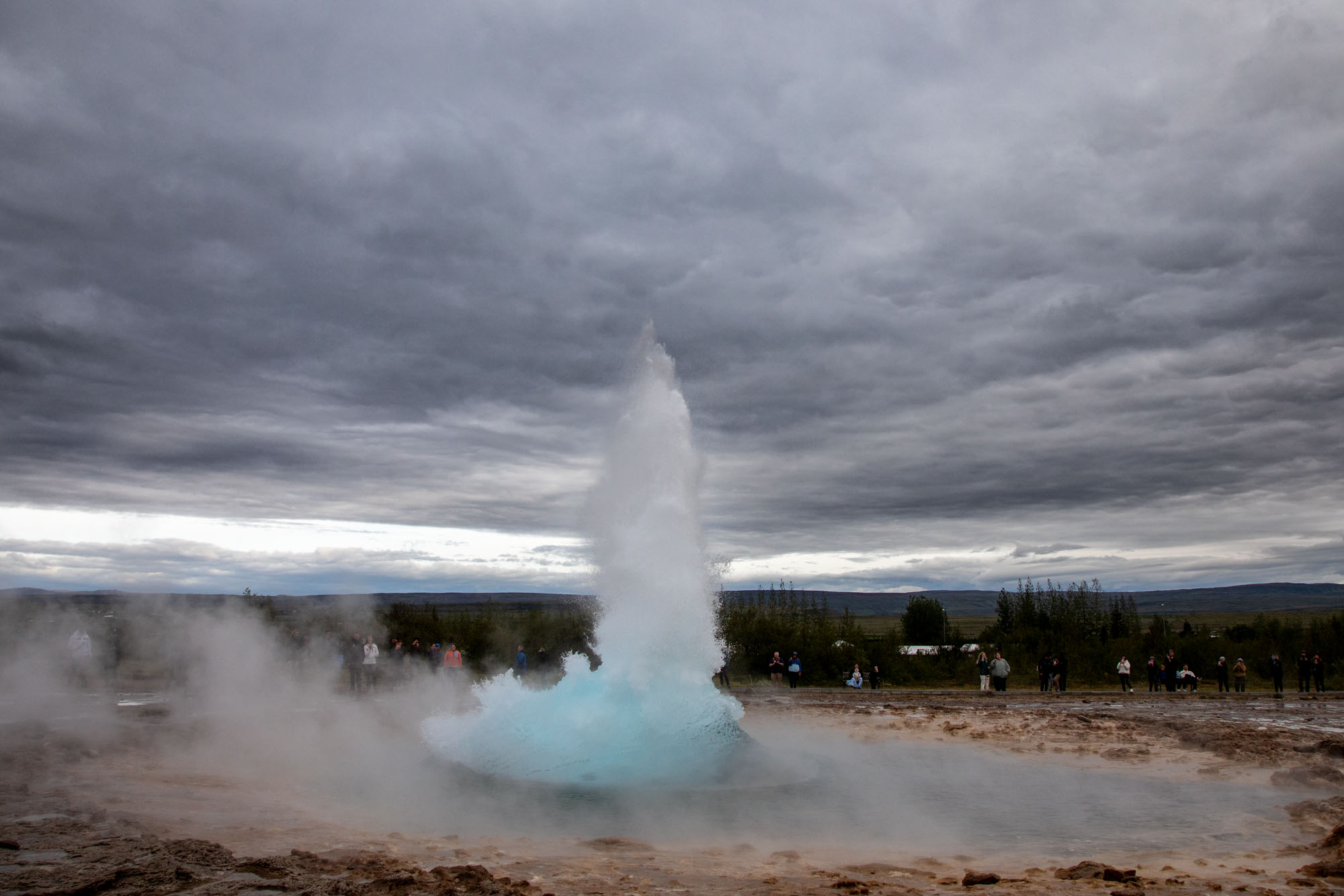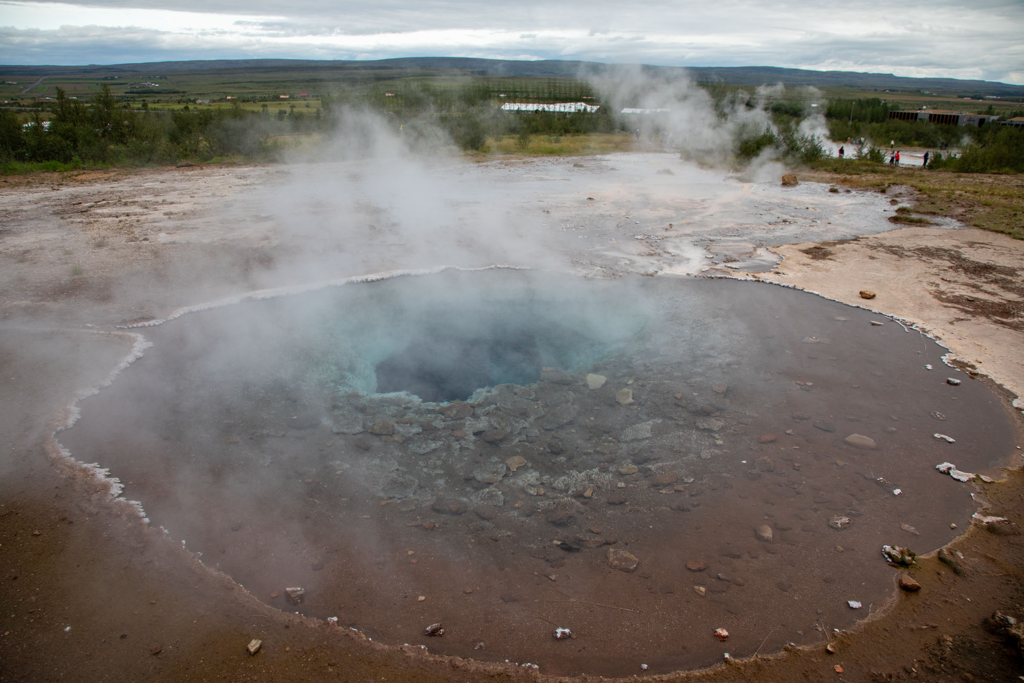 On arrive au geyser actuellement activité où il y a beaucoup de monde qui attend qu’il explose. En fait, ce geyser n’est pas le fameux geysir qui a donné son nom à tous les lacs qui crachent de l’eau dans le monde. Il est pour le moment endormi.