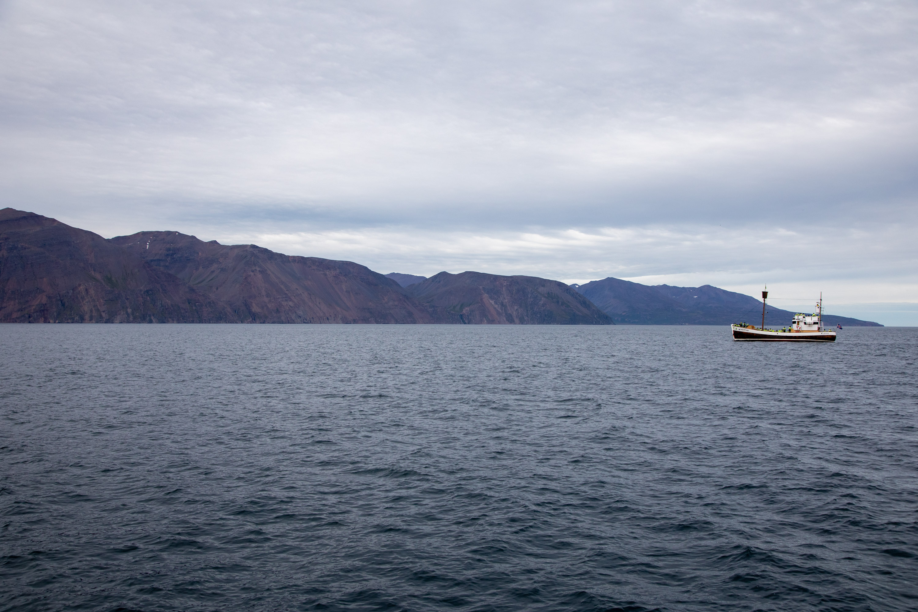 Il faut à peu près une heure de navigation sur une mer tranquille pour rejoindre l’autre côté du fjord. Avant de voir les baleines, on peut découvrir les oiseaux que l’on croise, des macareux, des mouettes.