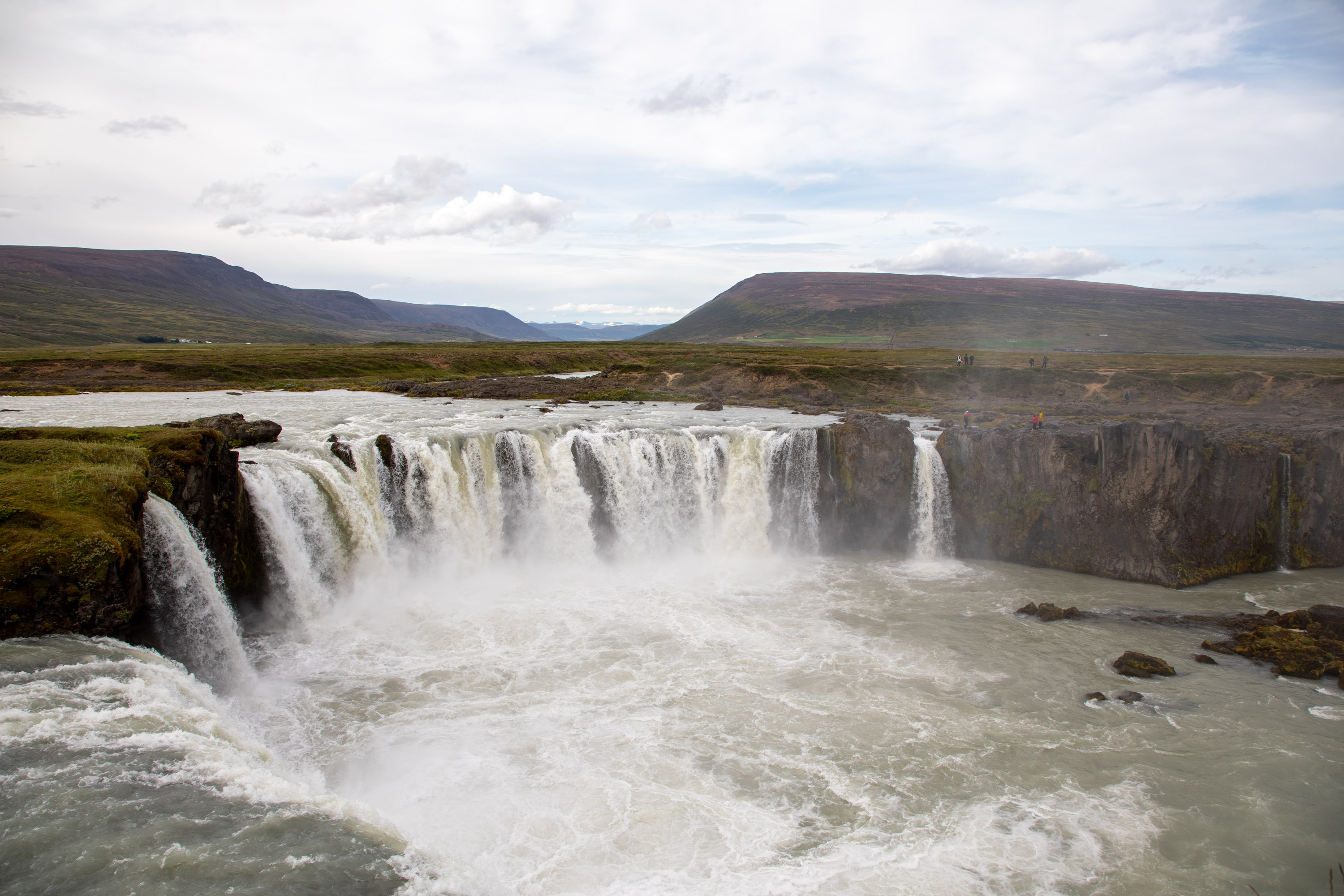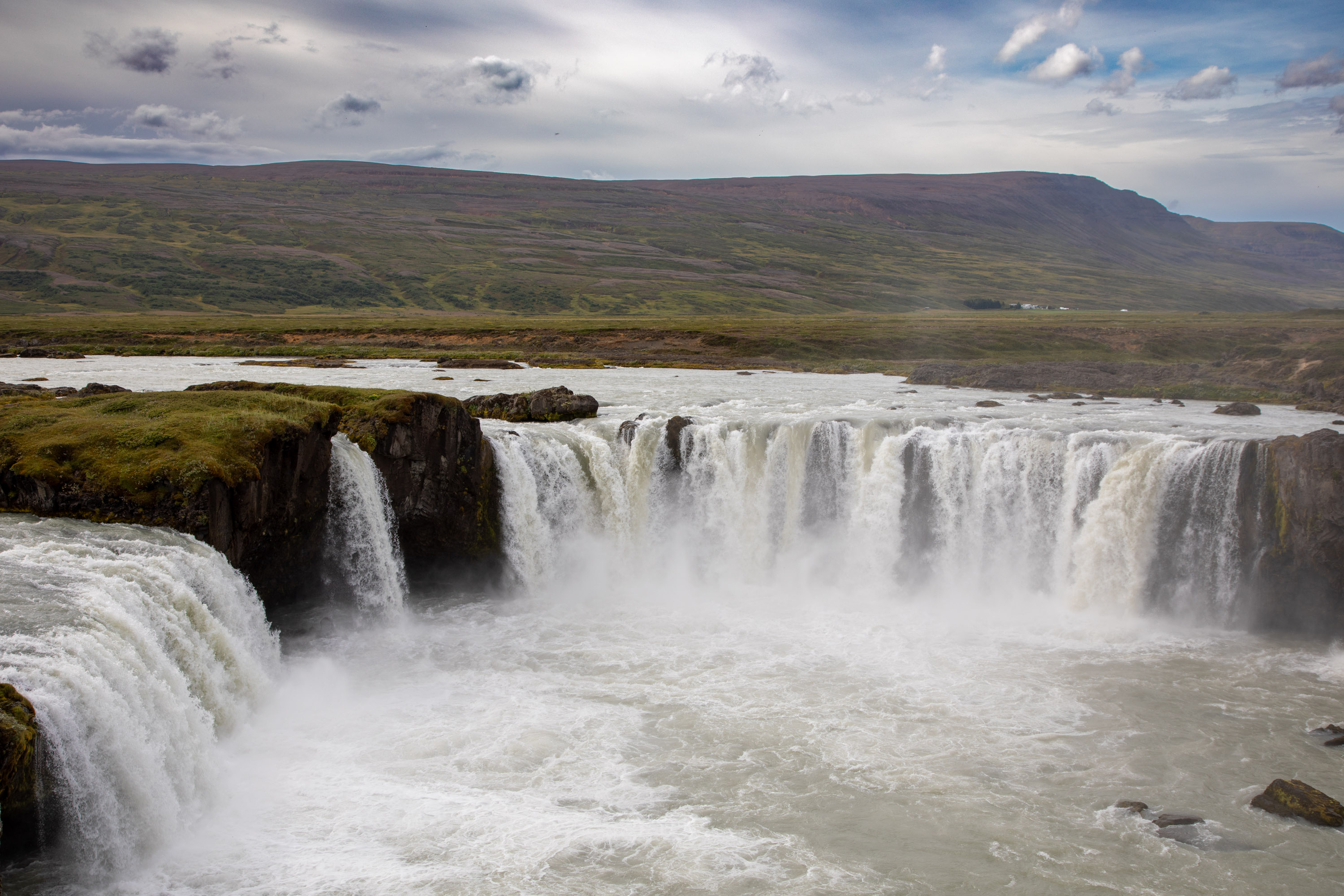 On rejoint la cascade de Goðafoss qui fait une petite étape agréable sur le chemin de Myvatn.