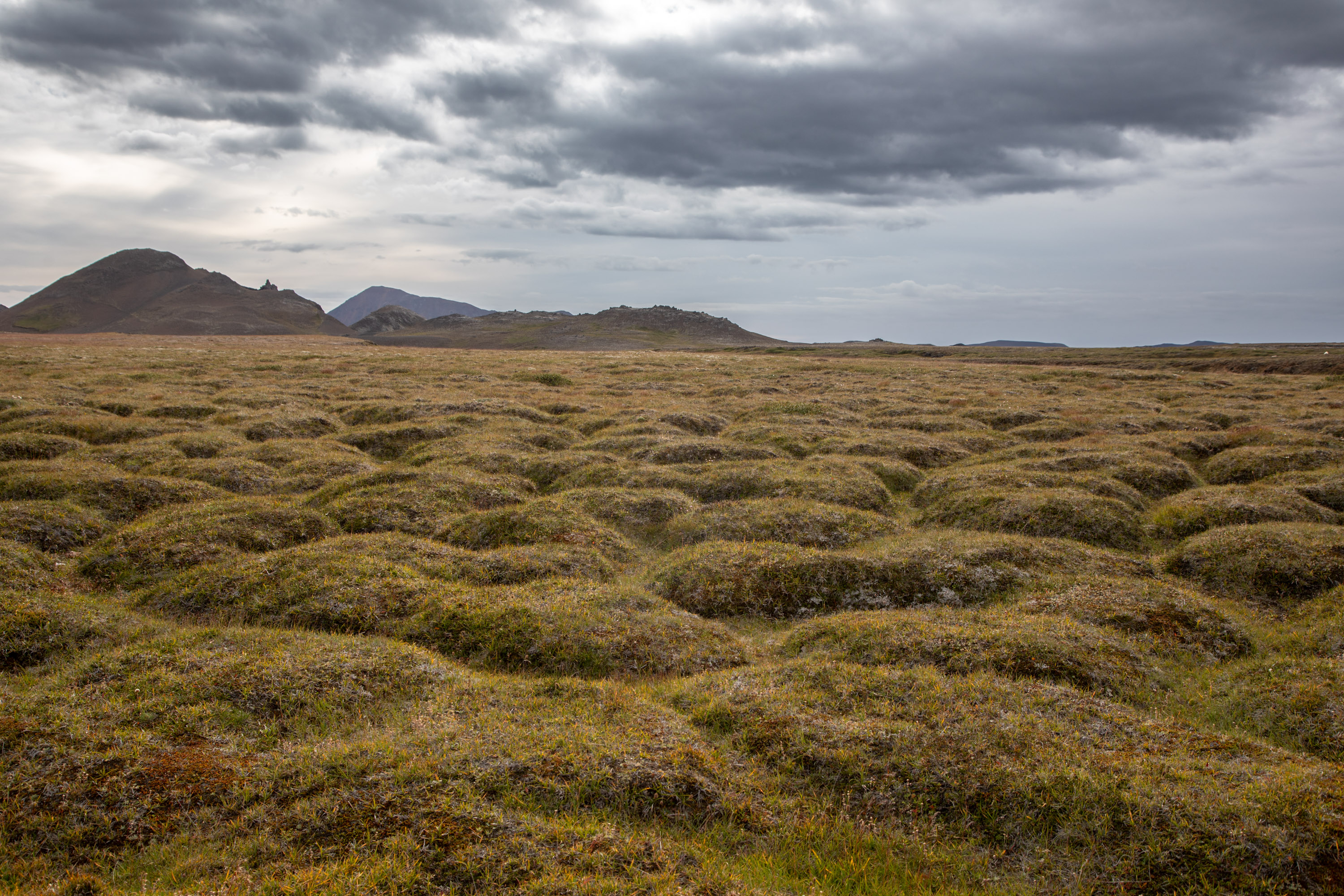 On fait quelques minutes de voiture pour se garer à l’entrée de la zone volcanique de Leirhnjukur. Ce volcan a été très actif il y a 40 ans et après qu’il soit retombé dans son sommeil, il a laissé un paysage vraiment étonnant, avec des coulées de lave séchée recouvert de mousse.
