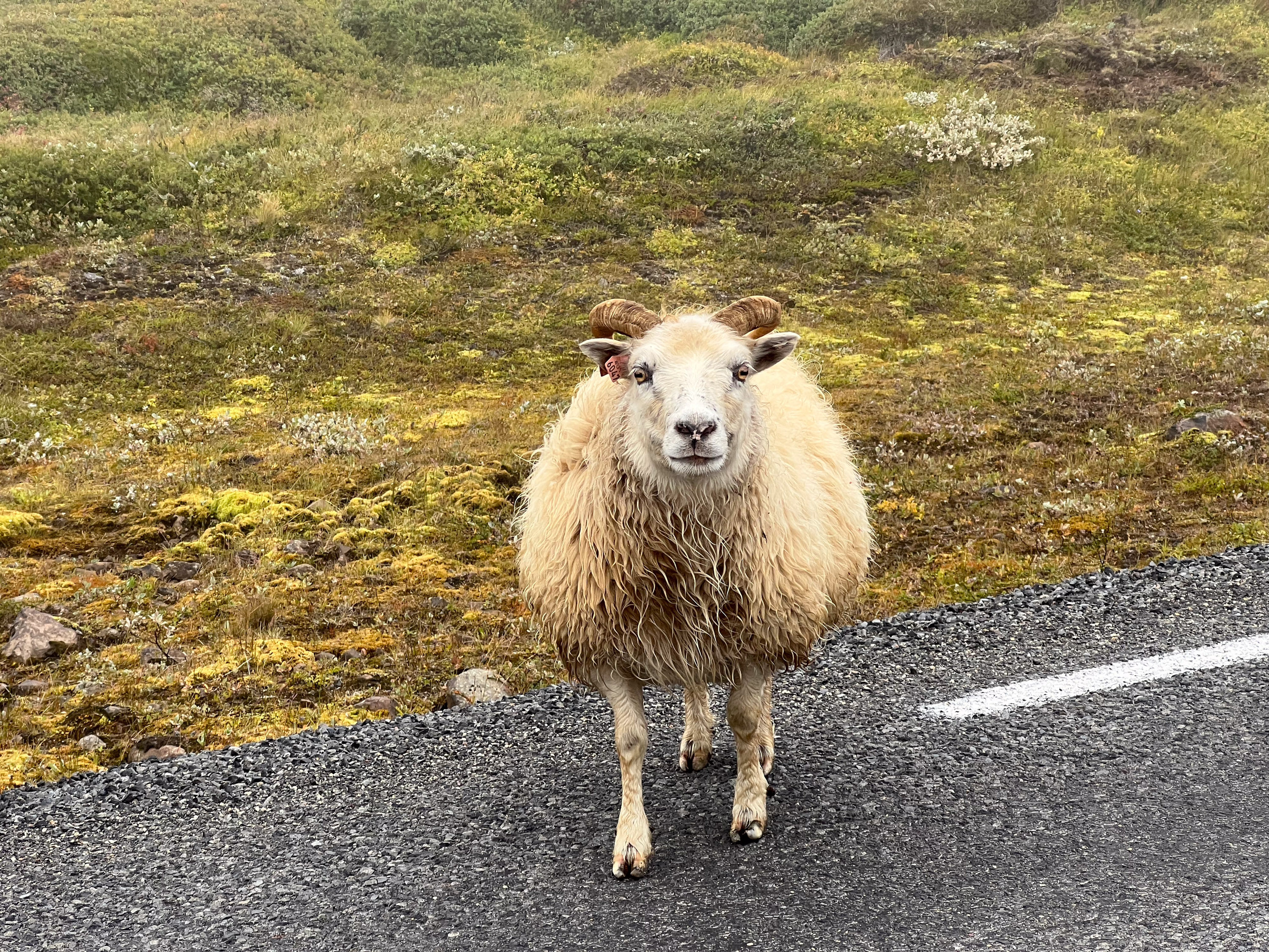 Puis c'est un mouton un peu kamikaze qui traverse la route devant nous.