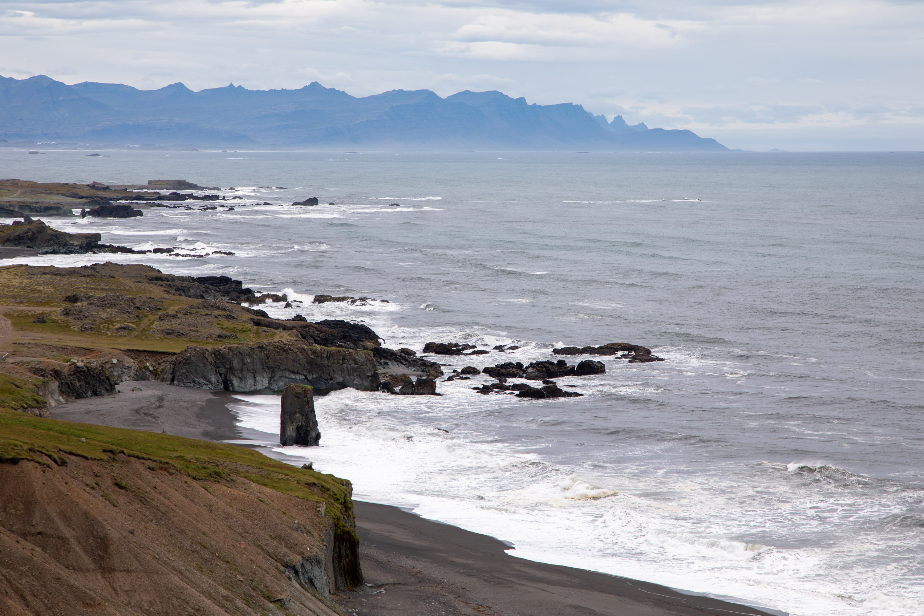 Arrivé au niveau de la mer, la route suit le relief des fjords et on fait de longs détours pour rejoindre le Sud de l’île. Mais on est pas près de s’ennuyer, on se dit que cette route est parmi les plus belles et les plus variées que l’on a fait depuis le début du voyage, on fait plusieurs arrêts photo.