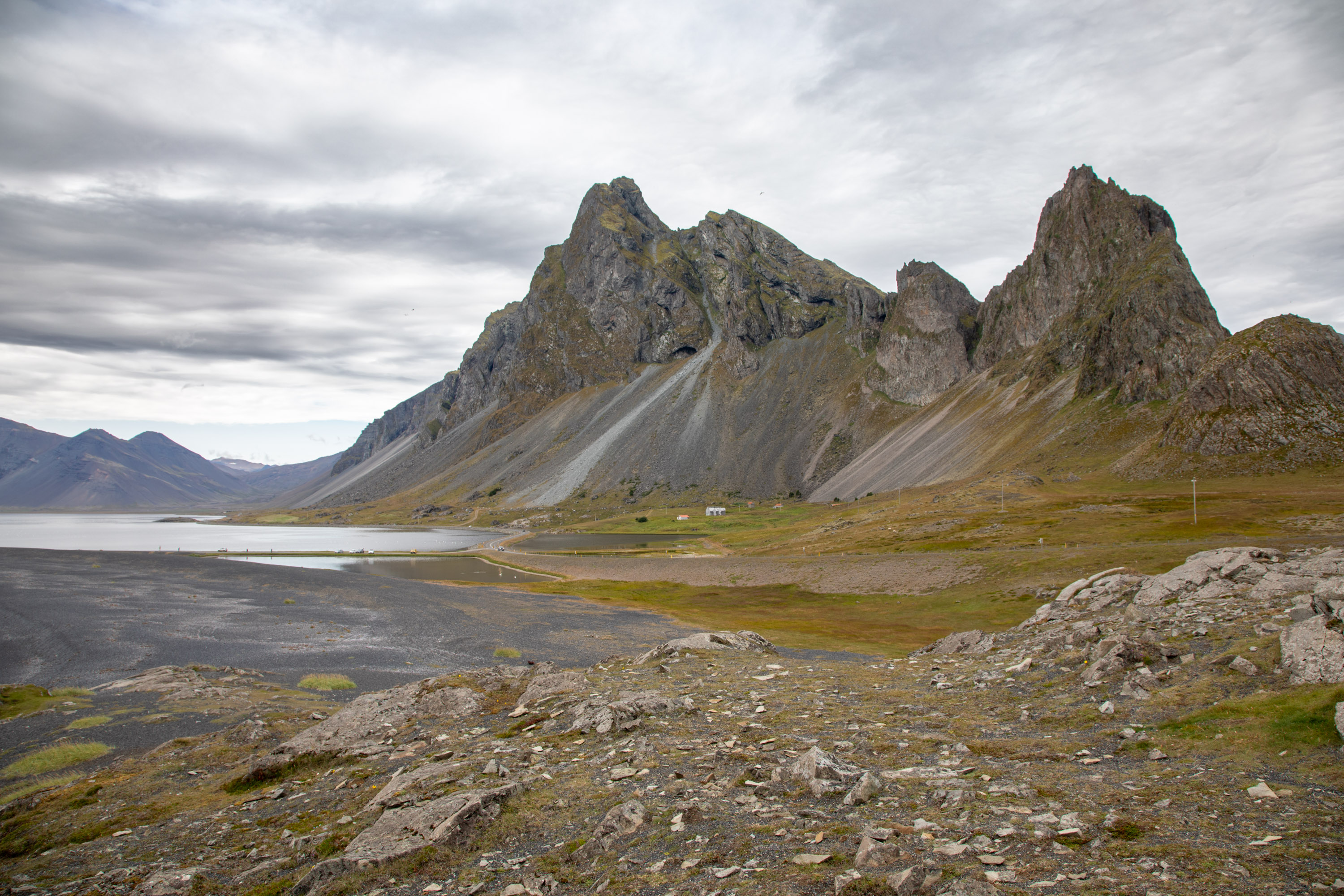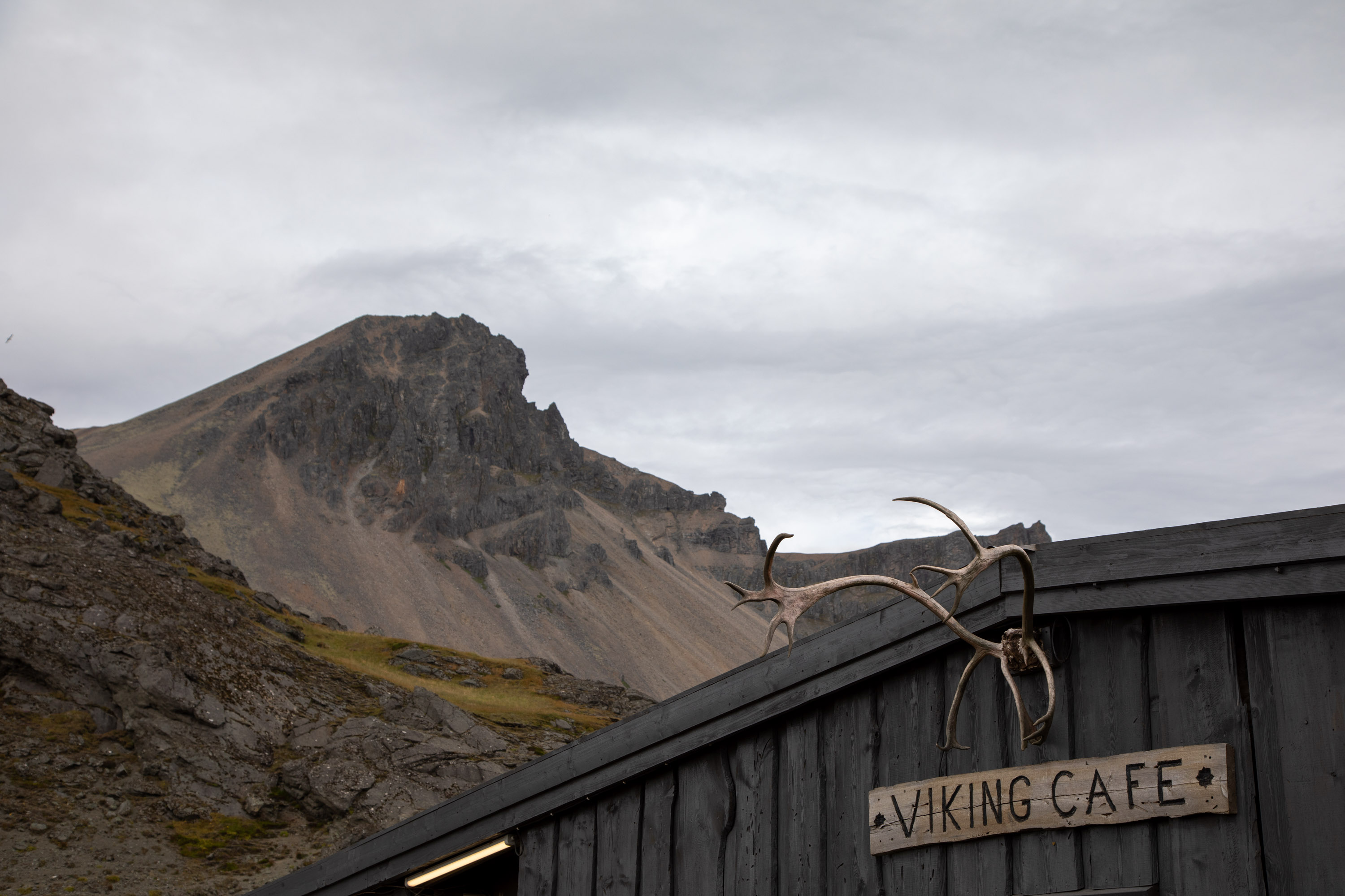 On vient d’en prendre pleins les yeux à Hvalnes, et la plage de sable noir de Stokksnes se trouve en fait dans la continuité. Par contre, il faut entrer par l’autre côté de la montagne. Stokksnes appartient à un domaine privé. Il faut payer le ticket d’entrée au Viking Café avant de pouvoir passer la barrière. La serveuse nous dit que si on dort sur place, ils déduisent le prix d’entrée dans le forfait de camping.