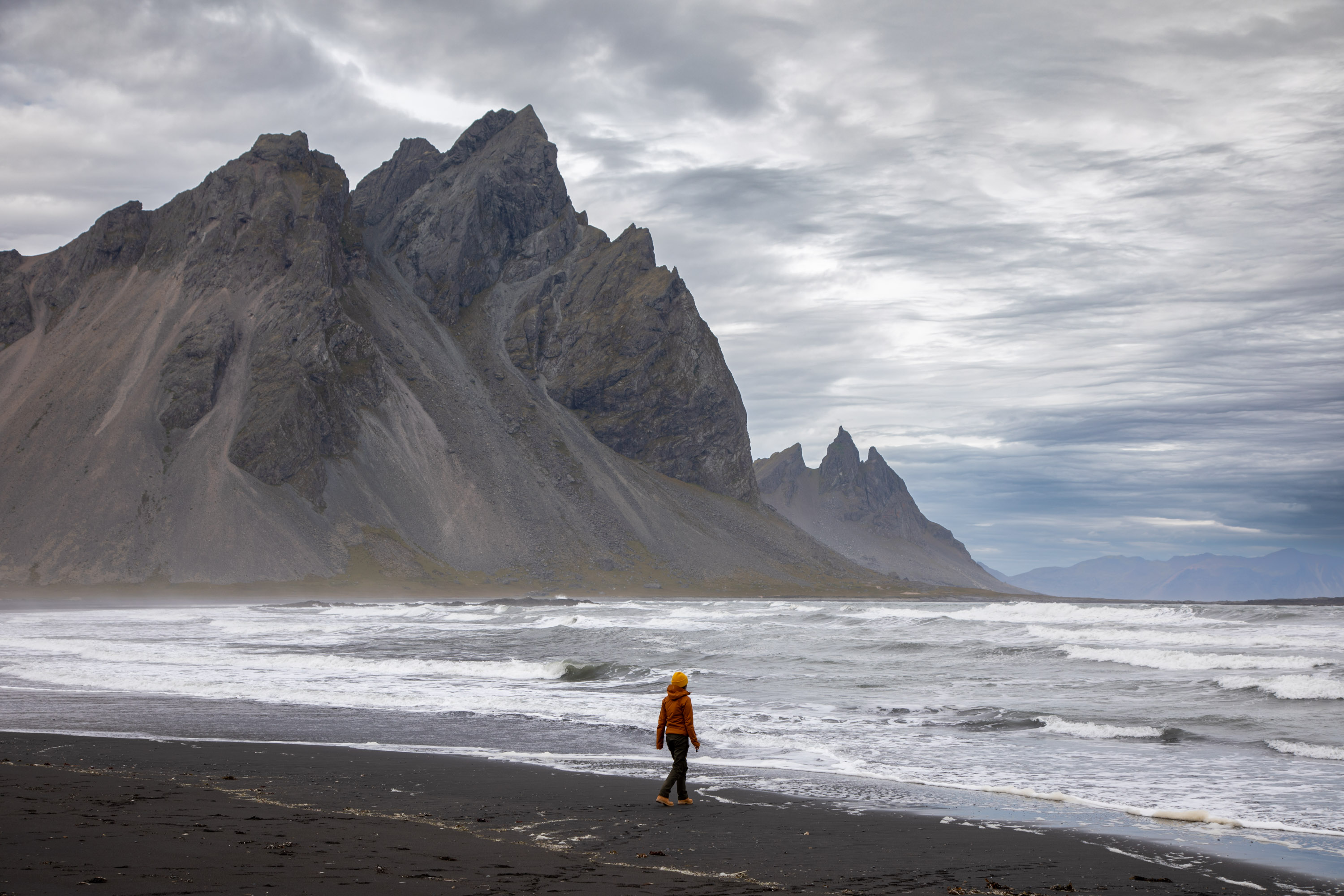 Nous traversons les fjords de l’Est de l’Islande pour rejoindre les grandioses glaciers du Sud du pays. Nous partons d’Egilsstaðir vers le petit village de Seydisfjordur puis la route nous amène à traverser des paysages dramatiques depuis les sommets brumeux jusqu’au bord de la mer. On fera une étape à la plage de sable noir de Stokksnes, vraiment immanquable tant elle offre un panorama unique. Nous arrivons en fin de journée face au lagon de Jökulsárlón stupéfiant avec tous les icebergs qui flottent à sa surface.