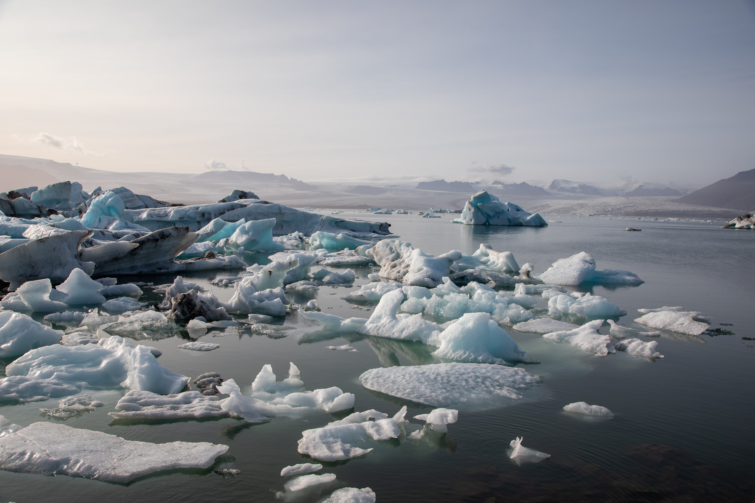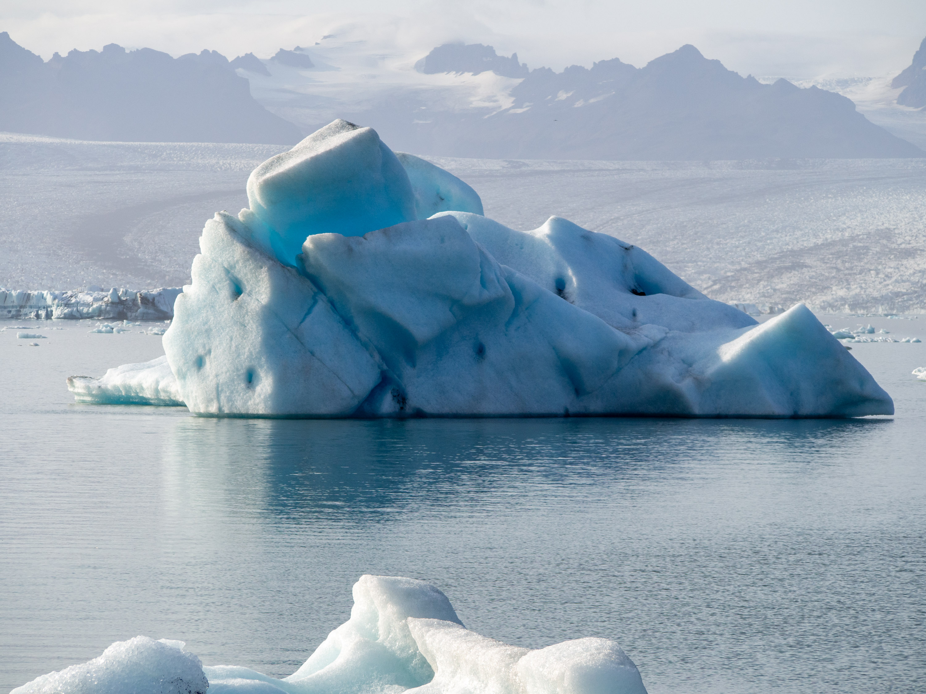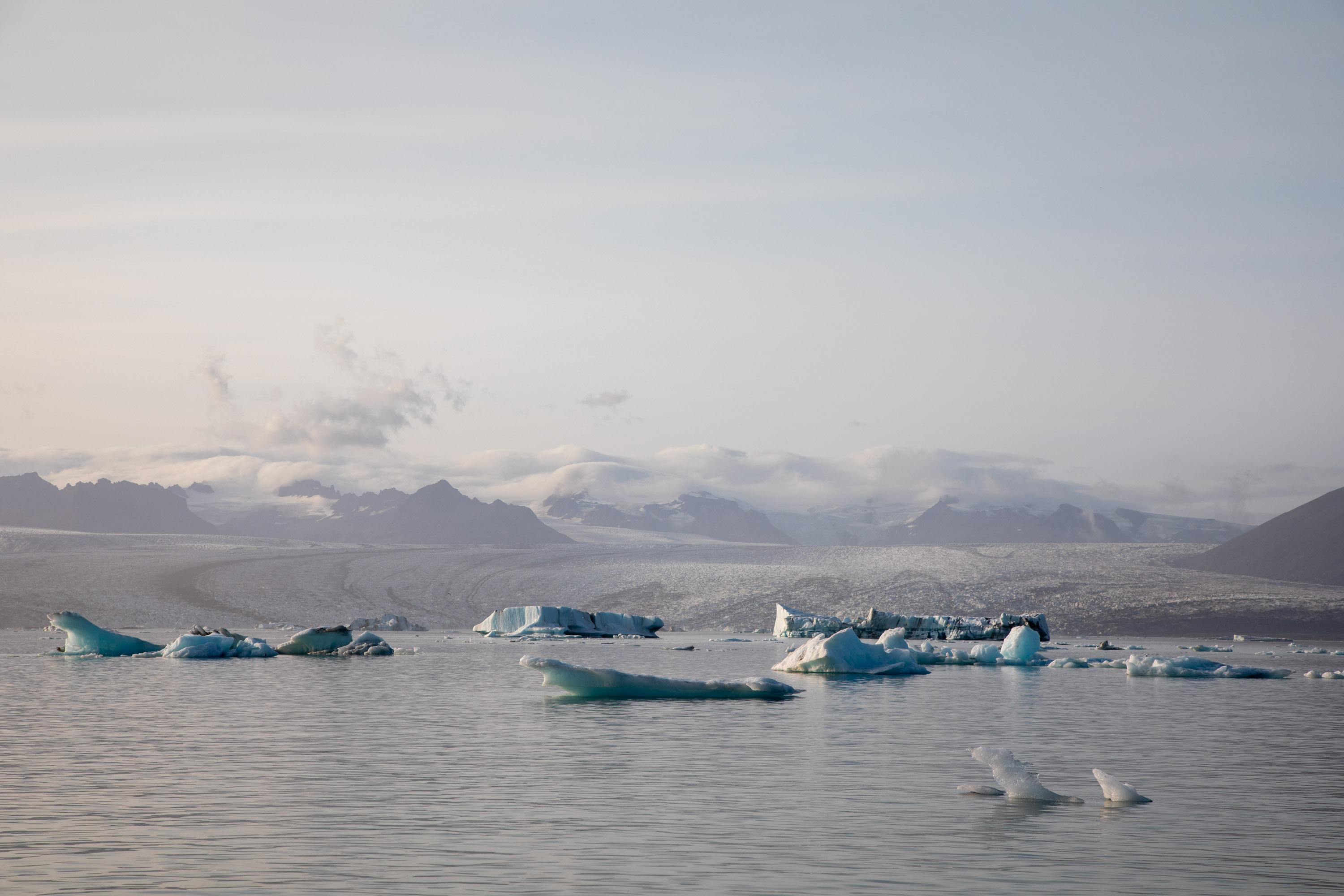 Le lac est rempli de morceaux de glaces qui se sont détachés du glacier et qui vont rejoindre la mer.