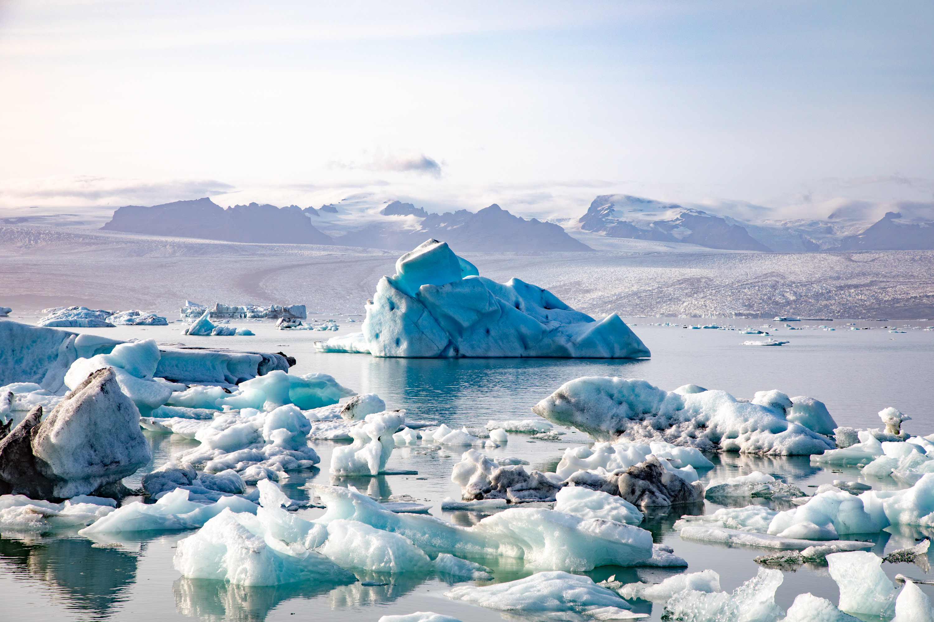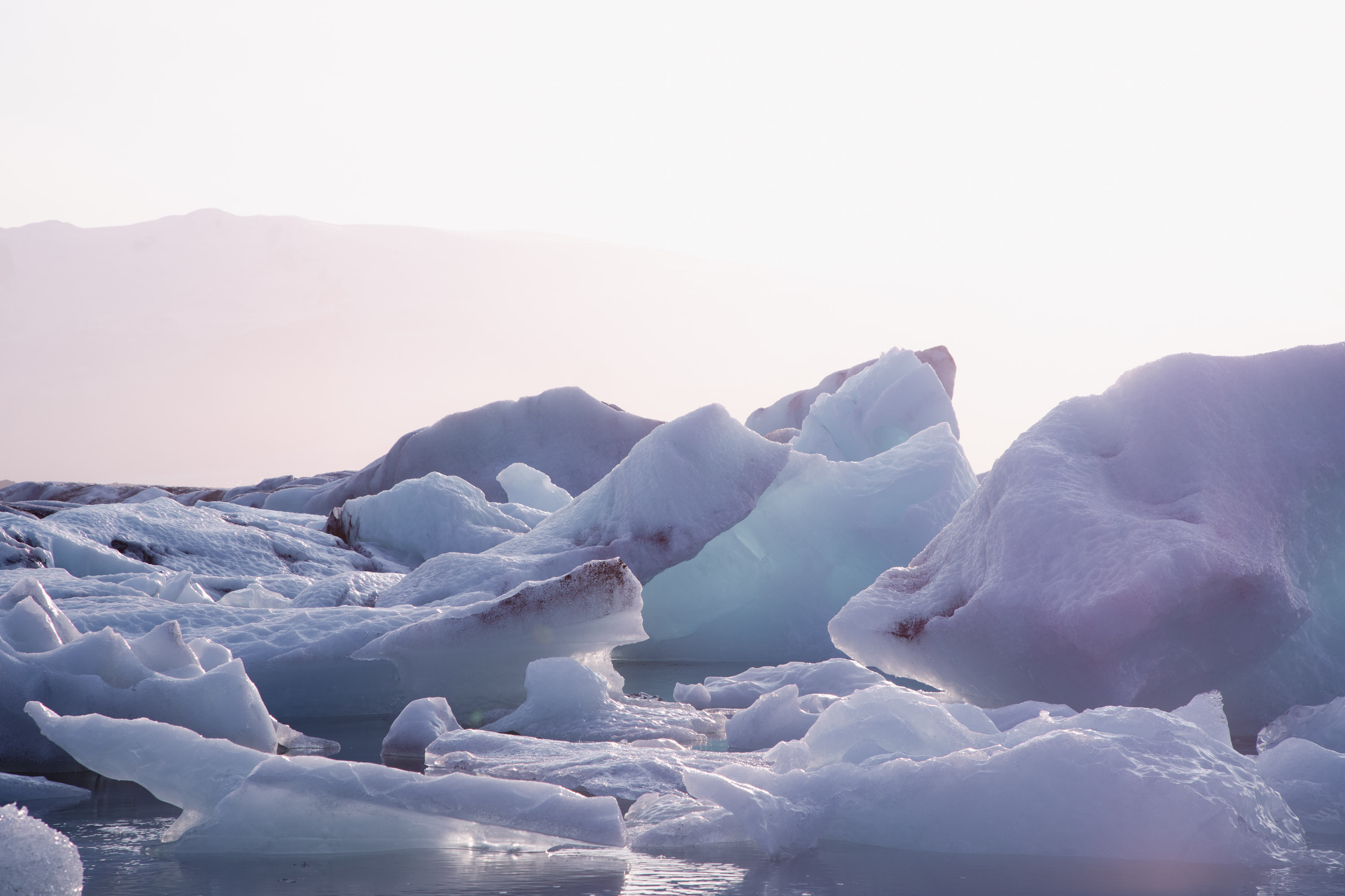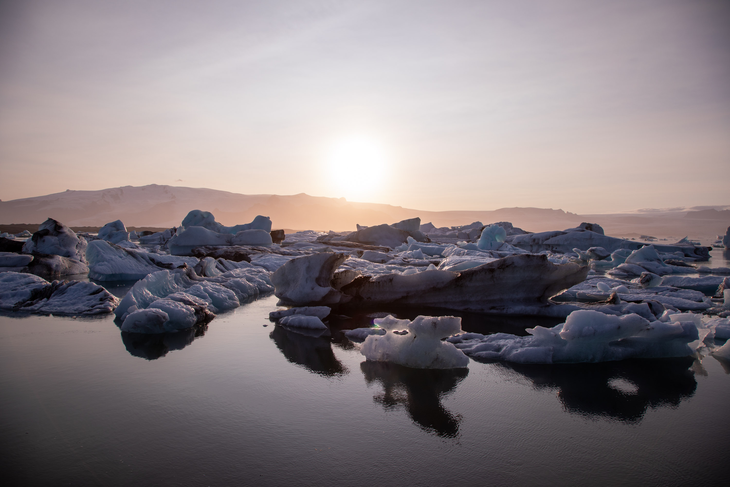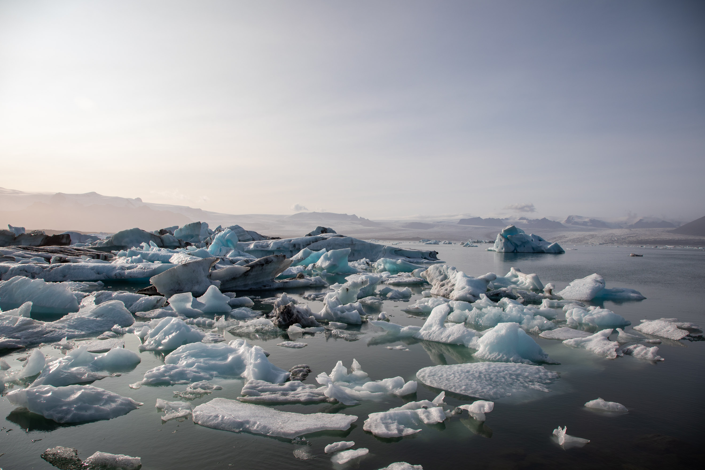 Le lac est rempli de morceaux de glaces qui se sont détachés du glacier et qui vont rejoindre la mer.