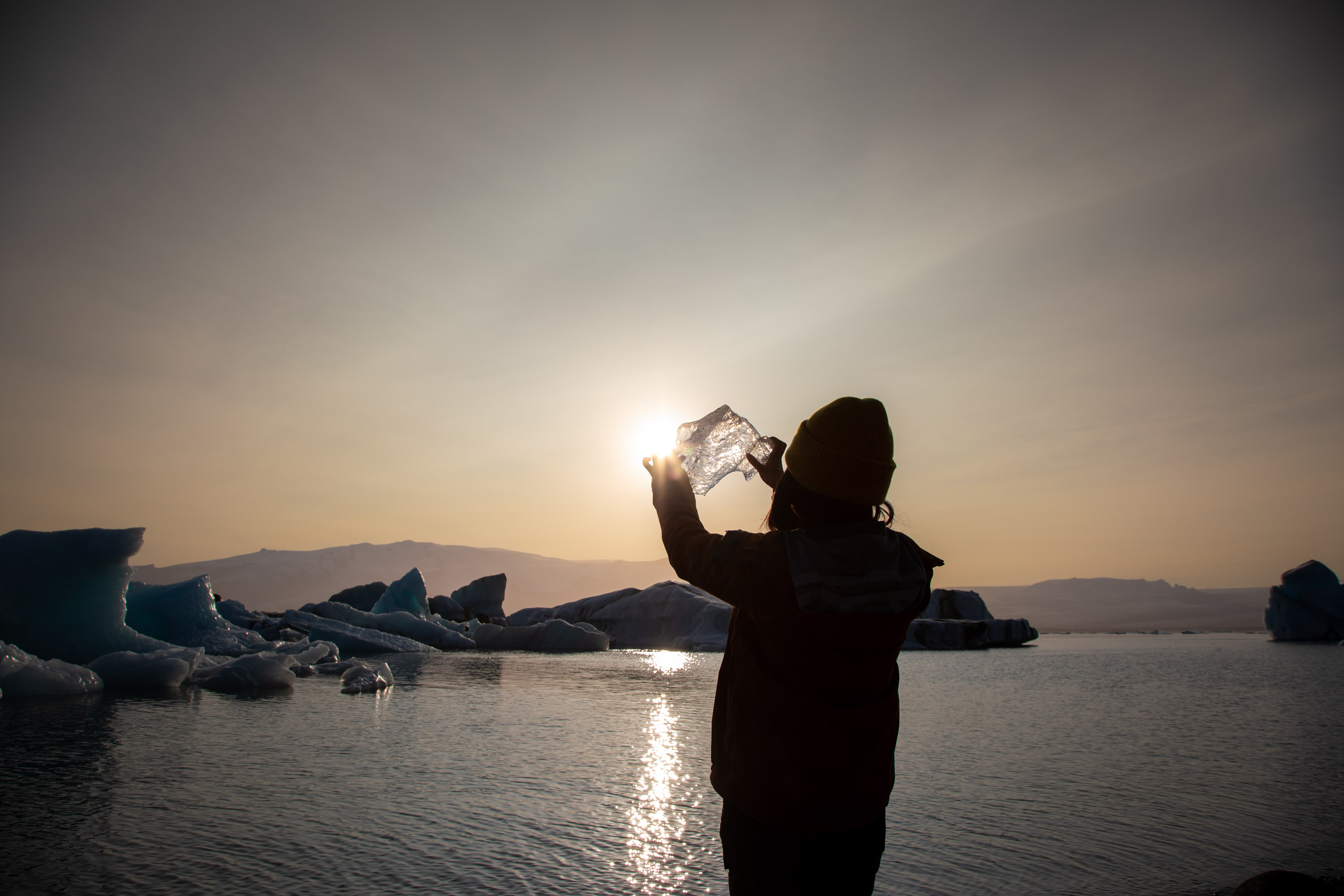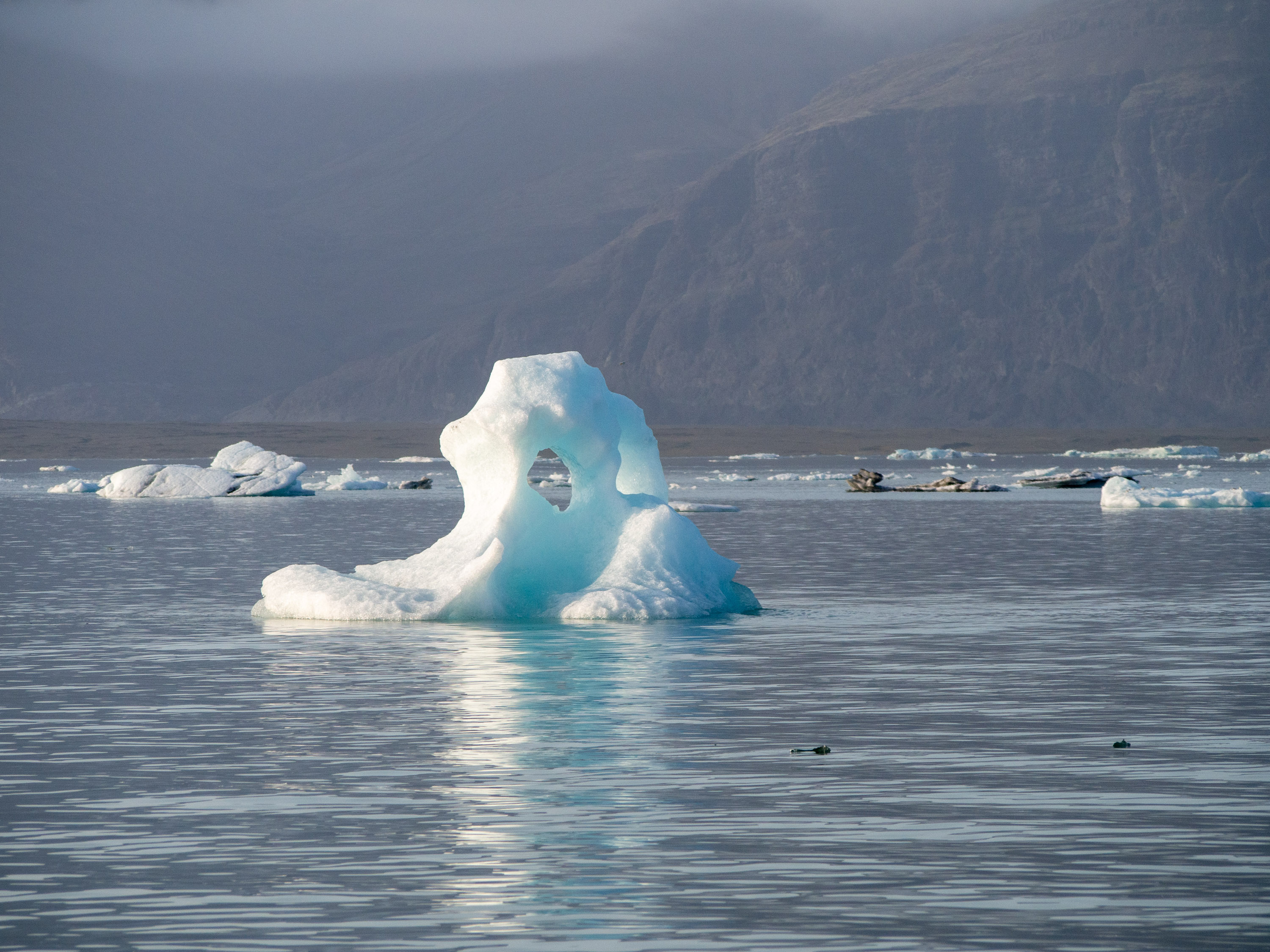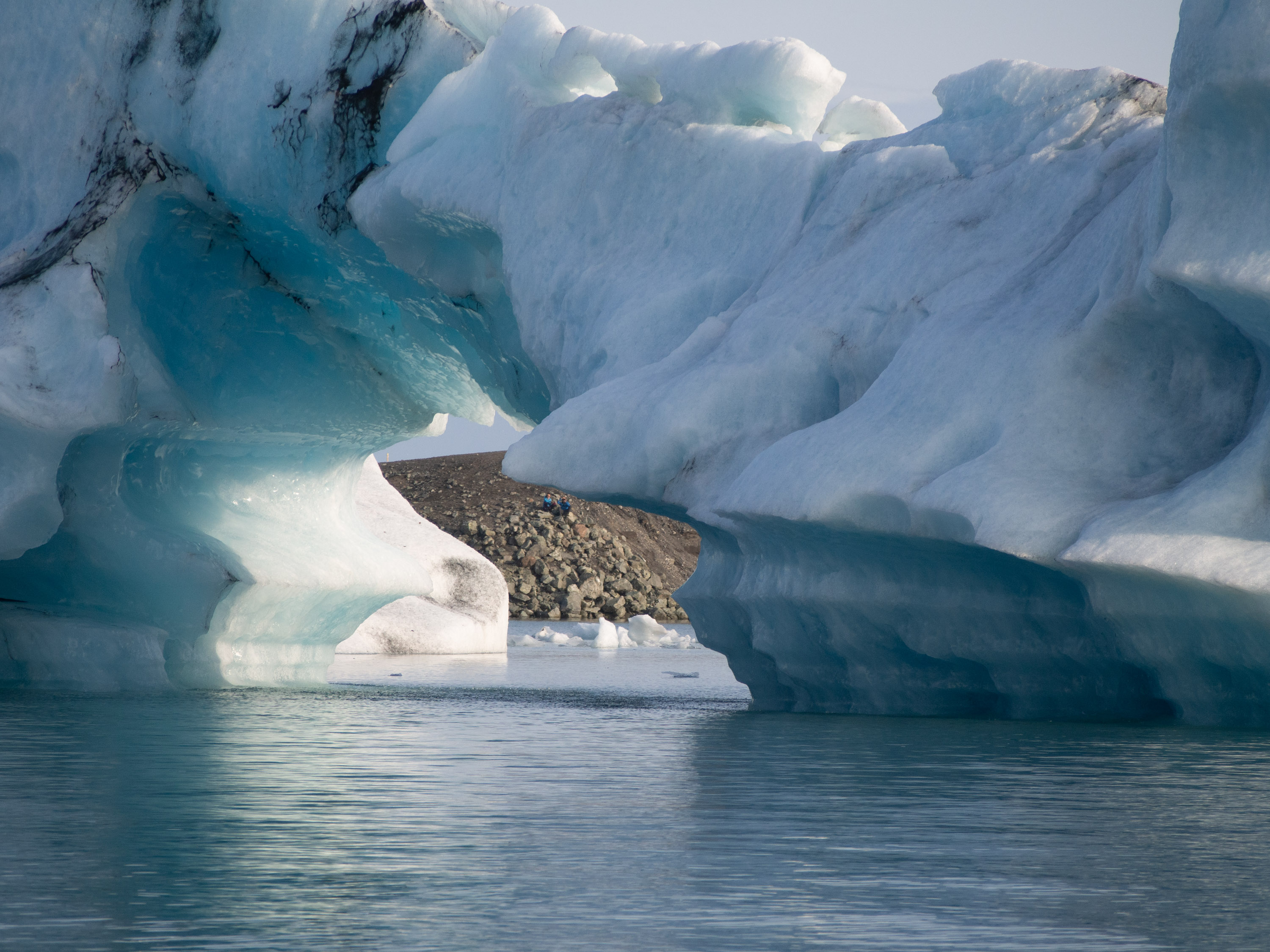 La calotte glaciaire se réduit rapidement, en fait ce lac n’est pas vieux. On a du mal à y croire, mais en fait la lagune n’existait pas il y a 100 ans, le glacier allait presque jusqu’à la mer et maintenant il a été remplacé par cette grande étendue d’eau.