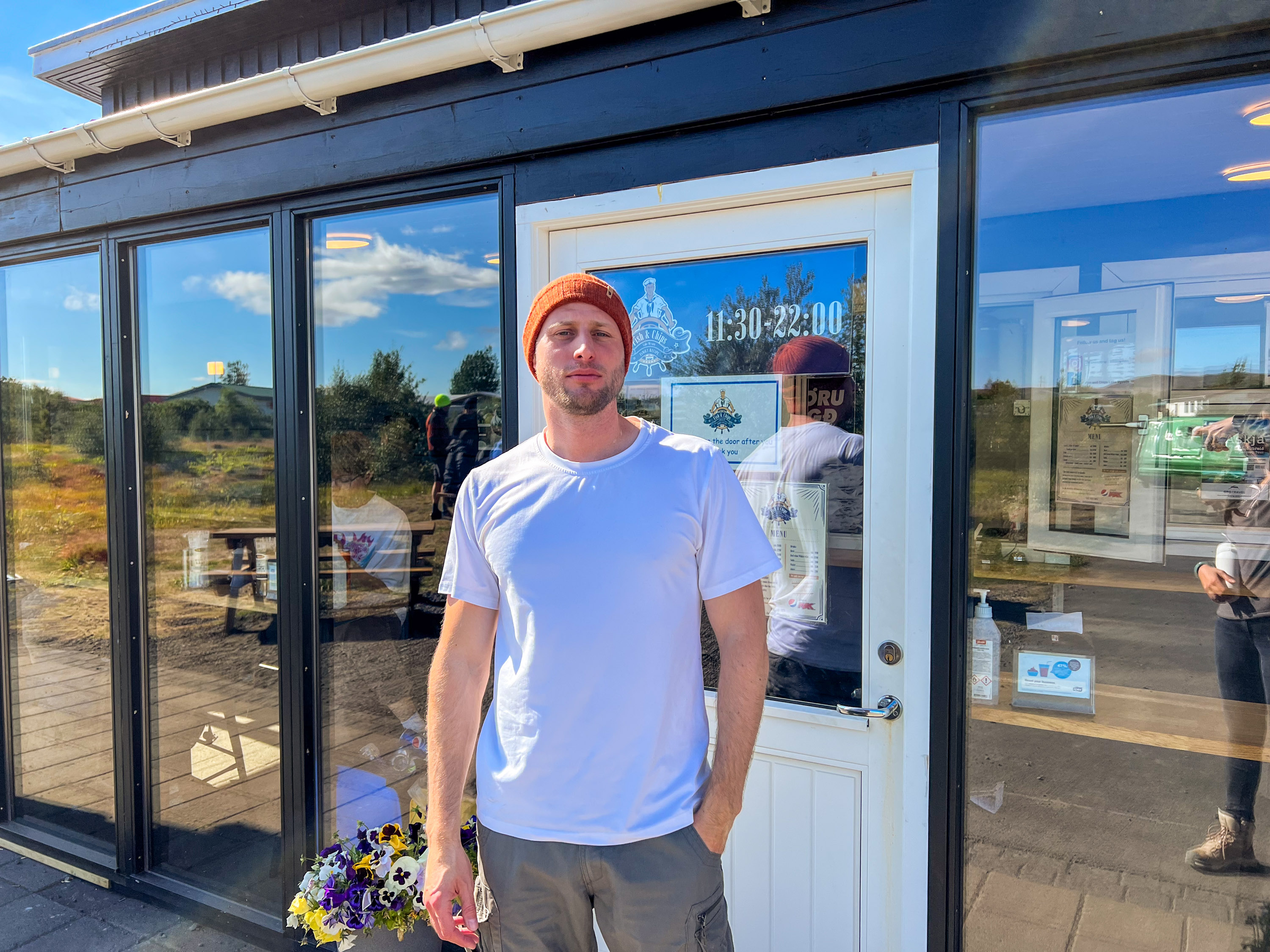 Nous reprenons la voiture et nous devons nous organiser pour le soir. Nous n’avons toujours pas trouvé d’hôtel ni d’endroit pour diner et nous n’avons pas acheté à manger le matin au supermarché. Il commence à faire froid pour ne rien arranger. Les éléments commencent à se déchainer avec la pluie, le vent et la brume, on ne voit plus rien sur la route. En entrant dans le nuage de brume, c’est comme si on était passé directement de la journée à la nuit. On allume les phares et on roule au pas. On décide de prendre une chambre dans la ville à proximité, Egilsstaðir, et de trouver un restaurant. Cette ville a une offre intéressante d’hôtels et on trouve finalement une très bonne affaire au sortir de la ville à Eiðar un peu en dessous de notre budget. Ce sera un bon plan avec une belle chambre, un lit double, très propre. Parfait ça c’est fait. Concernant le diner, on tombe sur des commentaires qui encensent un restaurant gastronomique classe. C’est cher, mais on se dit qu’il faut que l’on fasse au moins un bon restaurant dans le voyage. On y va en tentant notre chance pour voir si il reste de la place. Le restaurant est installé dans une jolie maison en bois aux abords de la ville.