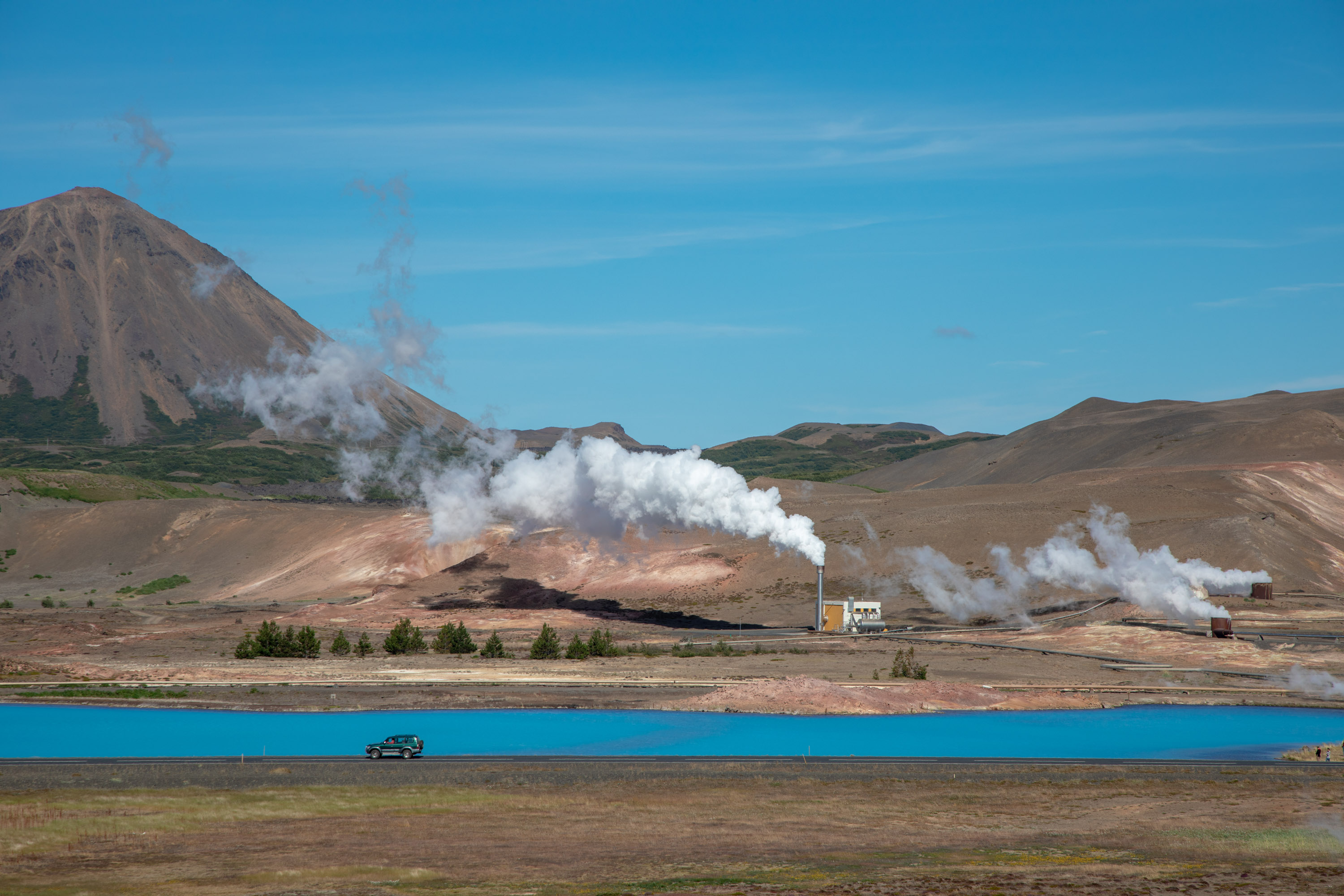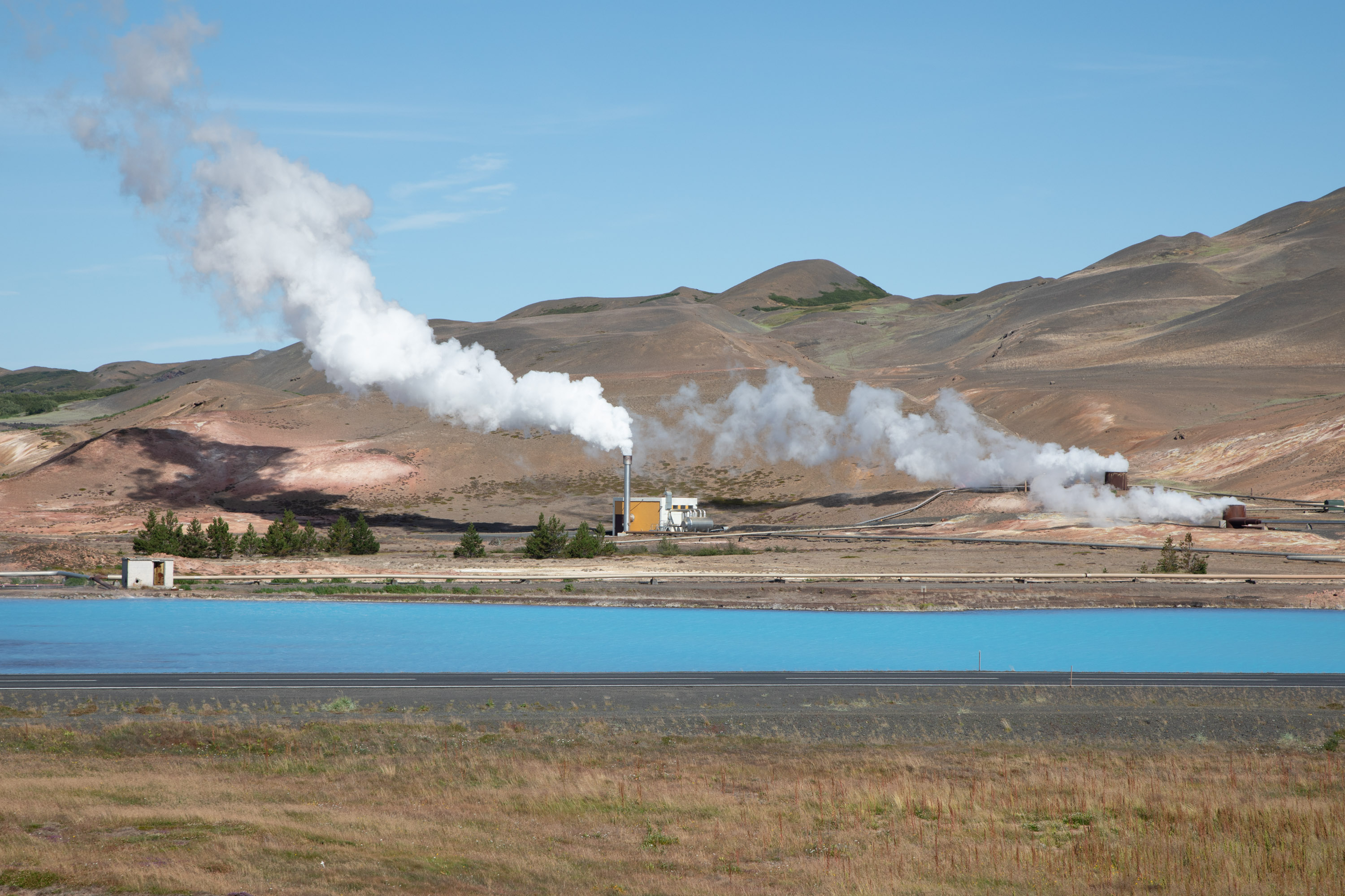 D’ailleurs, autour des bains de Myvatn, il y a beaucoup d’usines qui transforment l’énergie contenue dans le sol en électricité. Les fumées blanches qui sortent des installations dans ce décor lunaire.