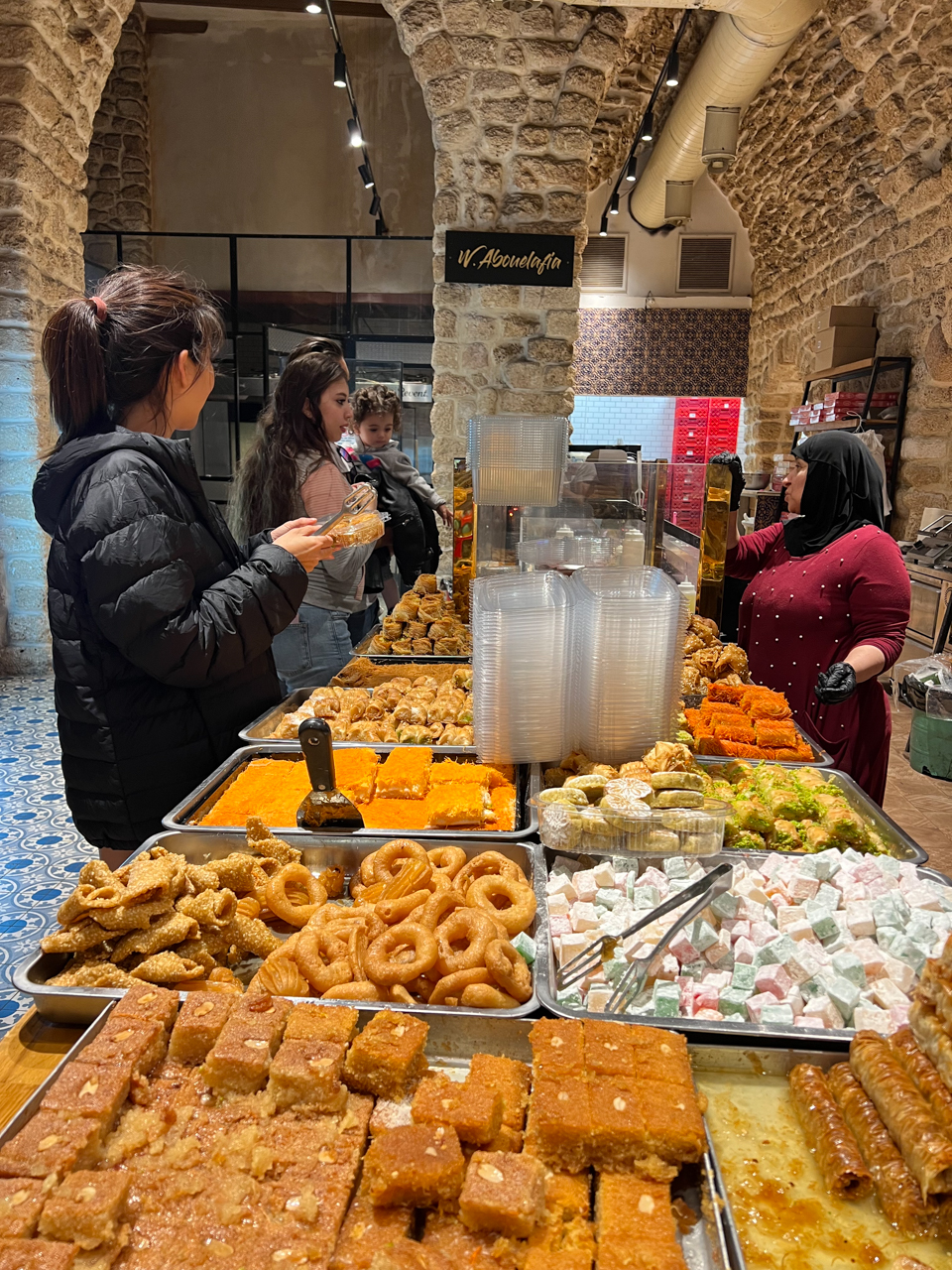 Alors que dans la partie plage, on sent une grande liberté du corps et un esthétisme même, avec des hommes et des femmes aux physique très bien mis en valeur, lorsqu’on arrive à Jaffa on sent déjà beaucoup plus de mixité dans le rapport au vêtement et au corps. Ici on croise beaucoup plus de familles avec la femme voilée et des hommes bien plus couverts. Deux mondes si différents qui vivent l’un à côté de l’autre que l’on retrouve aussi dans l’architecture.
