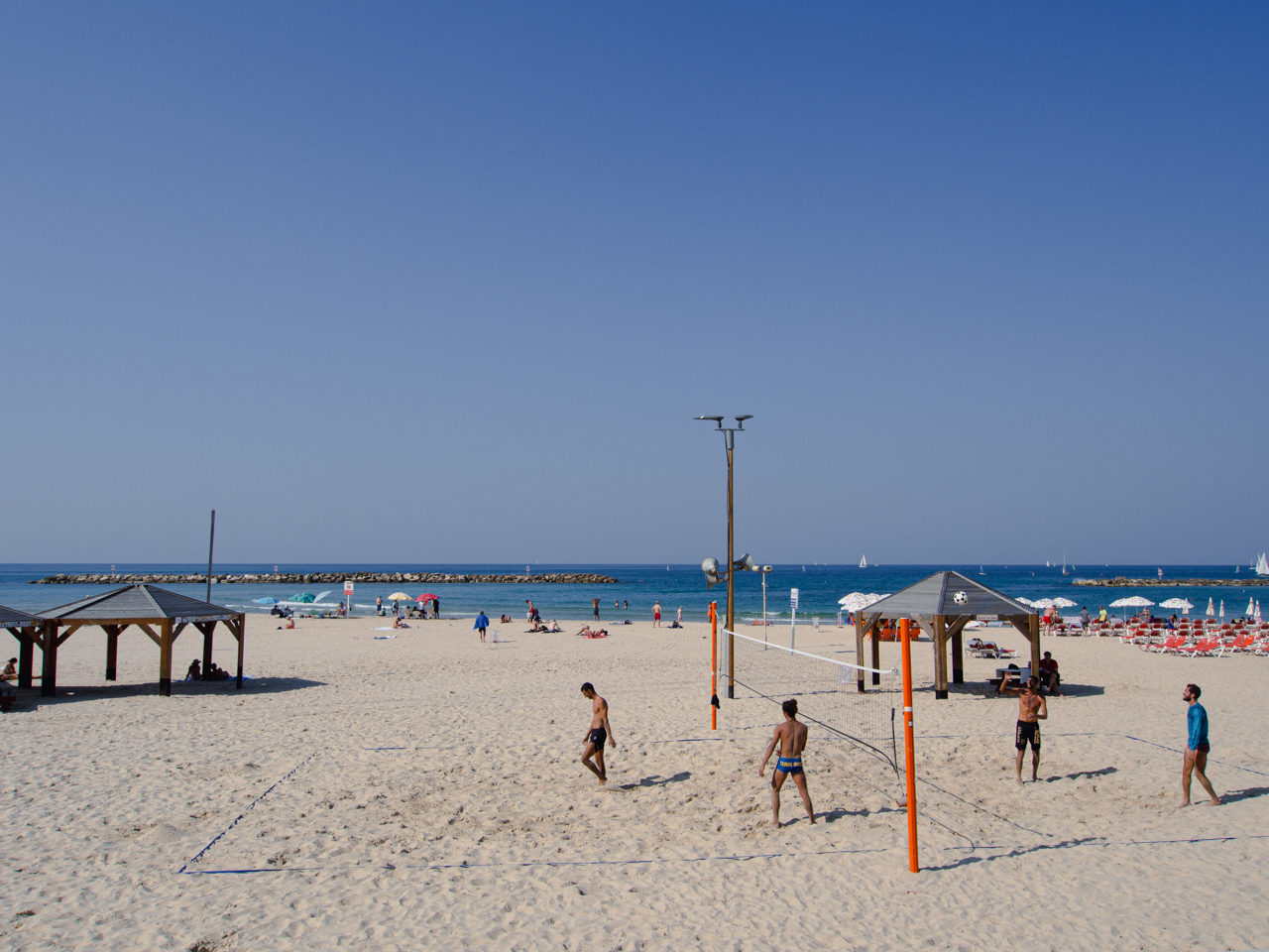 On retourne à l’hôtel se changer. Après cette promenade matinale qui nous a permis de digérer l’énorme petit déjeuner, on se met maintenant en mode plage. On est mi-Novembre, mais pas de vent prévu aujourd’hui, la météo annonce un 29°C et la mer nous fait un appel du pied. On remonte la promenade en passant devant les différentes plages, dont la plage des volleyeurs.