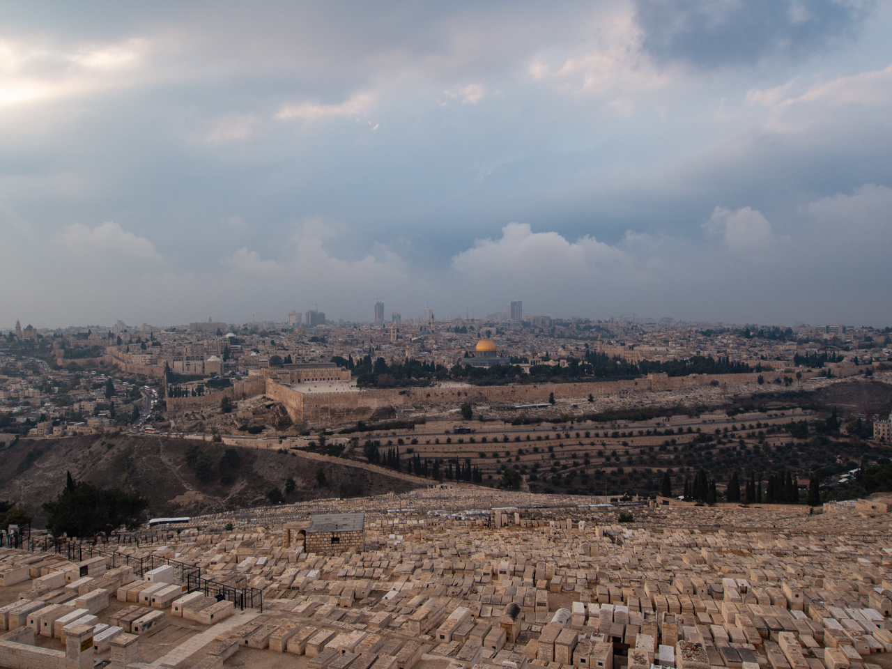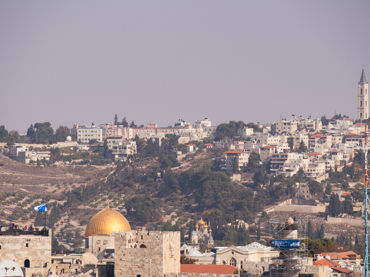 On peut voir la proportion incroyable du Mont du Temple par rapport au reste de la ville à l’intérieur des remparts. Avec son dôme doré, les vestiges du deuxième temple, les églises qui dominent l’horizon avec leurs clochers, le cimetière juif sous nos pieds, on peut ressentir la complexité de cette ville, coeur sacré de ces trois religions monothéistes.