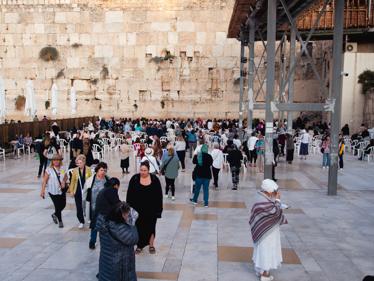 On avait peur d’avoir beaucoup de queue aux portiques de sécurité mais finalement il n’y avait quasiment personne. On pénètre en quelques instants sur la passerelle qui passe au-dessus du mur des lamentations, ce qui nous donne une vue privilégiée sur les croyants juifs.