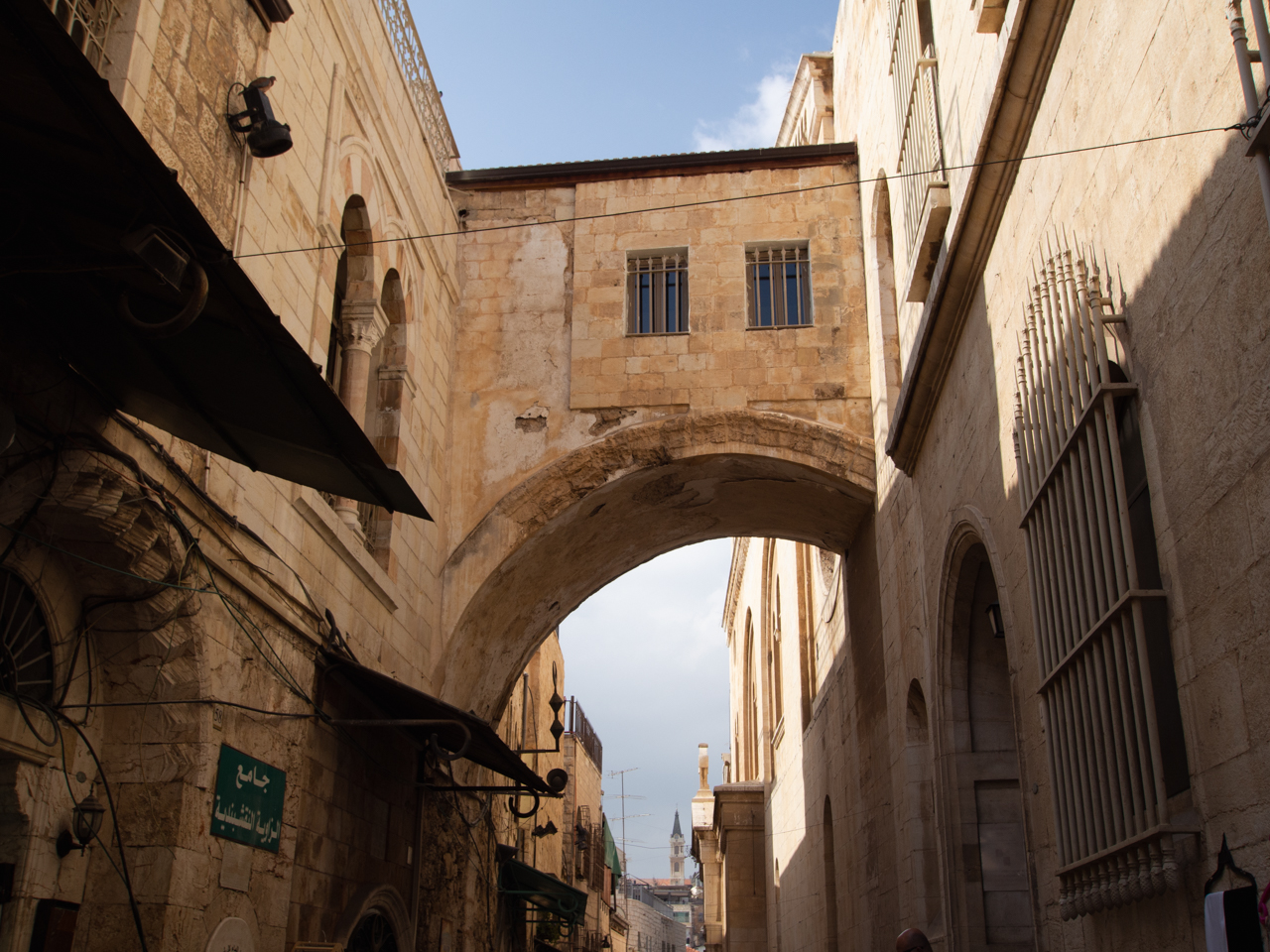 On passe sous la chapelle de l’Ecce Homo qui enjambe la Via Dolorosa.