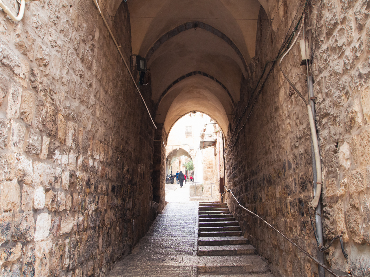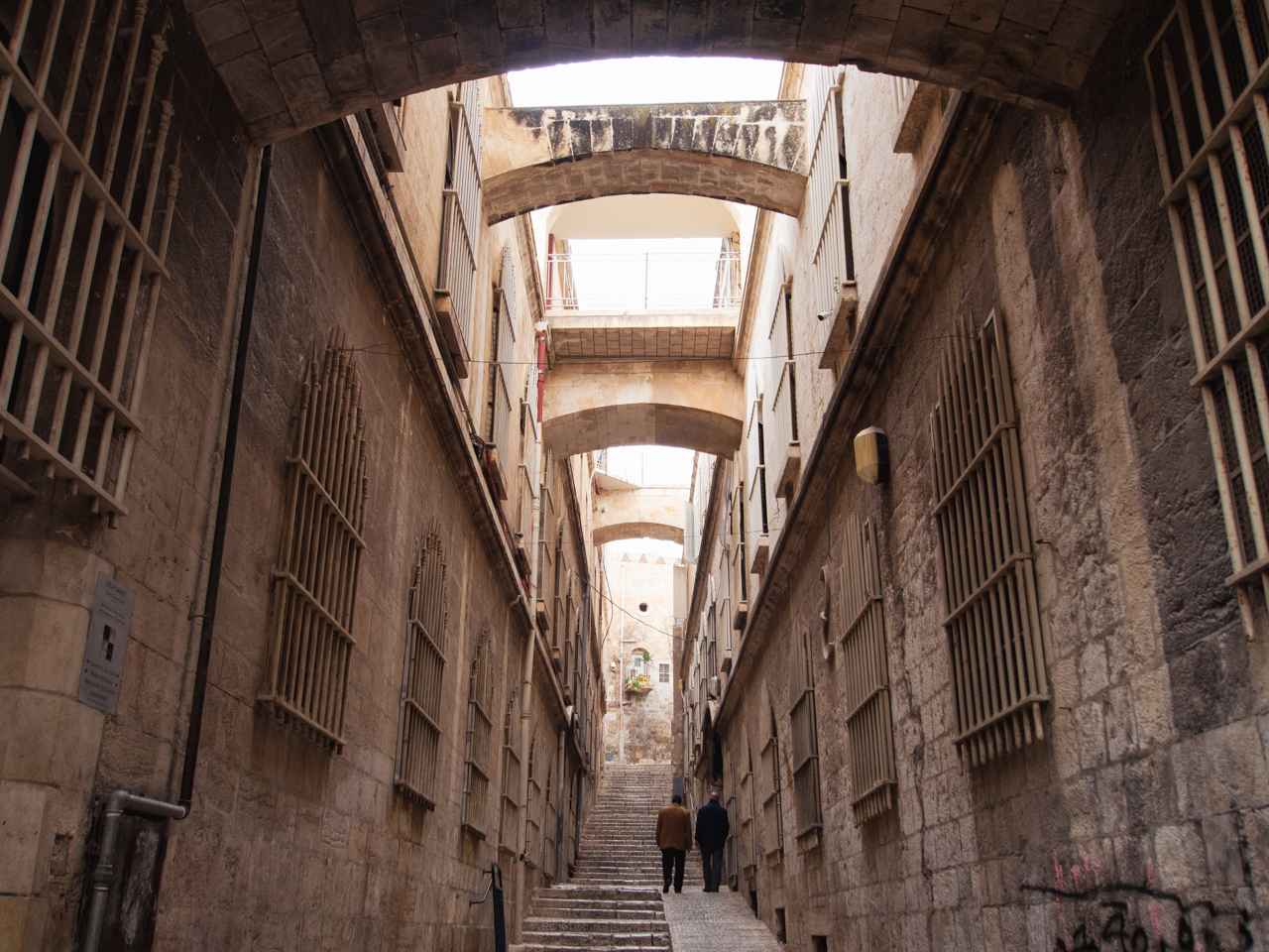 La ville est très dense, après une rue accessible aux voitures, il faut finir à pieds. Ls rues principales qui amènent au Mur des Lamentations ressemblent à un souk où s’alignent les marchands du temple qui vendent toutes sortes de babioles aux touristes. Il y a énormément de rues abritées, et des maisons sont construites au-dessus des ruelles, il y a beaucoup de monde qui s’enfonce dans ces petites ruelles.