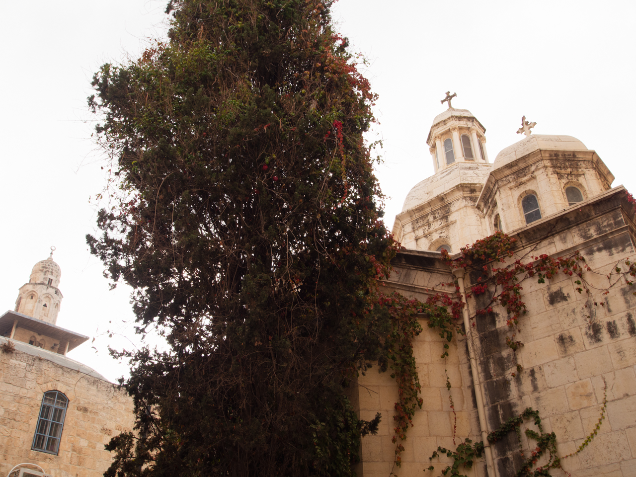 Pour notre troisième et dernière journée à Jérusalem, nous continuons notre visite en explorant les différents sites que l’on n’a pas encore découvert et nous souhaitons aussi refaire la Via Dolorosa dans son intégralité, avec un texte explicatif en support pour en bien comprendre les différentes étapes. On commence par un petit déjeuner dans la galerie commerçante au pied de la vieille ville dans une boulangerie pour prendre un petit café et un croissant. Petite douceur de la matinée. Puis on remonte le quartier arménien très calme, et avec des arbres qui sont encore en fleur au mois de Novembre.