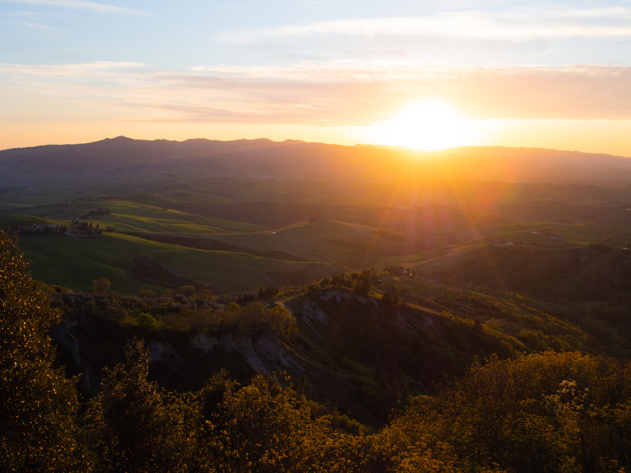 Nous continuons notre visite dans cette région de Toscane en reprenant la voiture et poussant vers le village de Volterra. Nous avons trouvé un bel hôtel dans une petite ville proche de Volterra, et comme le soleil se couche très tard en ce mois d’Avril, on a encore le temps d’y aller et de chercher un beau point de vue pour voir le coucher de soleil.