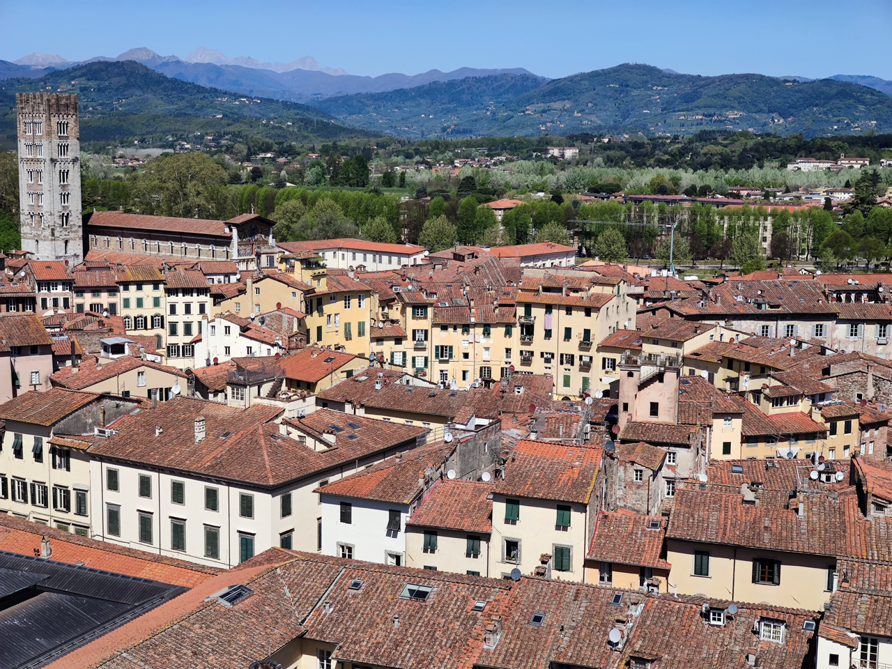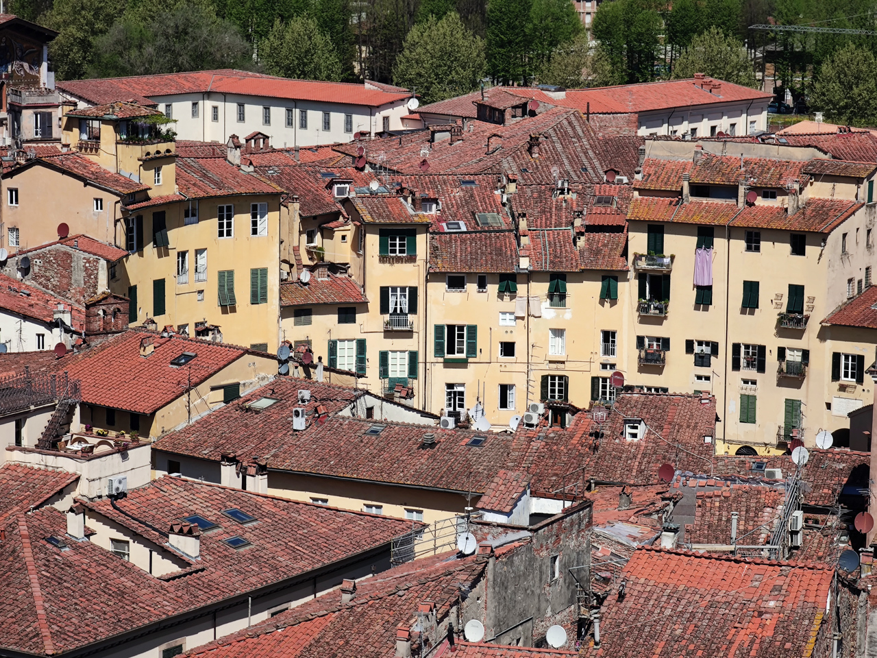 Comme dans d’autres villes toscanes, des tours ont été construites par des familles riches, la plus belle est surement la tour de Guinigi. Cette tour qui domine la ville a même des arbres au sommet, très original.