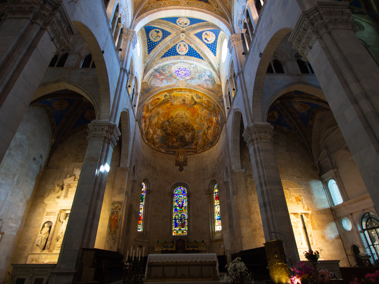 La région de Lucca dépend de la Toscane et Lucca est la capitale de cette région, une ville à l’histoire ancienne qui a été rattaché à Florence tardivement. La ville est enserrée dans une muraille encore bien préservée. La ville est limitée aux voitures mais on trouve des parkings autour et cela rend la promenade dans le centre ville bien plus agréable. On découvre une magnifique cathédrale avec une façade proche de cette de Pise, avec ses colonnes.