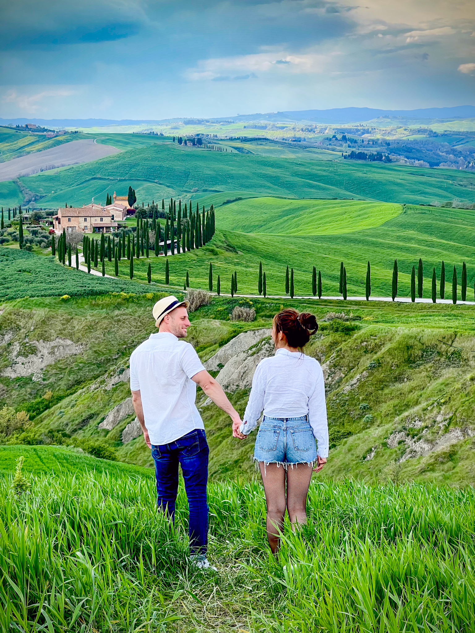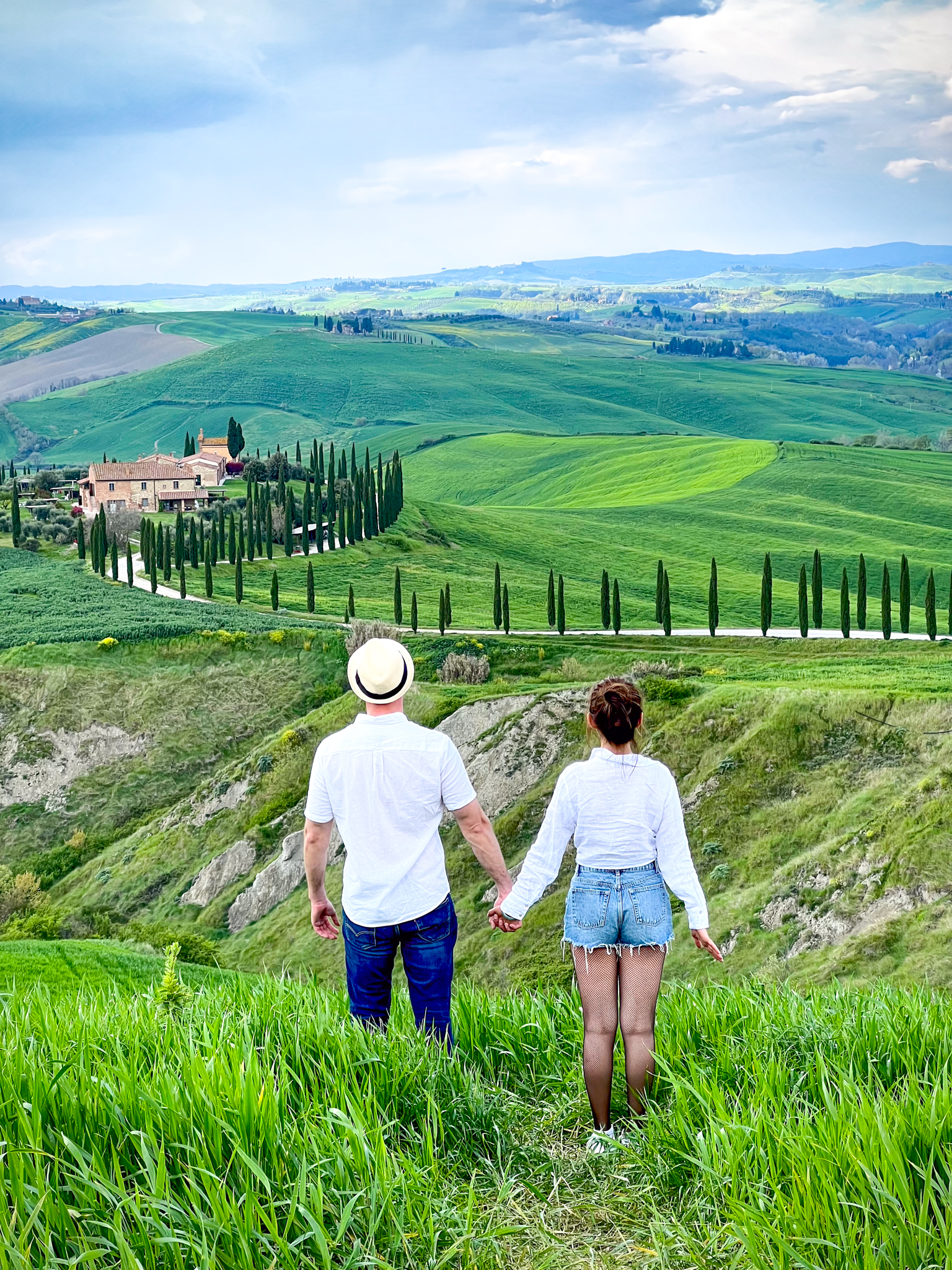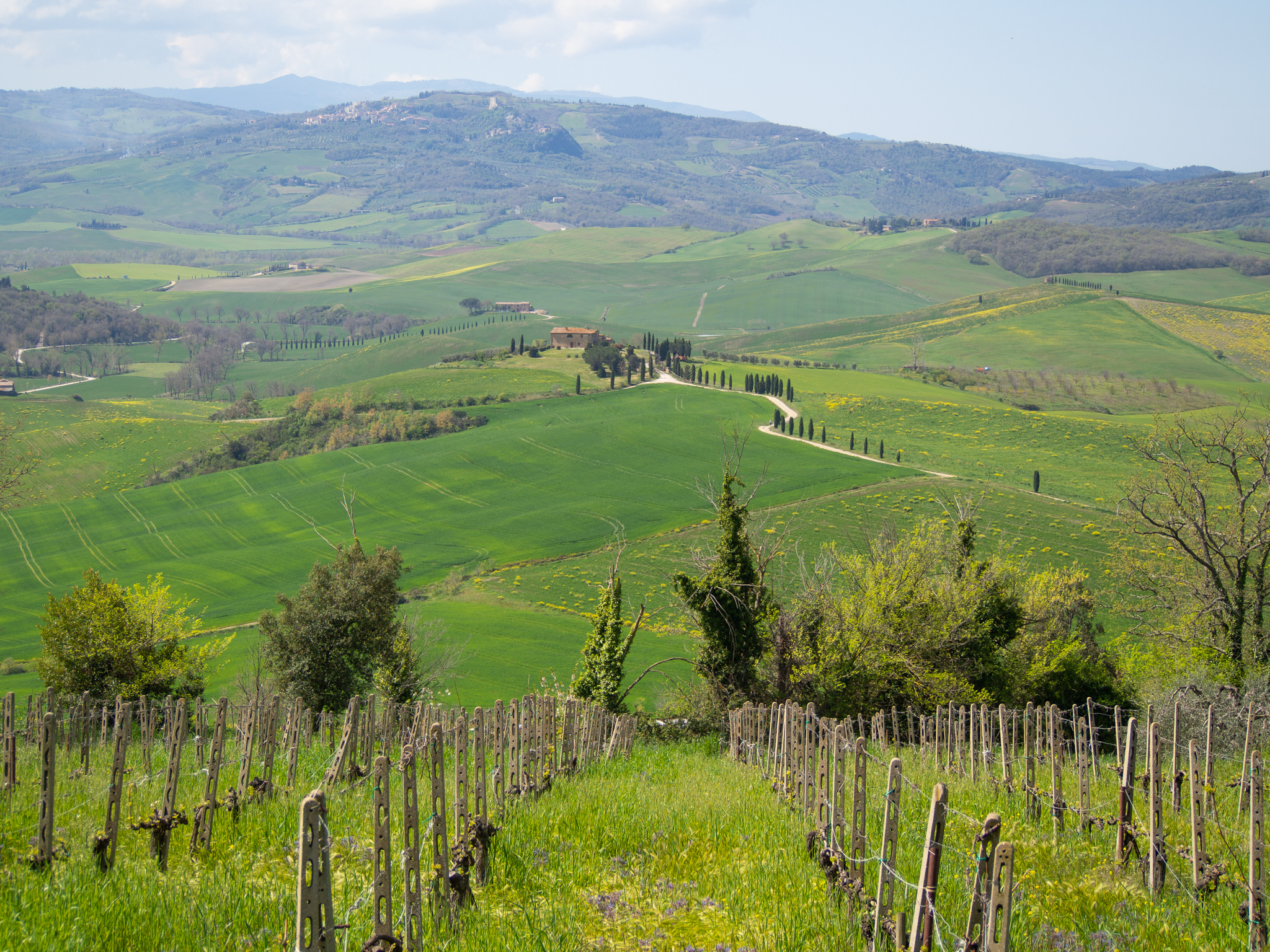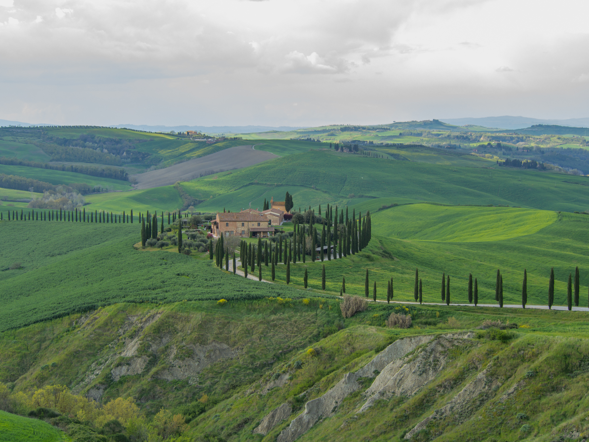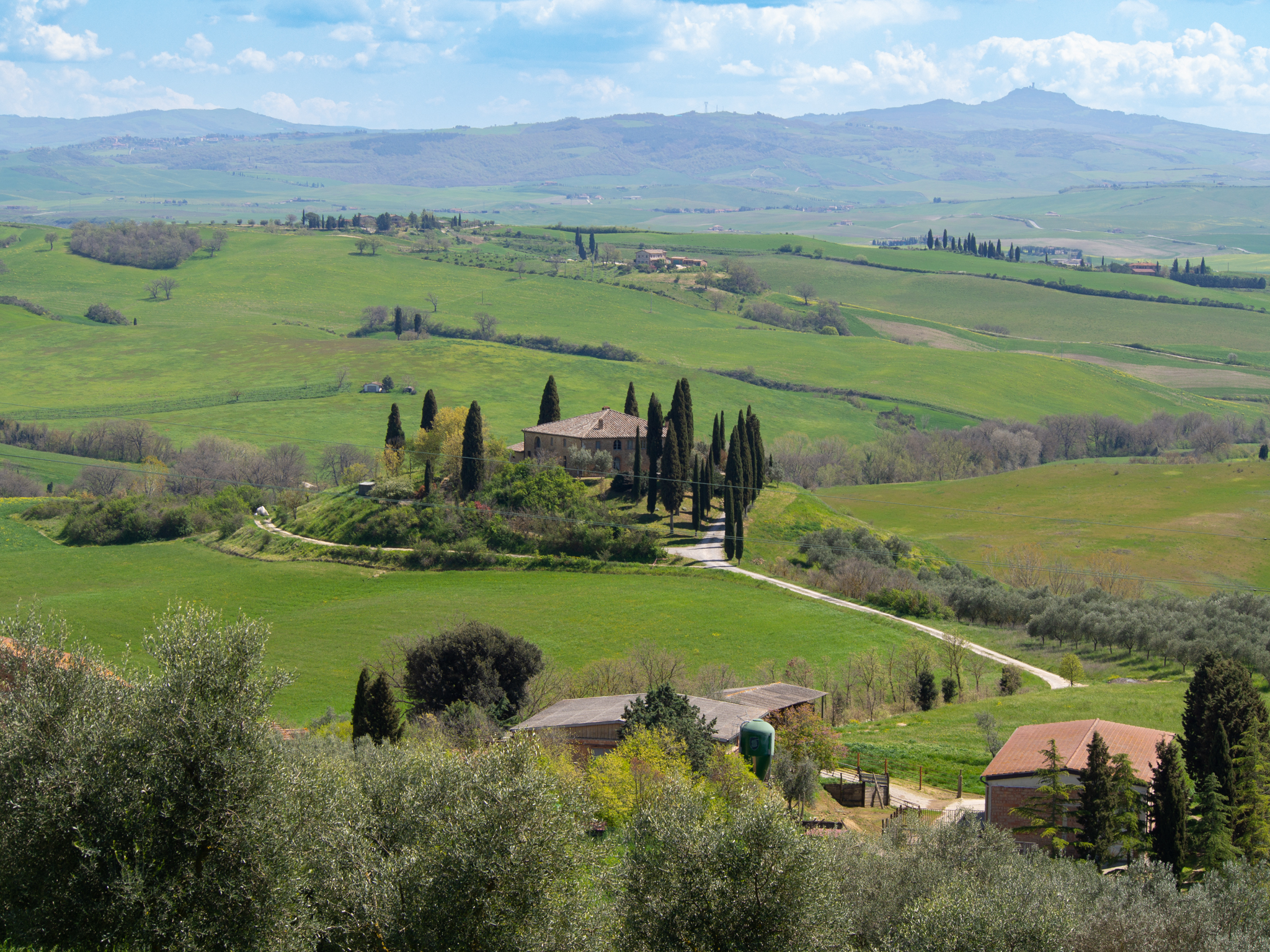 Au Sud de Sienne, on trouve les paysages les plus emblématiques de la Toscane. Ces collines couvertes d’herbe verte qui ondulent jusqu’à l’horizon, les lignées de cyprès qui rejoignent de belles fermes. On est dans le Val d’Orcia, cette région aux paysages romantiques qui se prête tellement à un road trip le long des routes de campagne tellement typiques.