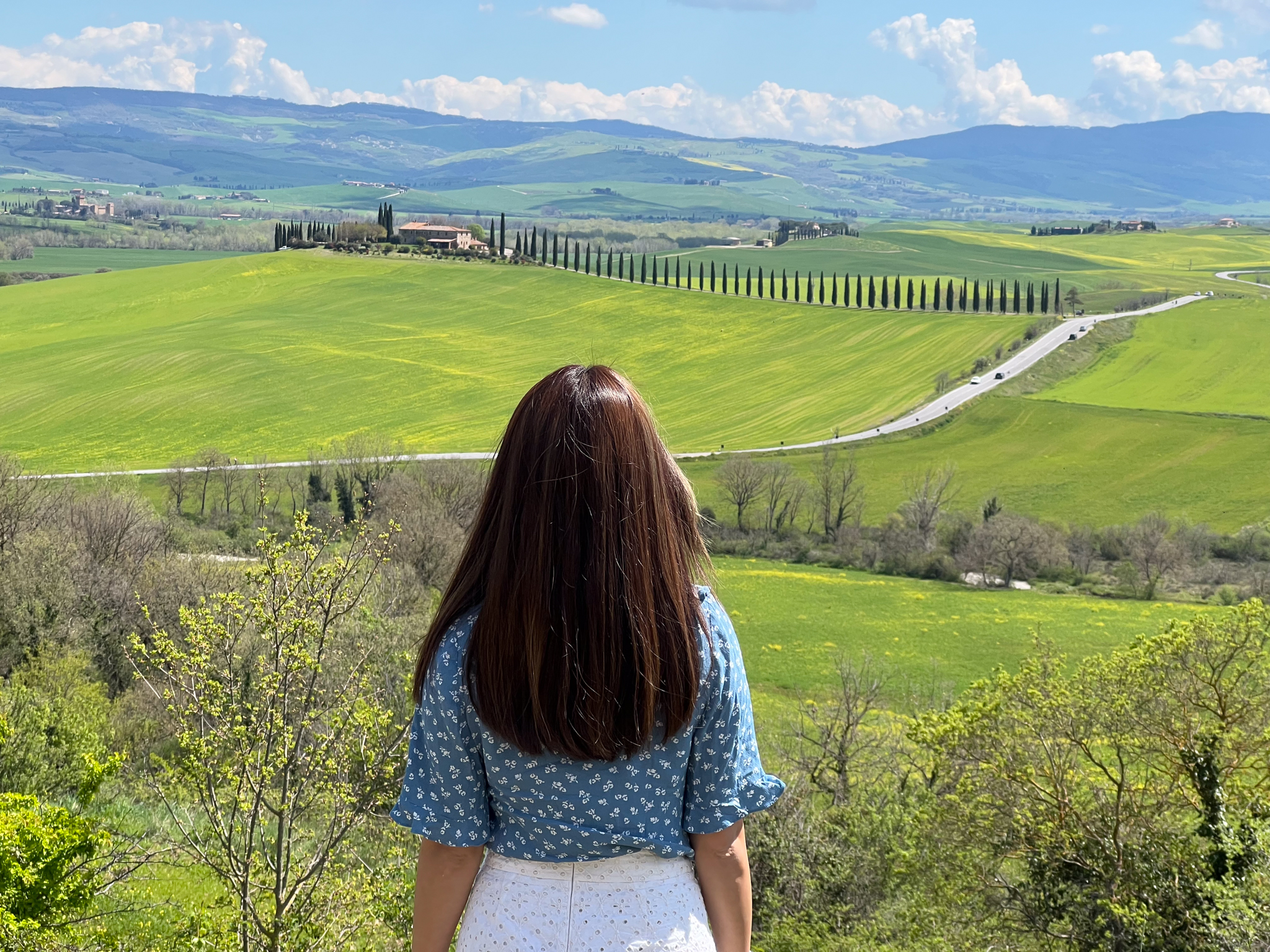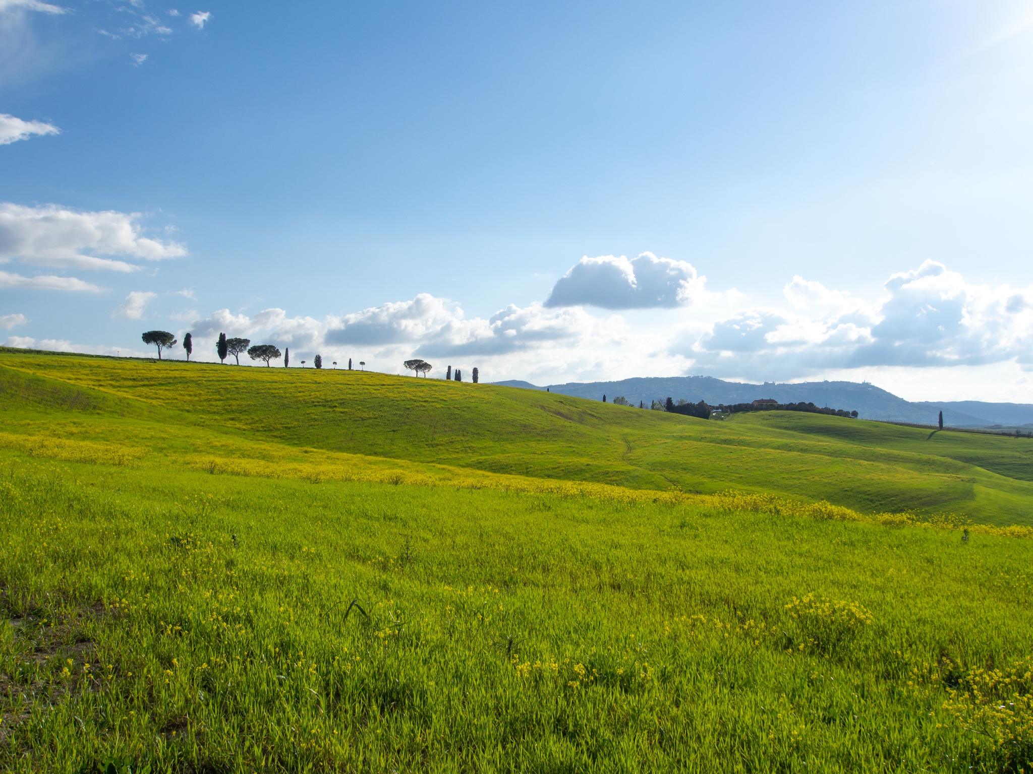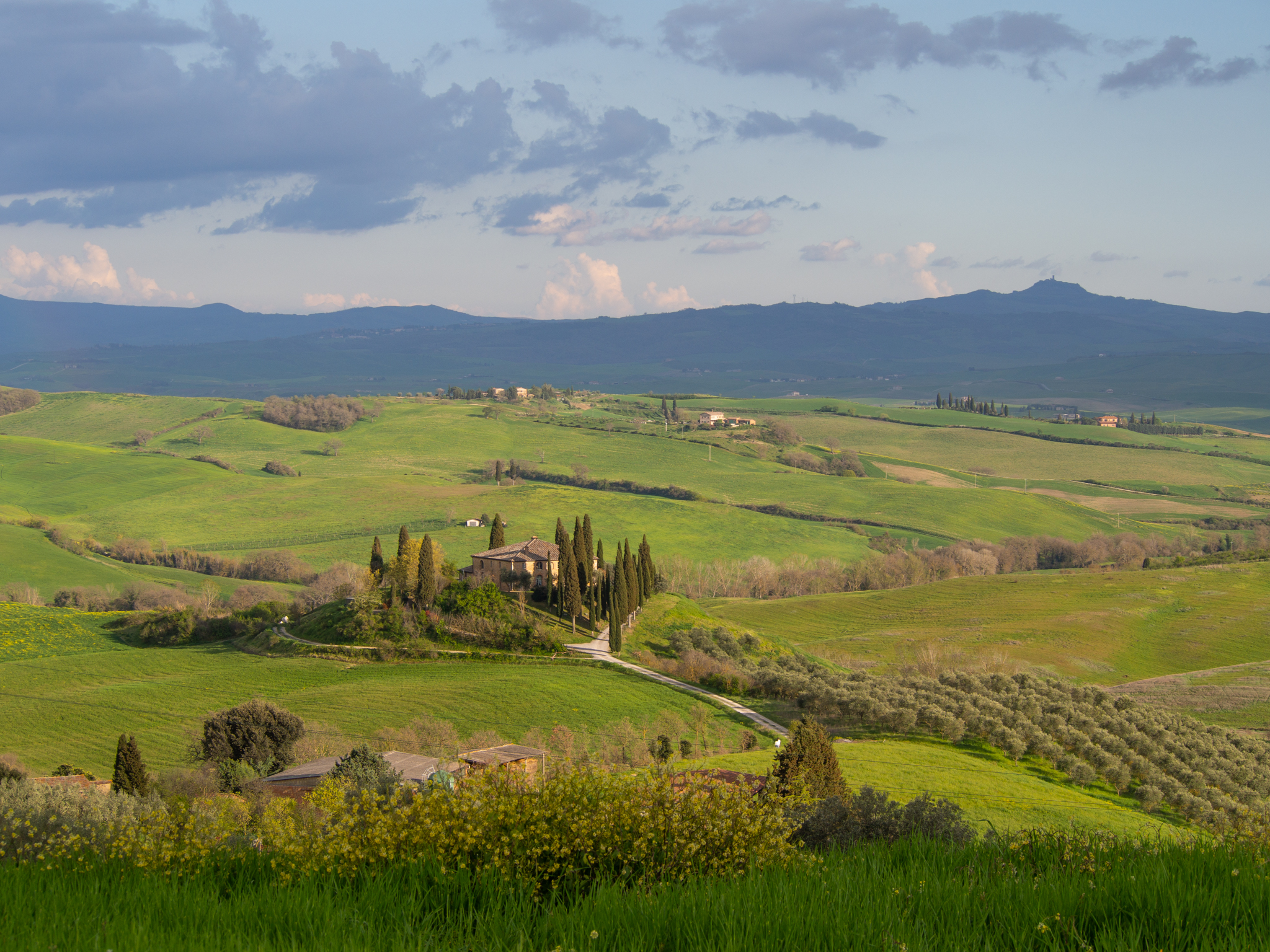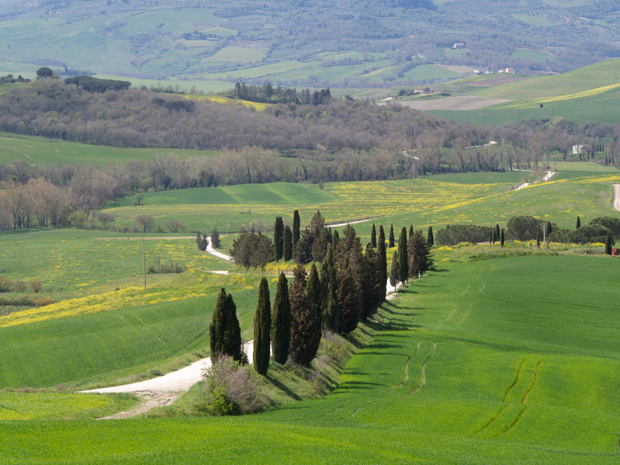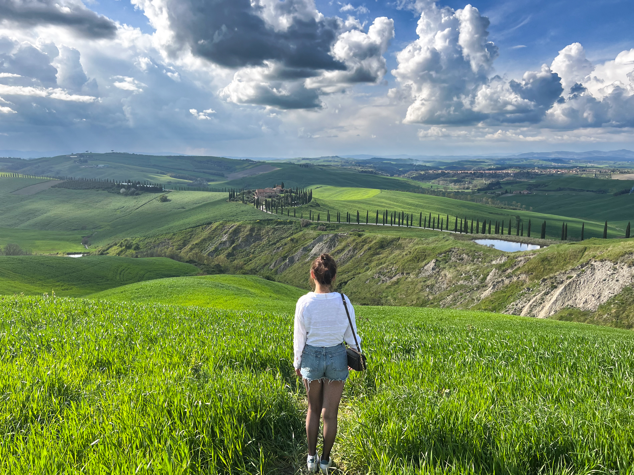 Au Sud de Sienne, on trouve les paysages les plus emblématiques de la Toscane. Ces collines couvertes d’herbe verte qui ondulent jusqu’à l’horizon, les lignées de cyprès qui rejoignent de belles fermes. On est dans le Val d’Orcia, cette région aux paysages romantiques qui se prête tellement à un road trip le long des routes de campagne tellement typiques.