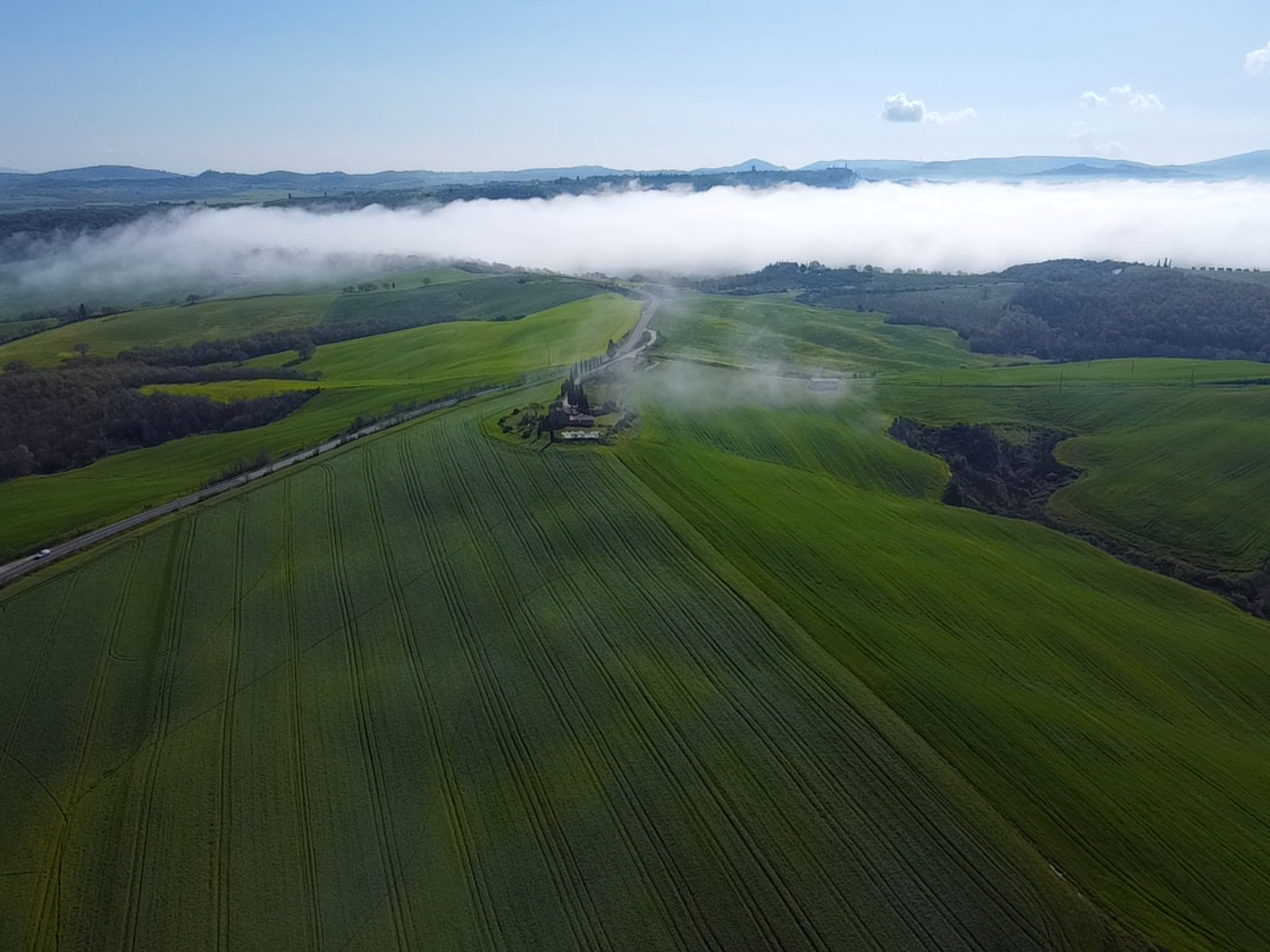 Alors que l’on attendait le lever du soleil avec impatience pour faire une sortie photo. On se retrouve au milieu d’une épaisse couche de brume. Probablement qu’avec la pluie qui tombe tous les jours, l’humidité est très importante et ce n’est pas le temps idéal pour sortir. On décide donc de rester dans la chambre puis de se reposer. Lorsque la brume se dissipe, elle laisse place à un splendide beau temps clair, une des plus belles journée de la semaine. Comme c’est un peu tard, je décide de prendre un café sur la terrasse de l’Agroturismo tout en faisant survoler les paysages du Val D’Orcia avec le drone, les vidéos et photos qu’il ramène sont magnifiques.