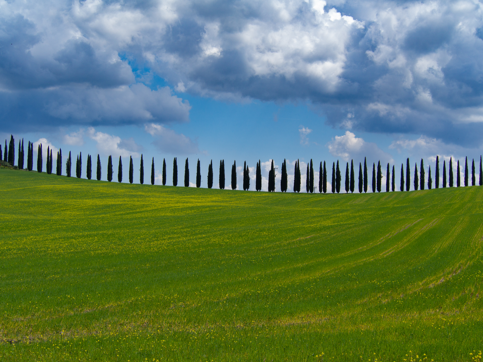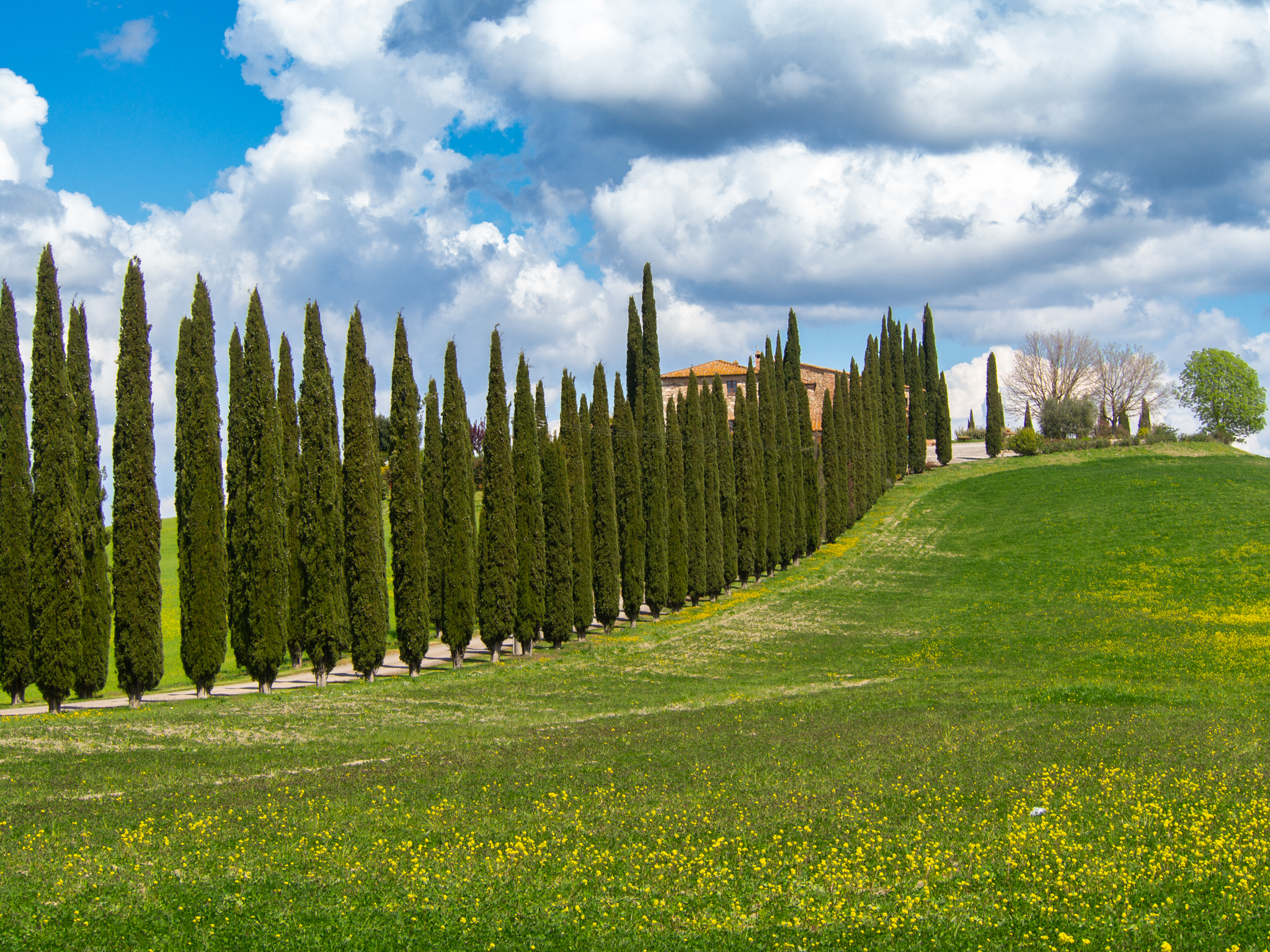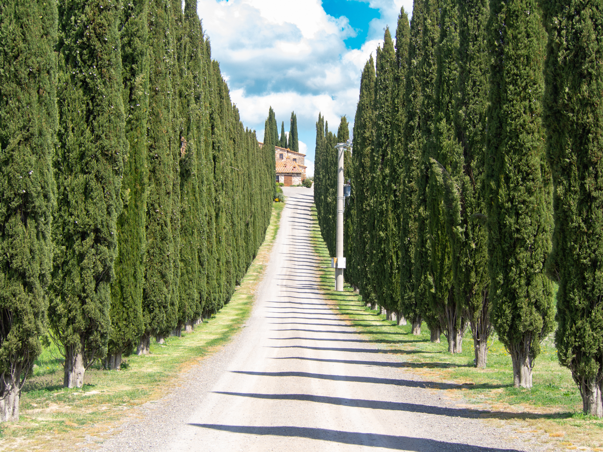 Comme un symbole de la région, des cyprès sont alignés le long des allées des fermes toscanes.