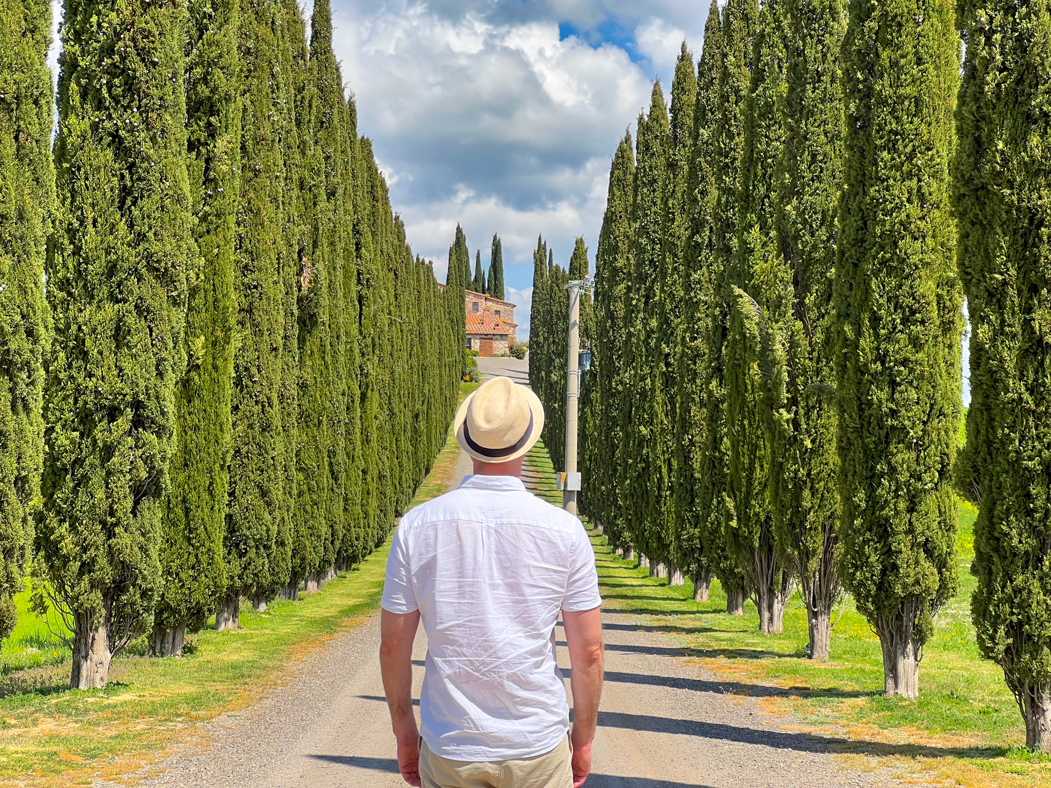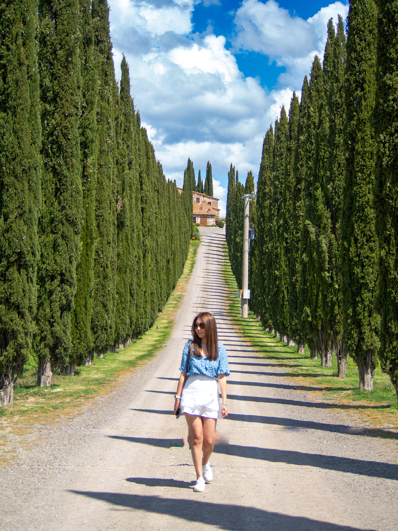 L’allée est superbement photogénique, c’est un des symboles de la campagne Toscane immanquable dans la région du Val d’Orcia.