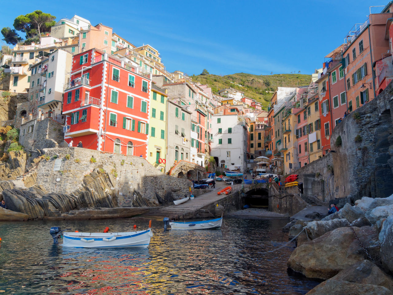 Riomaggiore est un des plus grands villages des Cinque Terre, sa jetée encadrée de maisons de toutes les couleurs est vraiment magnifique ; c'est depuis Riomaggiore que commençait la Via del Amore, une promenade d'un kilomètre qui permettait de rejoindre Manarola en surplombant la mer mais fermée depuis un glissement de terrain.