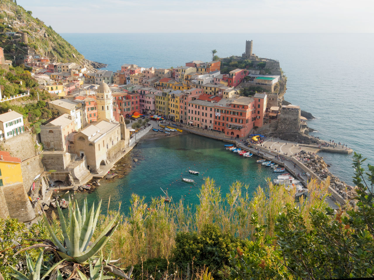 Sans aucun doute le plus photogénique de tous les villages du parc naturel des Cinque Terre, Vernazza a vraiment tout du cliché du petit village génois accroché à la falaise.
