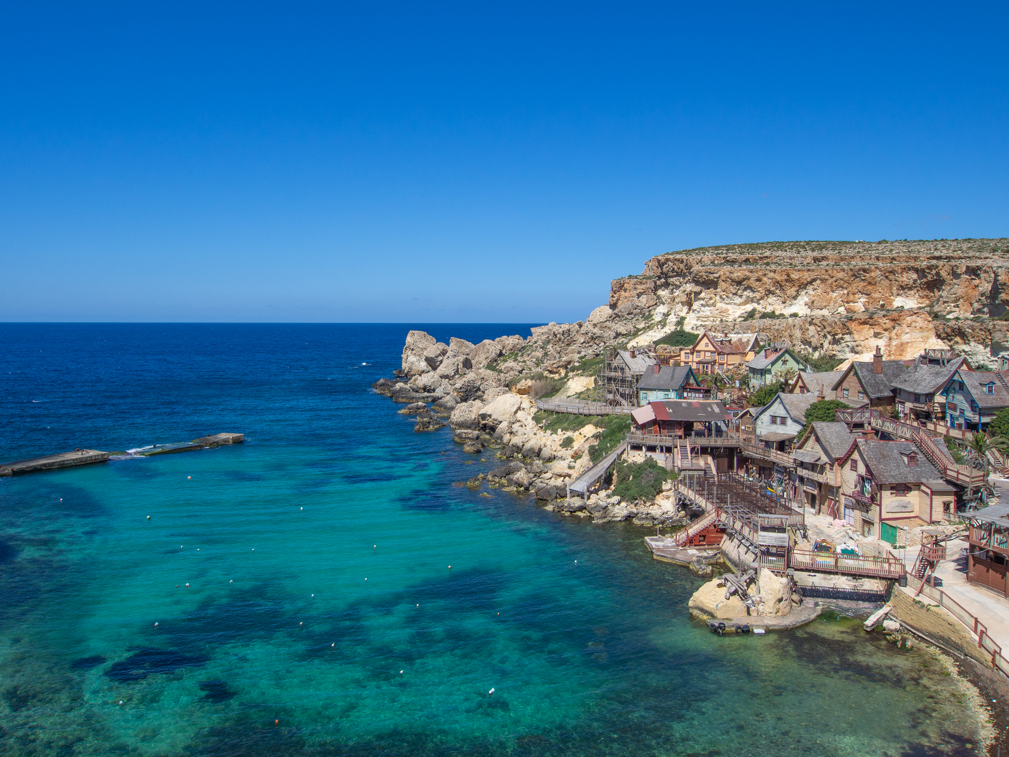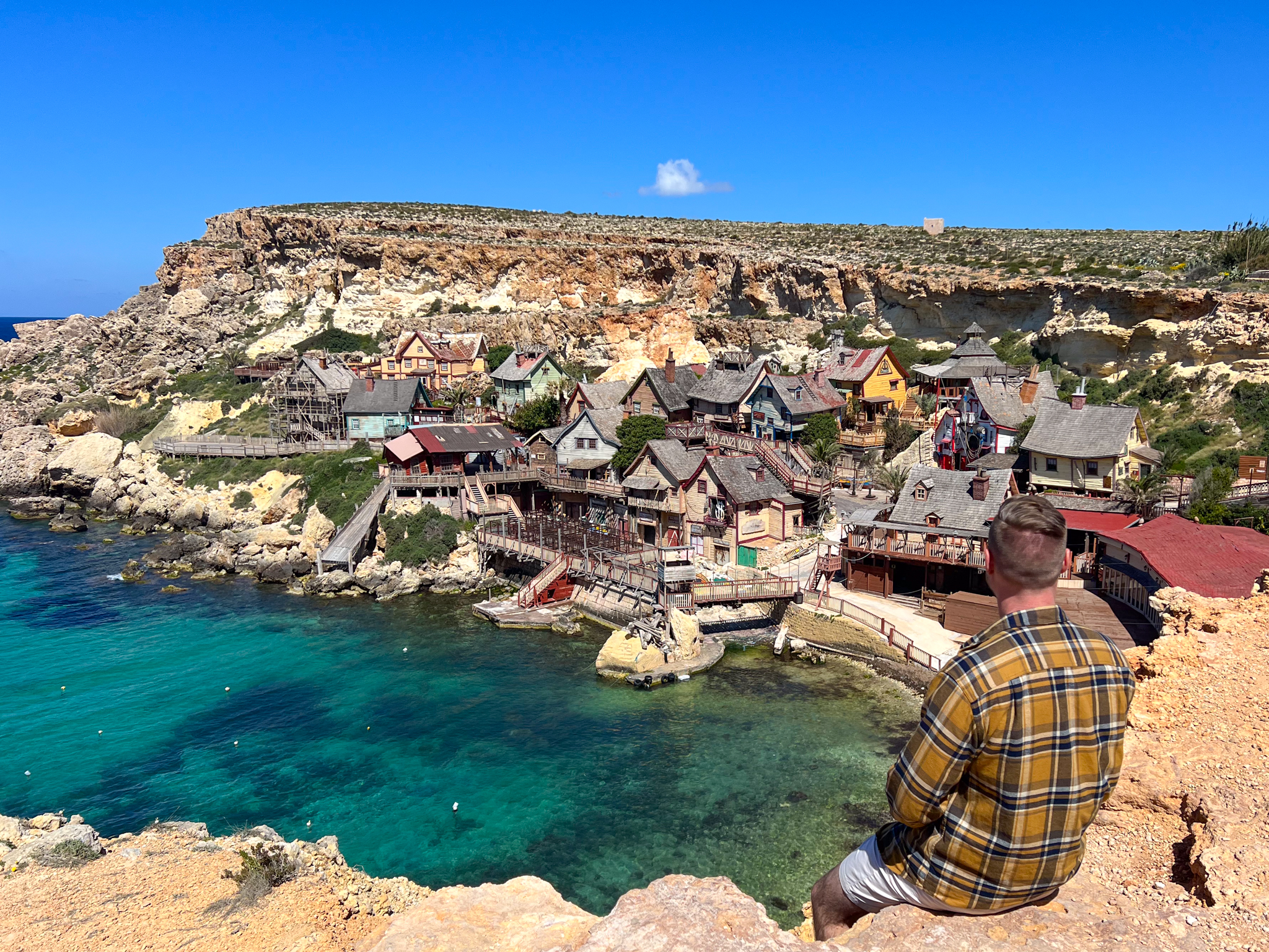 On passe par une partie plus sauvage et agricole de l’île après être sorti de la zone urbaine de La Valette. On arrive au premier arrêt de la journée, le Popeye village. C’est en fait le lieu de tournage d’une comédie musicale anglaise qui a été conservé et aujourd’hui attire beaucoup les touristes pour son emplacement au bord d’une crique à l’eau bleue.