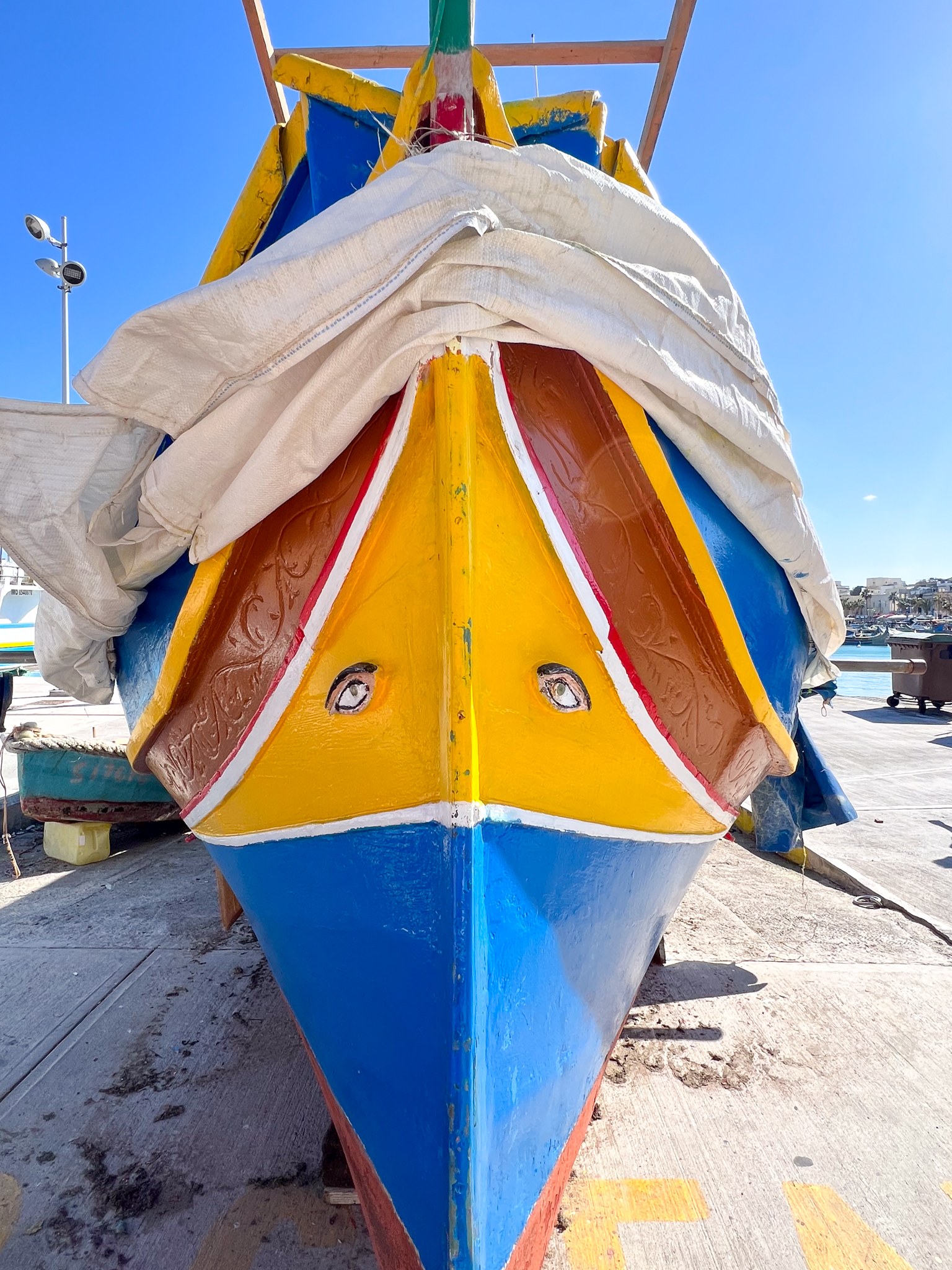Le petit détail de ces bateaux, ce sont les yeux qui sont peints à l’avant. Ces yeux rappellent les bateaux antiques, phéniciens, qui avaient conquis l’île. Cet oeil servirait à protéger le bateau des aléas de la mer.
