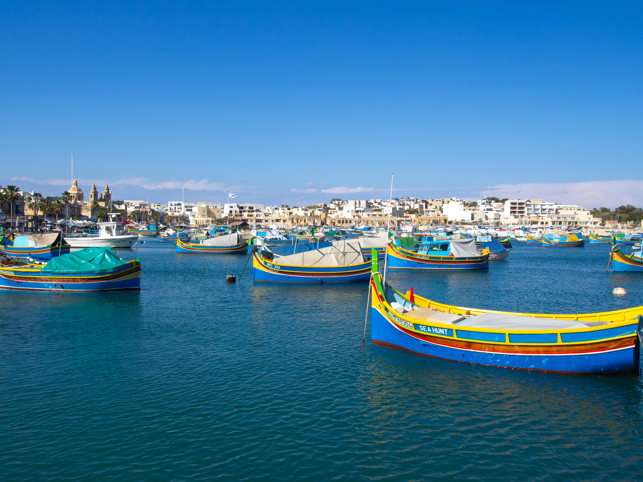 Les Luzzu de pêcheurs du village sont encore peints avec des couleurs traditionnelles, du bleu, du jaune et du rouge, un des symboles de Malte.