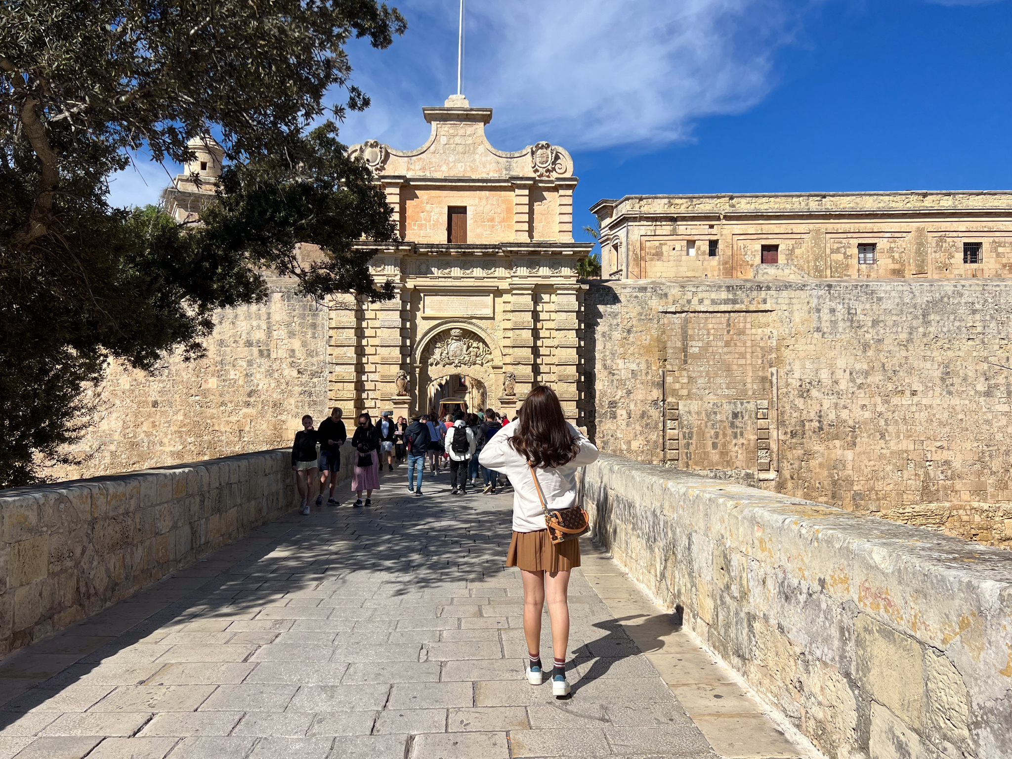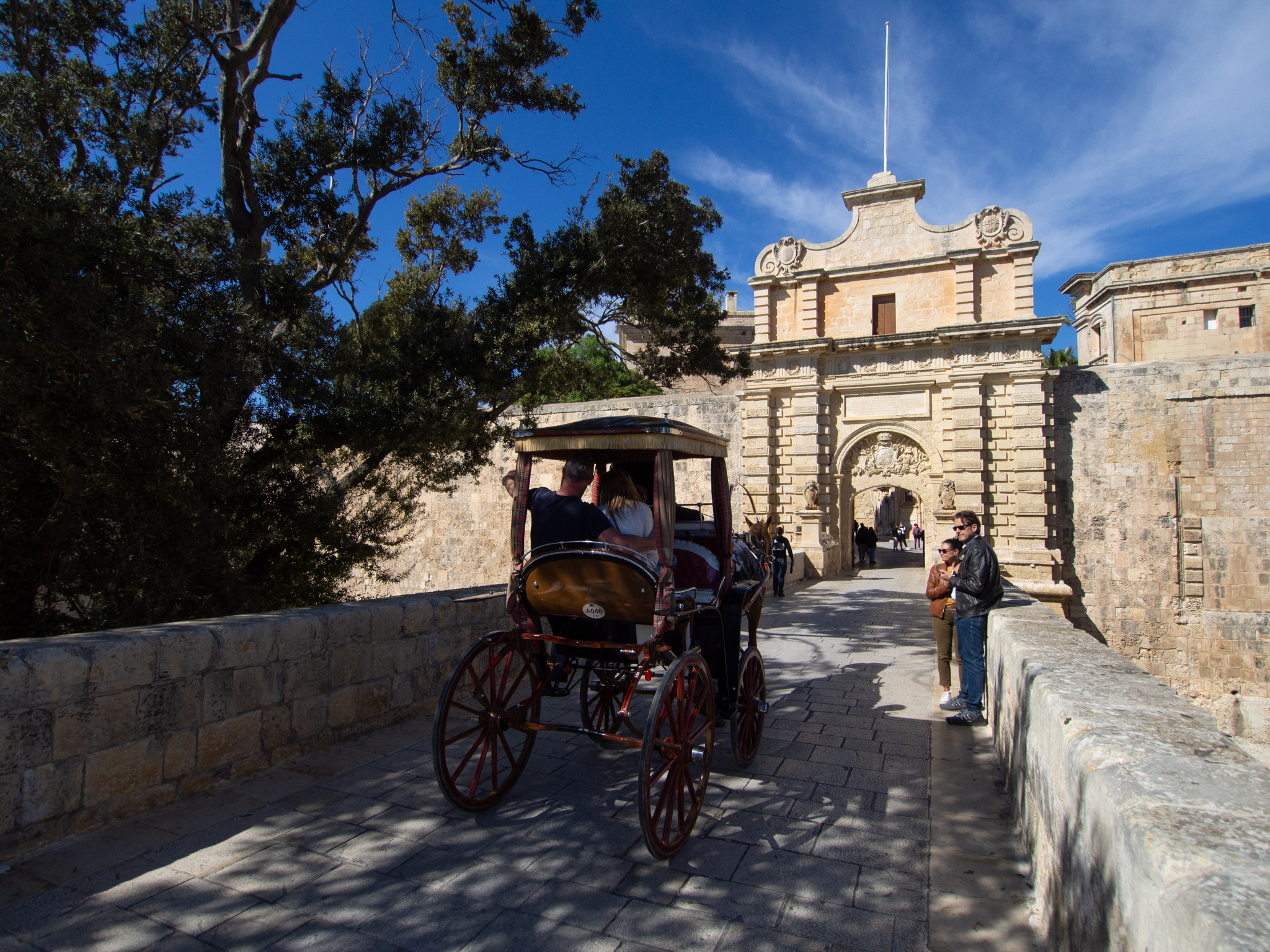 On entre par la grandiose porte de Mdina, qui date du XVIIIe siècle pour faire un saut dans le passé.