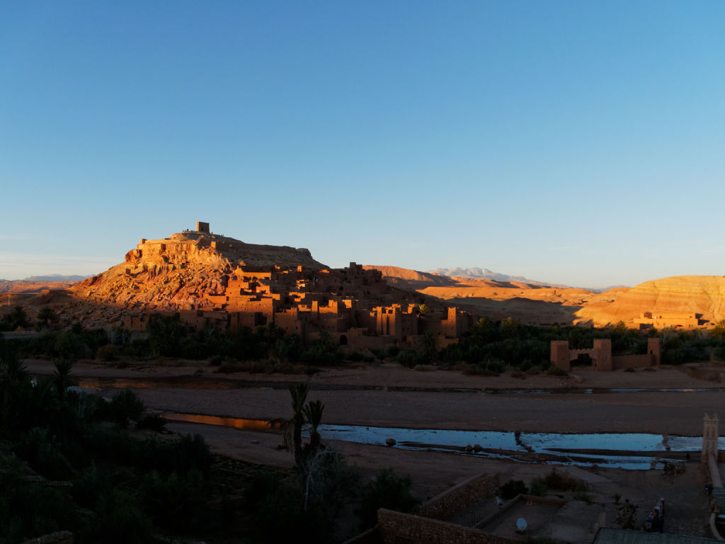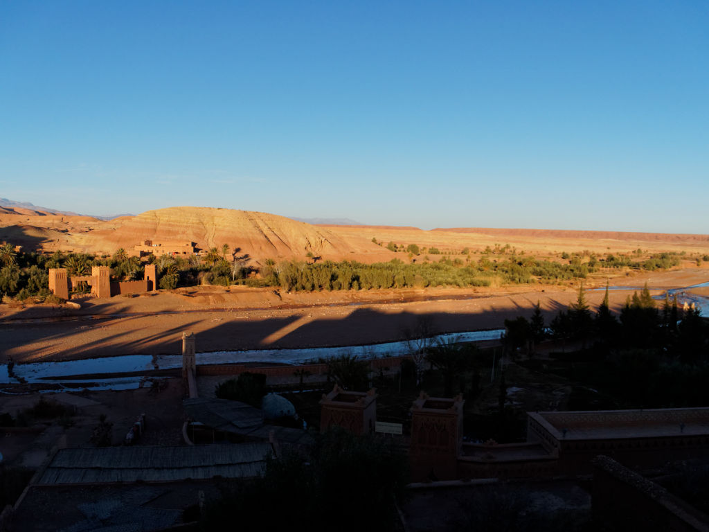 Puisque j’ai une chambre face à la vue, je règle mon réveil une demi heure avant le lever du soleil afin de capter les premiers rayons sur le ksar.