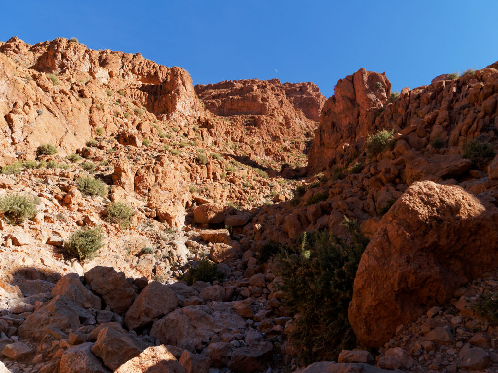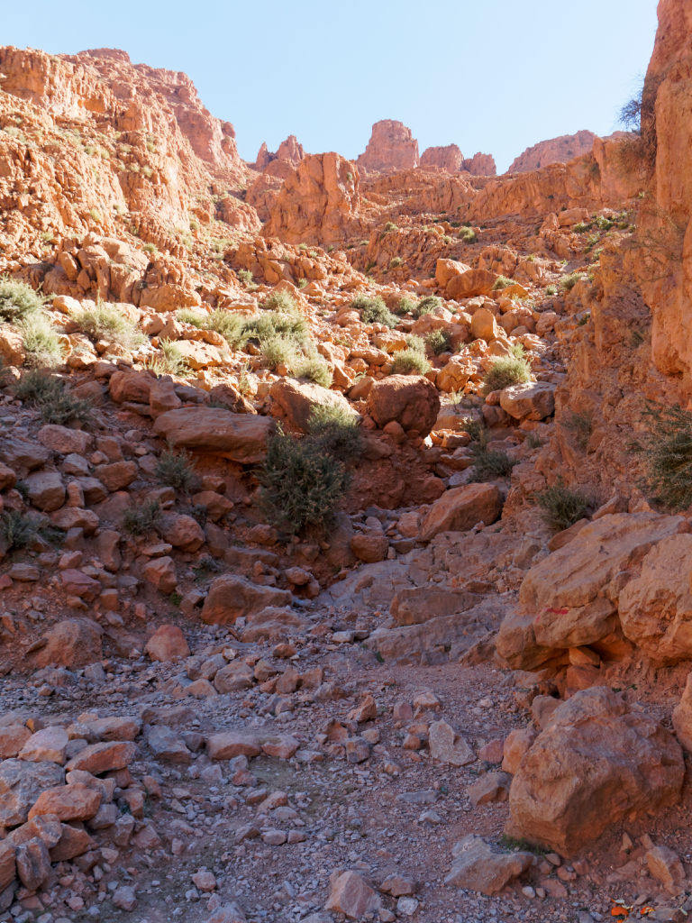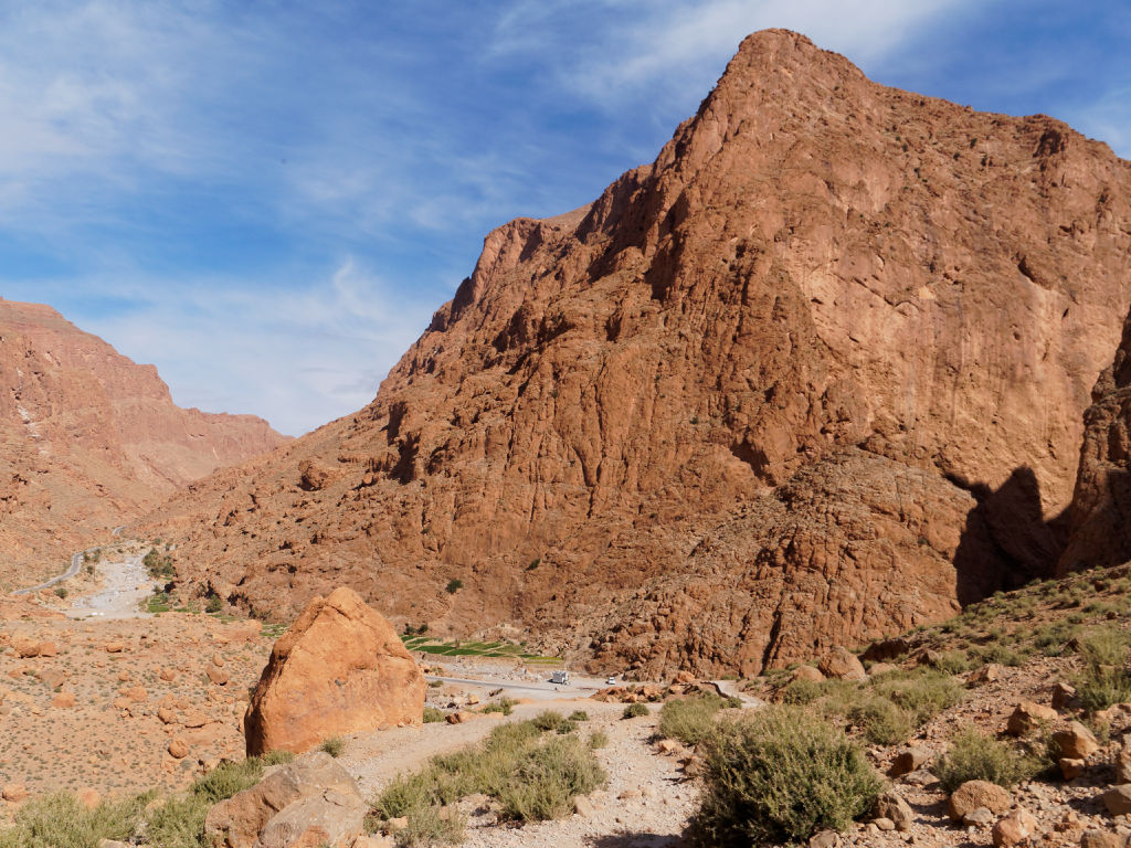 J’ai emporté avec moi une vieille édition du Lonely Planet Maroc, et dedans il y a une suggestion de balade autour de la gorge. Je me gare après la gorge principale en face de la zone où se trouvent les grimpeurs.