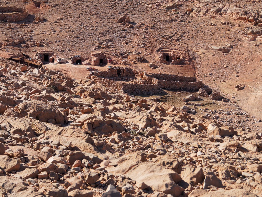 Puis on découvre des habitations de nomades, qui vivent ici avec leur chèvres. Je rencontre une famille, que je ne dérange pas car le père est en pleine prière.