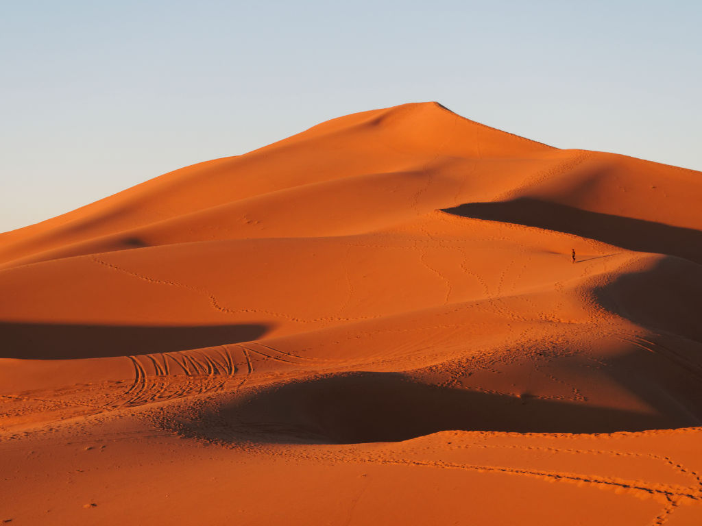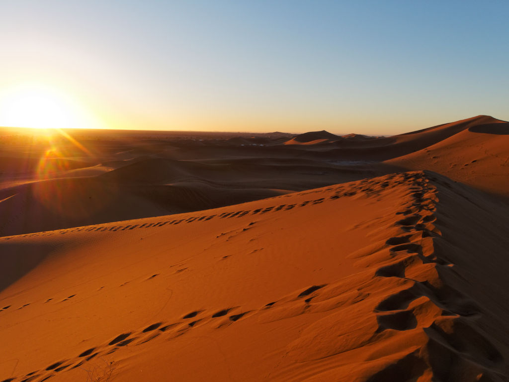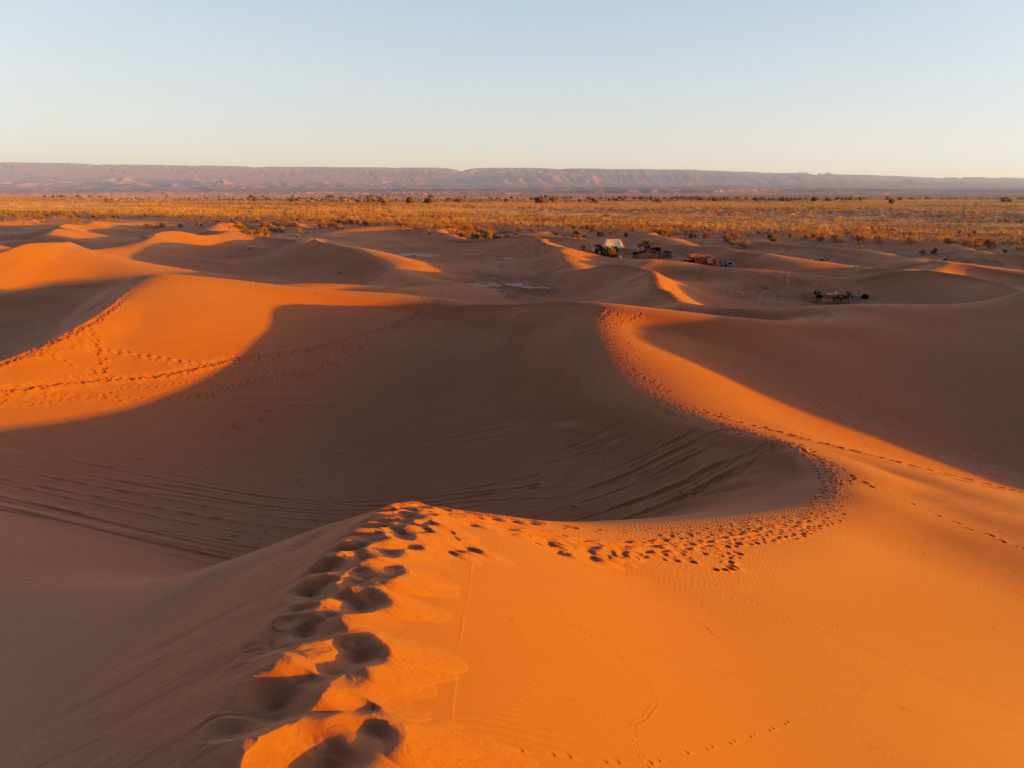 Rapidement les teintes ocres du désert laissent la place à l'orange, plus clair.