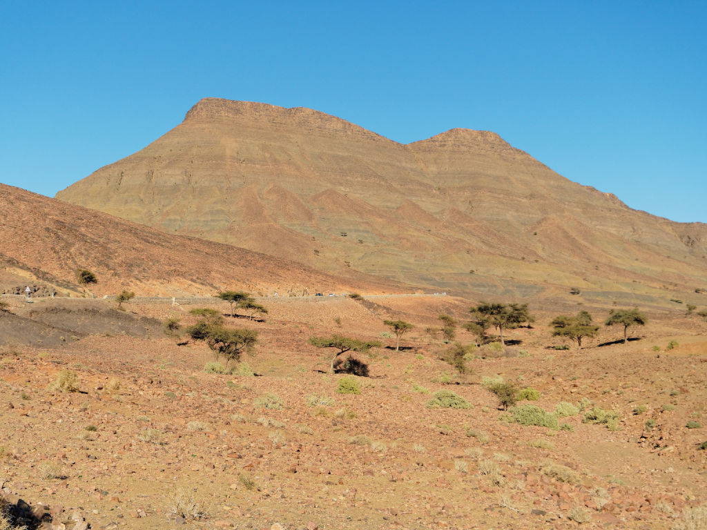 Puis on repasse devant les points de vue de l'aller. La lumière est plus basse à cette heure-ci et on refait quelques arrêts photos, notamment avec cette montagne verdatre après Agdz.